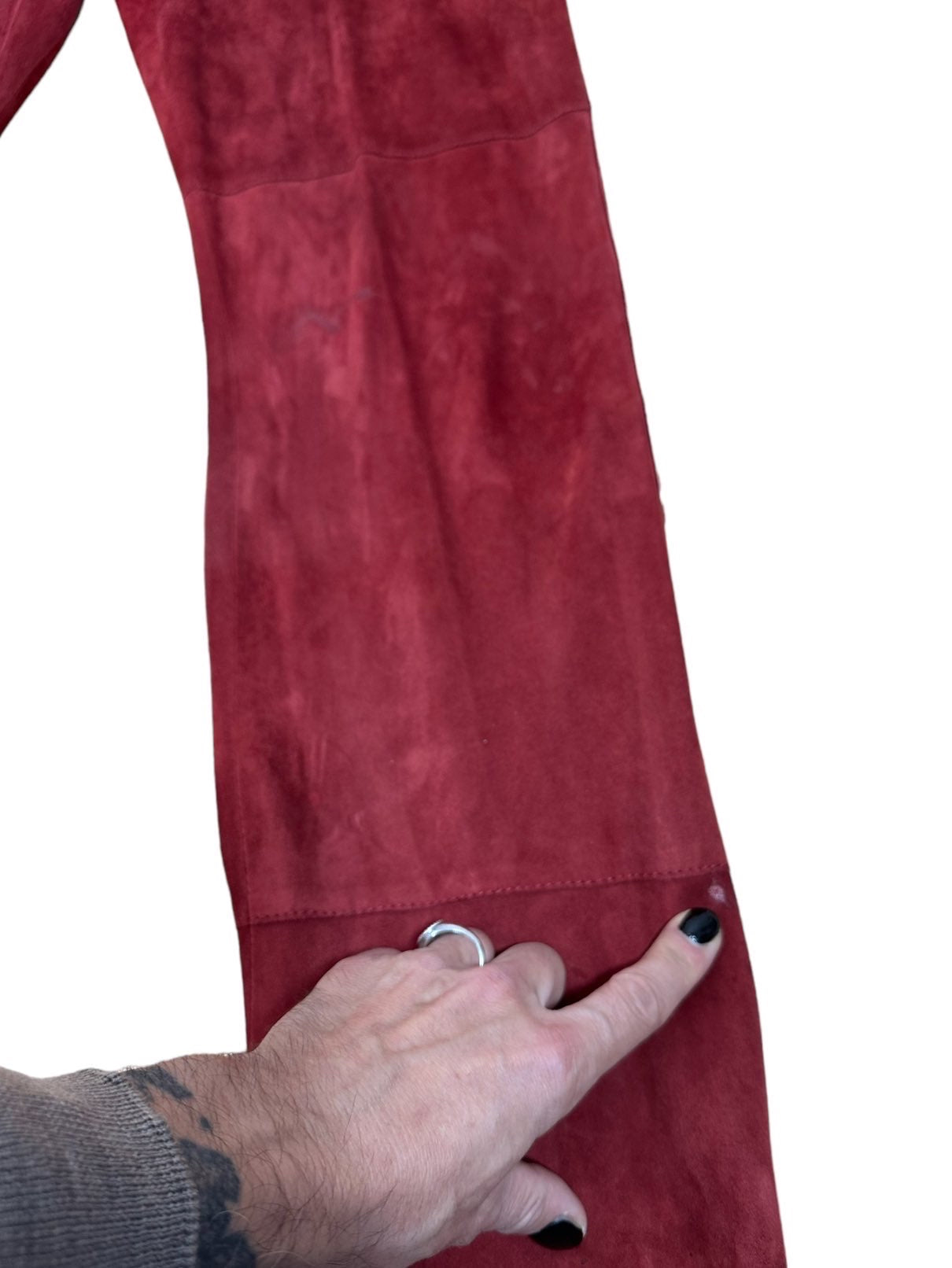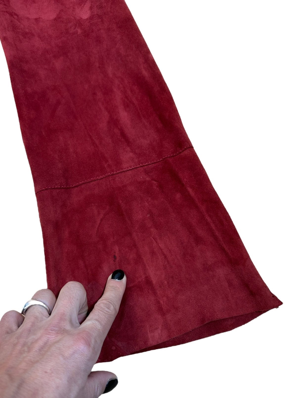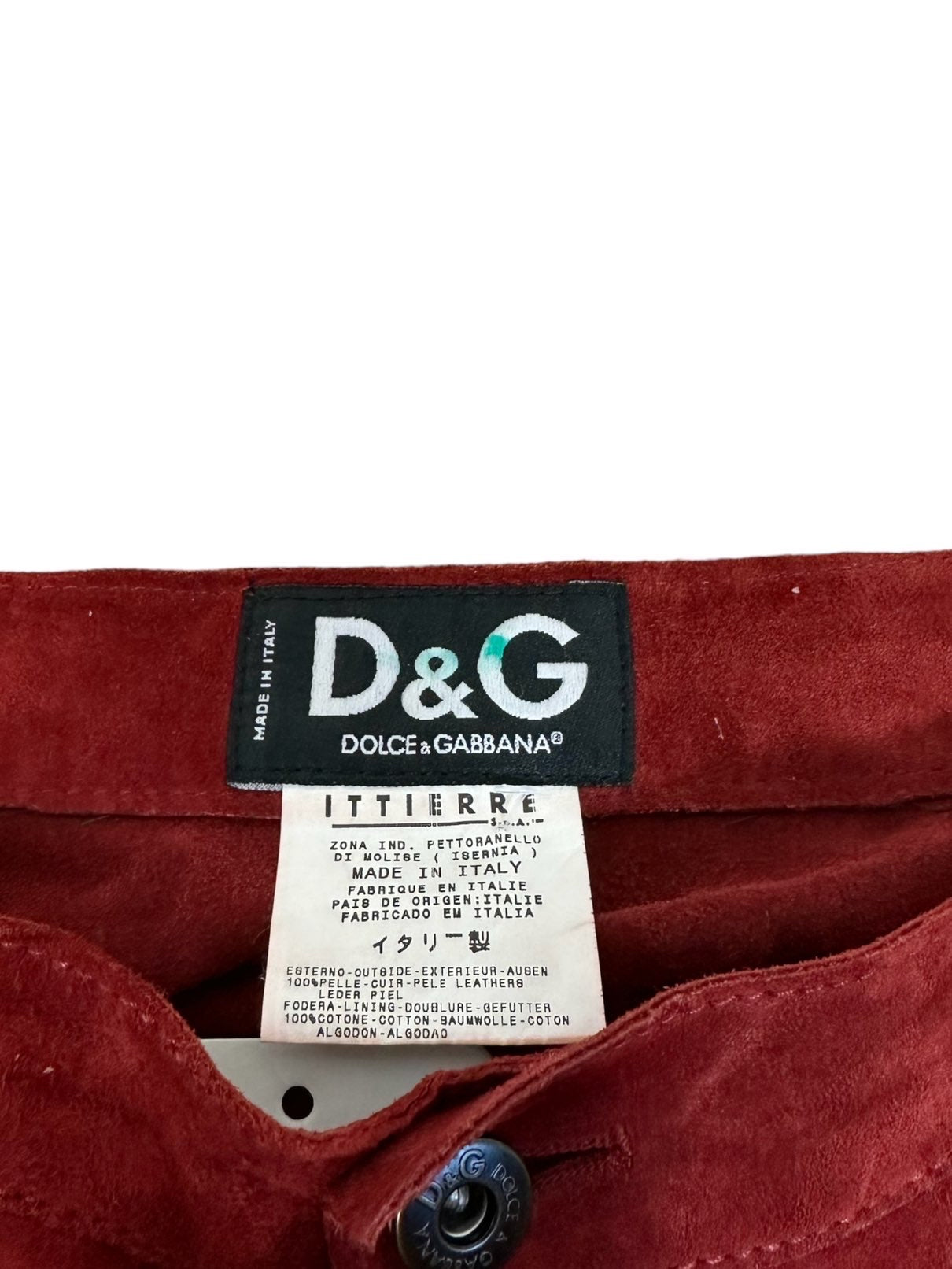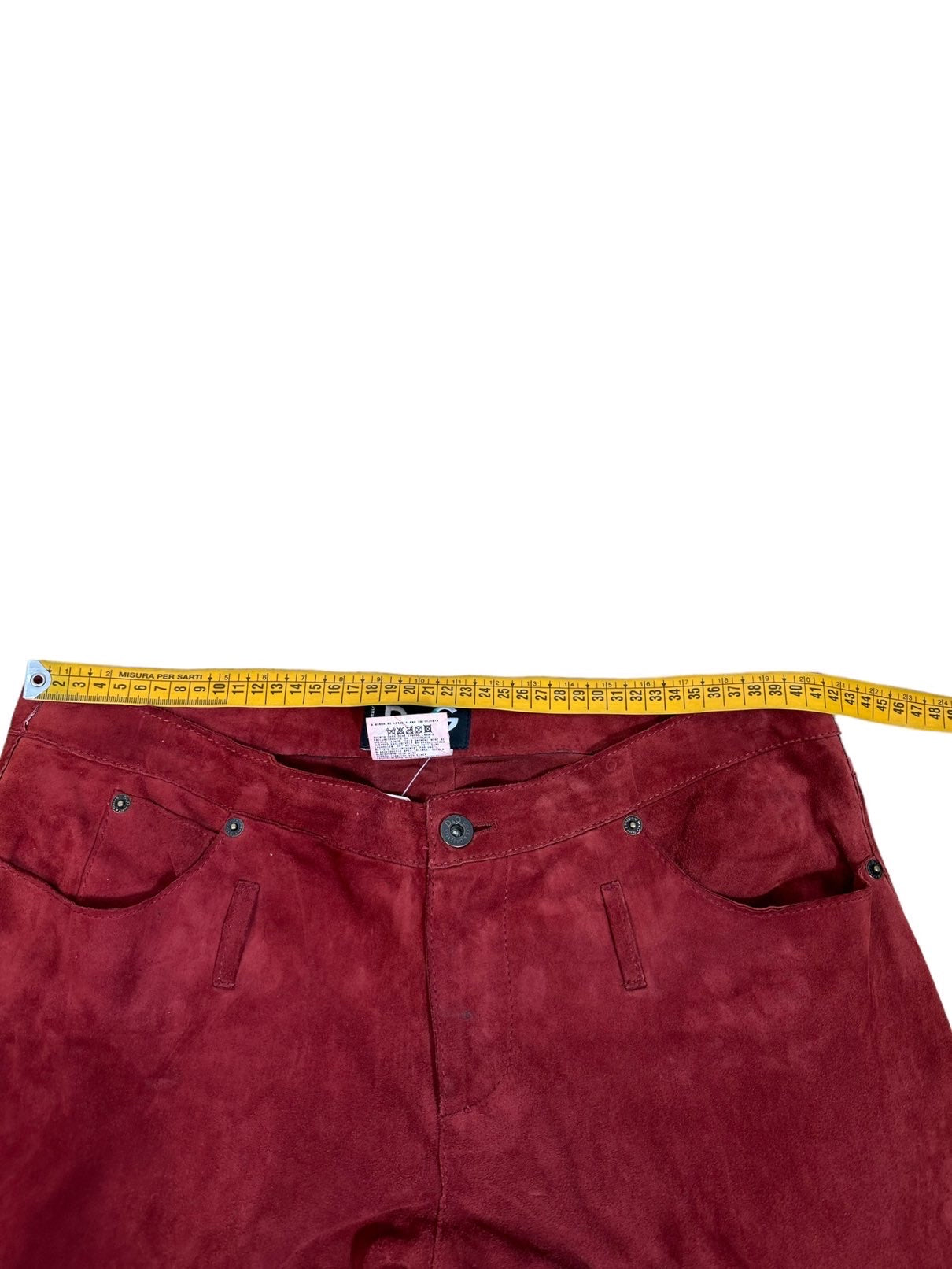 D&G pantaloni in camoscio bordeaux anni 2000s a vita bassa con tasche laterali. Presentano dei lievi segni di usura poco visibili. Tg. L