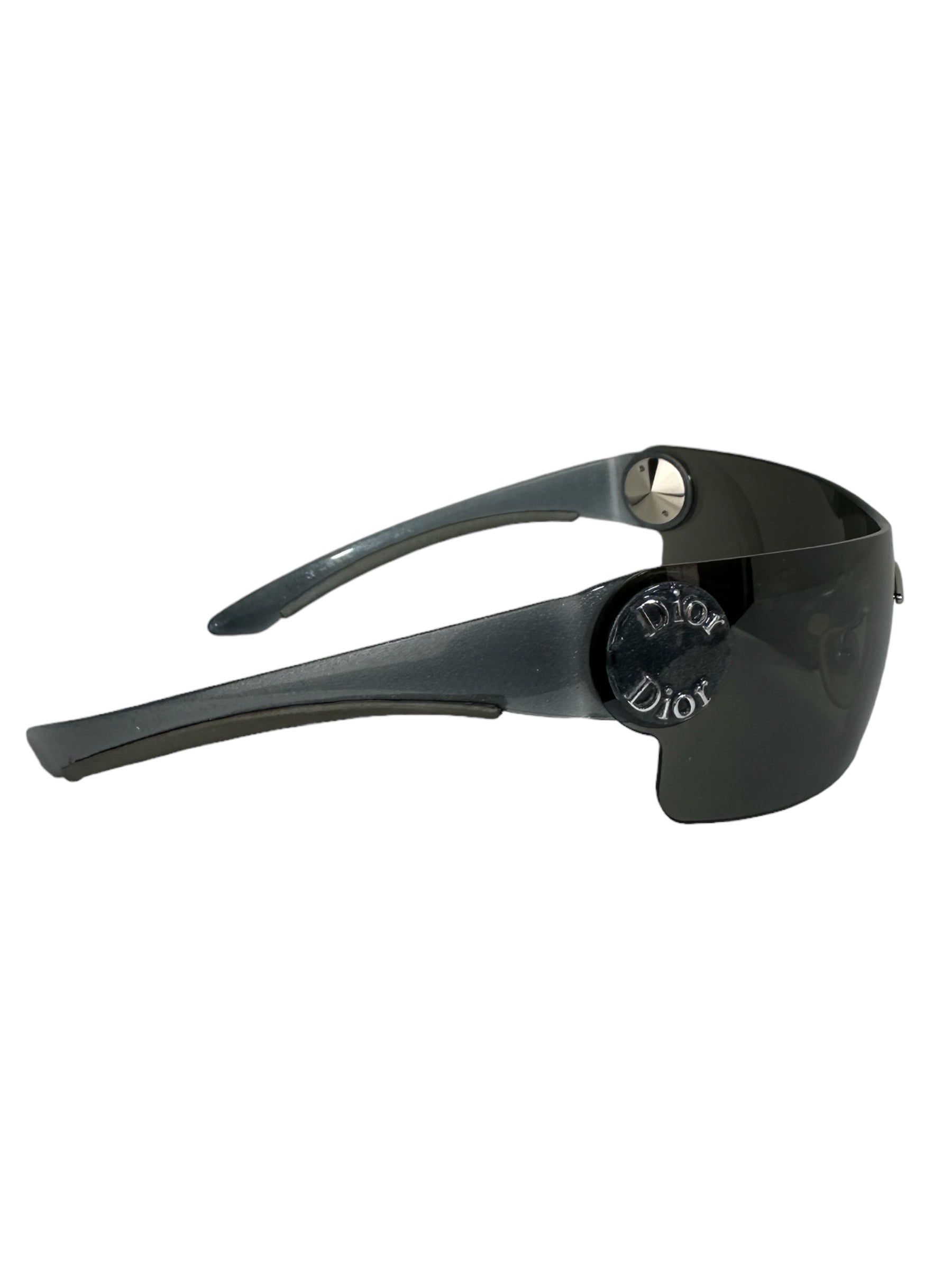 Dior occhiali vintage anni 2000s con lente seni a specchio e bacchette roteanti. Loghi frontali su inserto circolare. Non vengono spediti con custodia originale, potrebbero presentare dei micro segni sulle lenti.