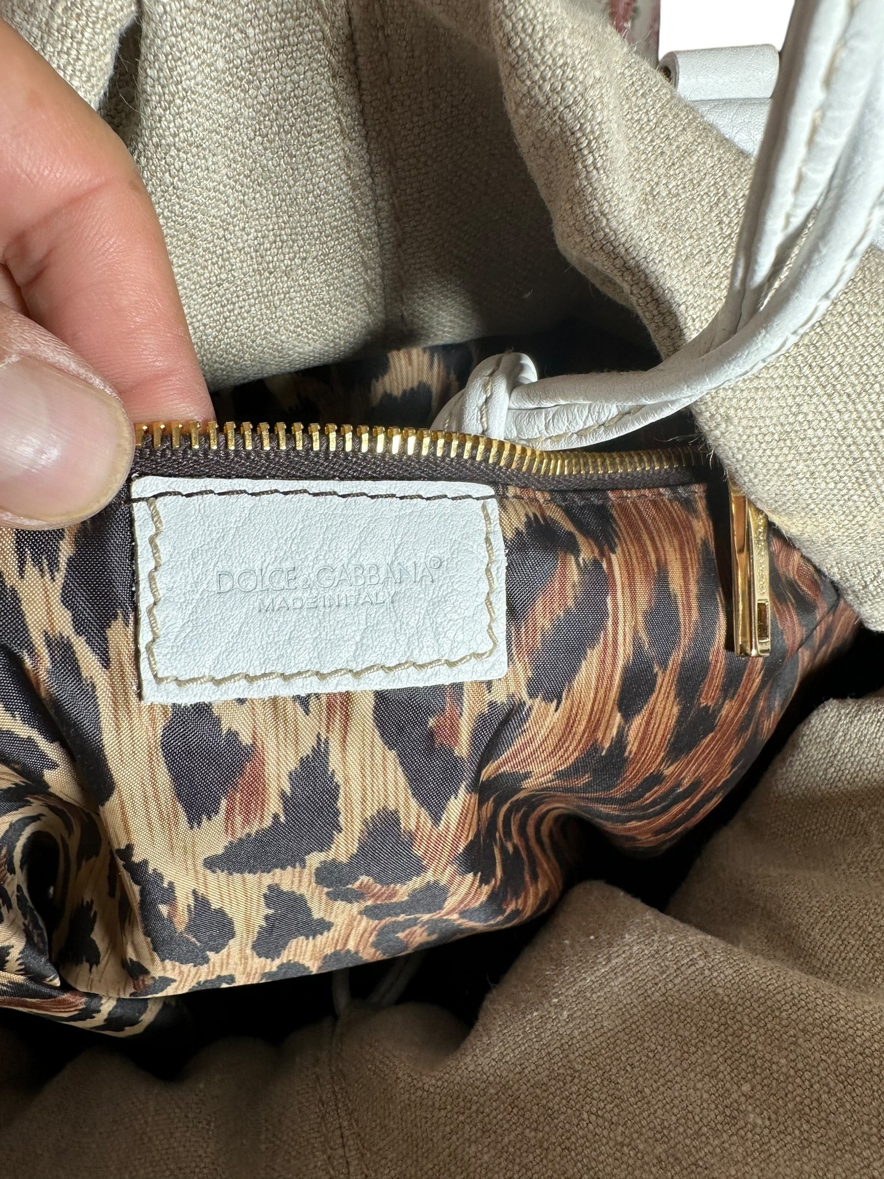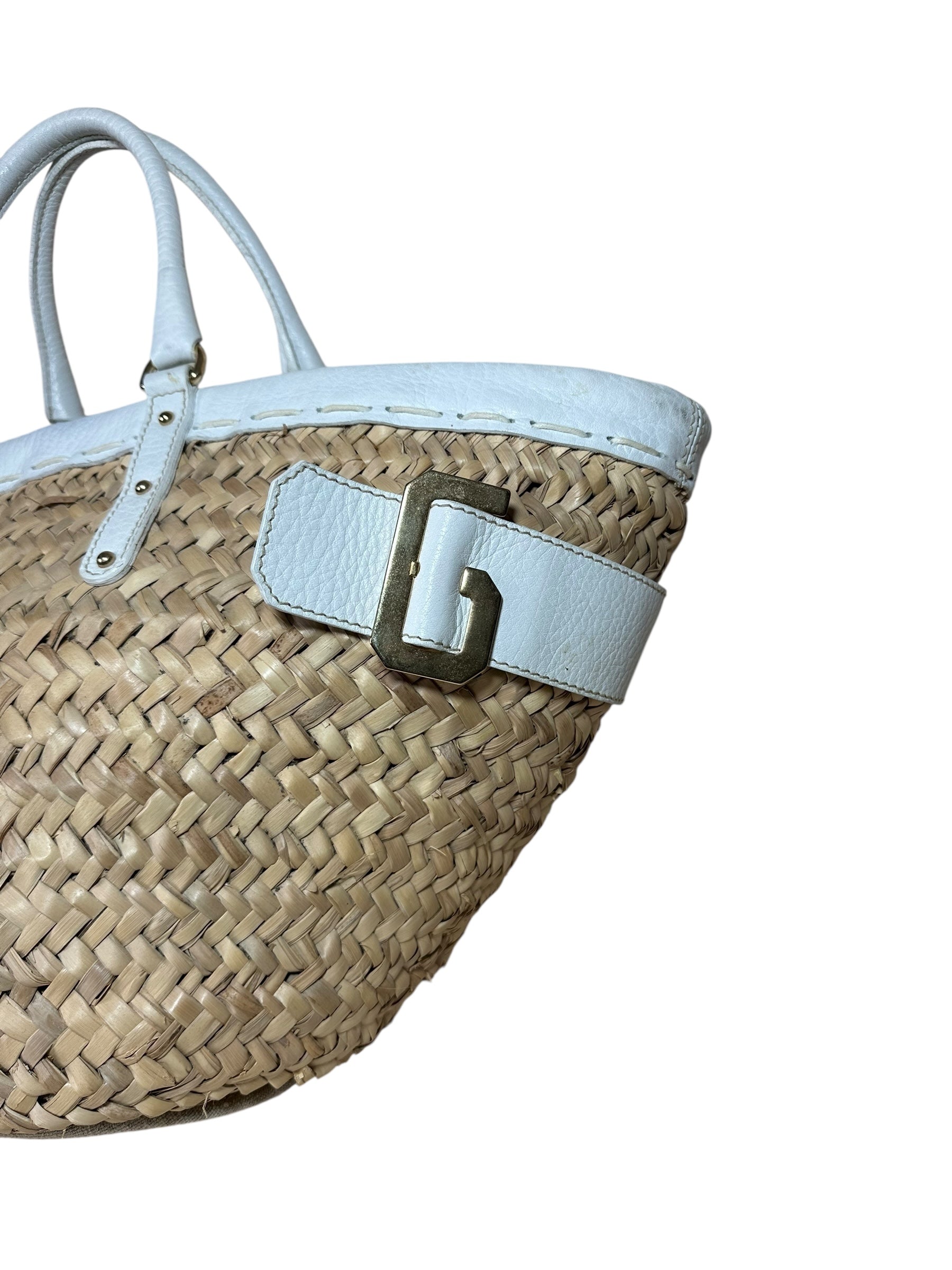 Borsa in raffia Dolce & Gabbana con inserti in pelle bianca