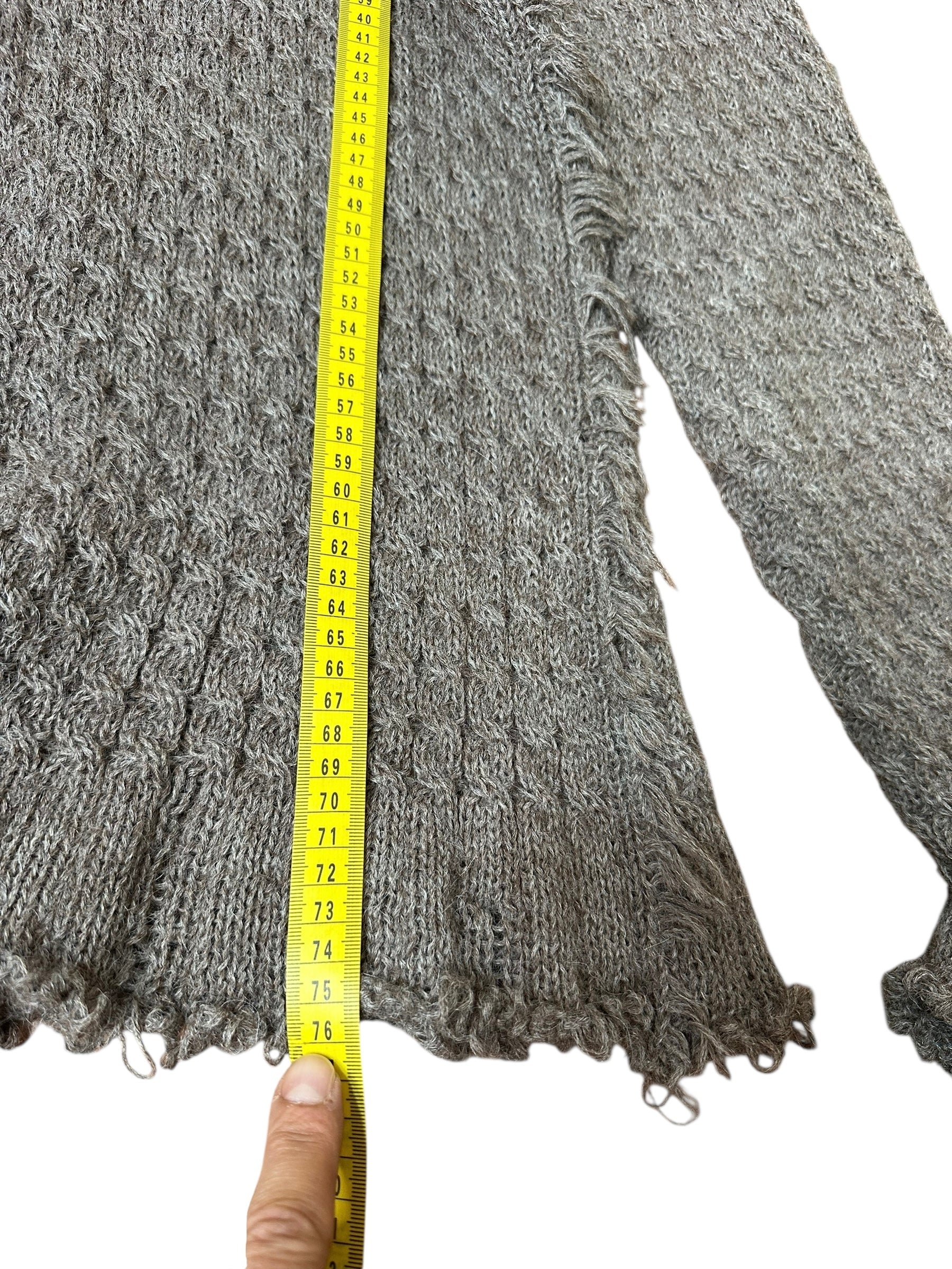 Presenta un design particolare con profili sfrangiati effetto taglio a vivo su scollo, fondo e maniche, dettaglio volutamente grezzo che dona al capo un aspetto vissuto e artigianale, tipico delle collezioni del brand dei primi anni 2000.