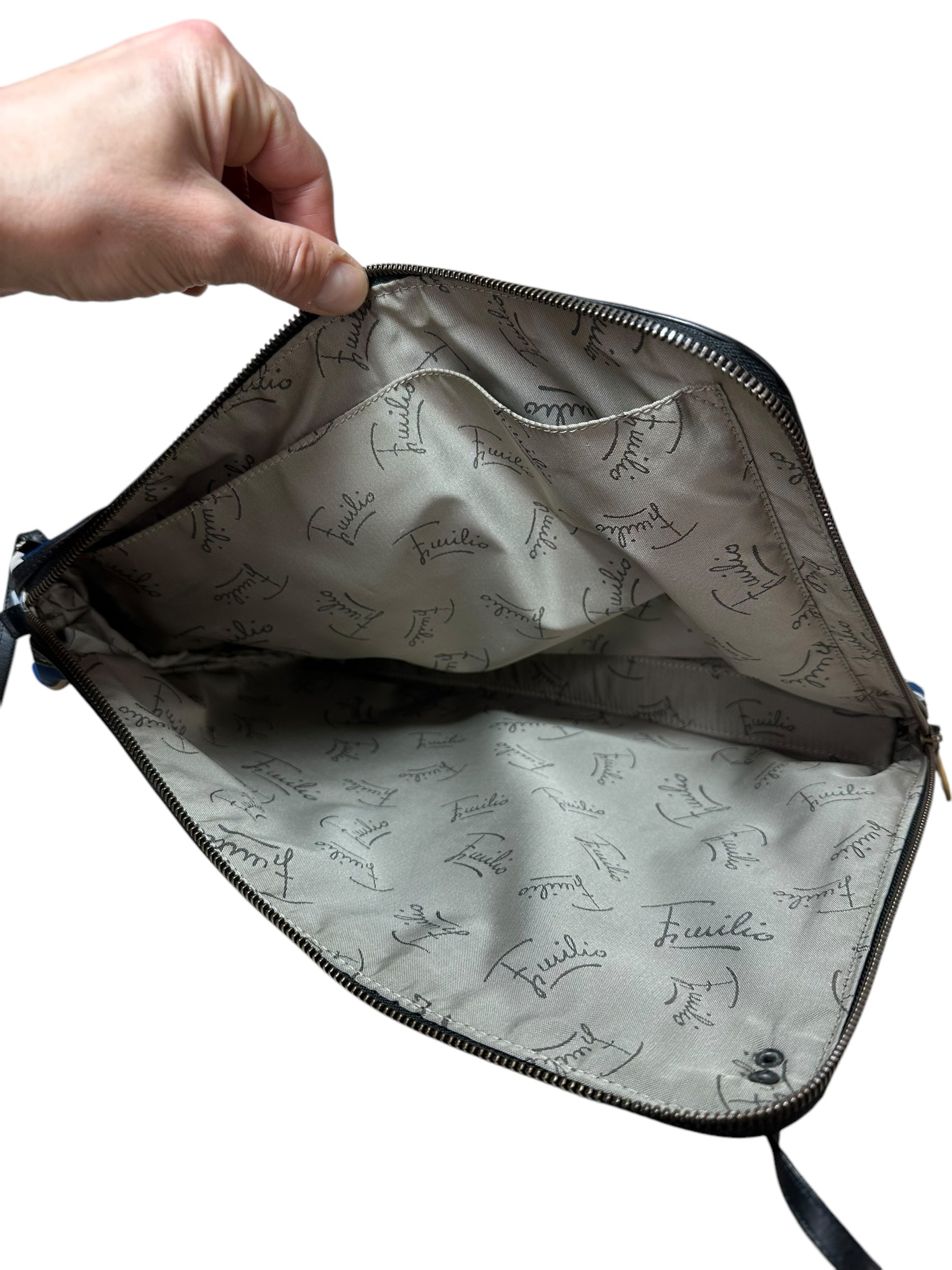 Questa pochette porta computer Emilio Pucci vintage è un accessorio elegante e distintivo, perfetto per chi desidera unire praticità e stile. Caratterizzata dall’inconfondibile stampa astratta e geometrica tipica della maison, è un pezzo dal fascino senza tempo, ideale per aggiungere un tocco di lusso a qualsiasi look.
