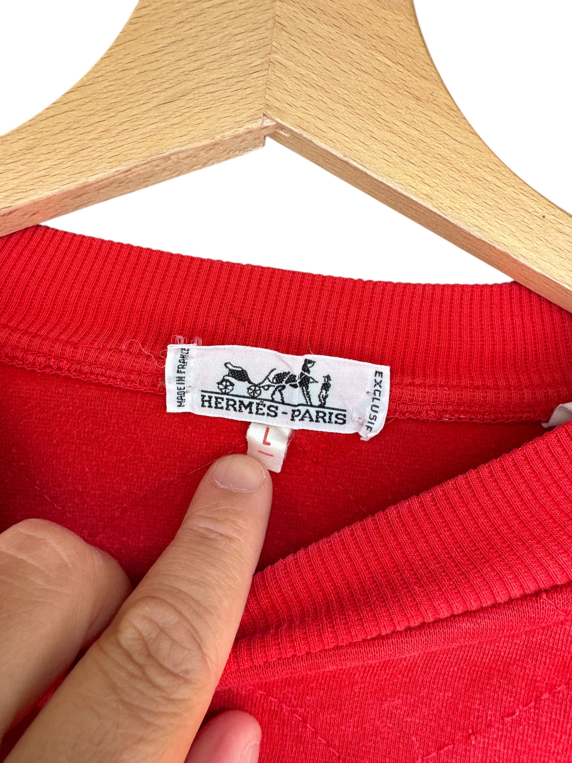 Felpa Hermès Paris vintage rossa trapuntata – Made in France – Taglia L