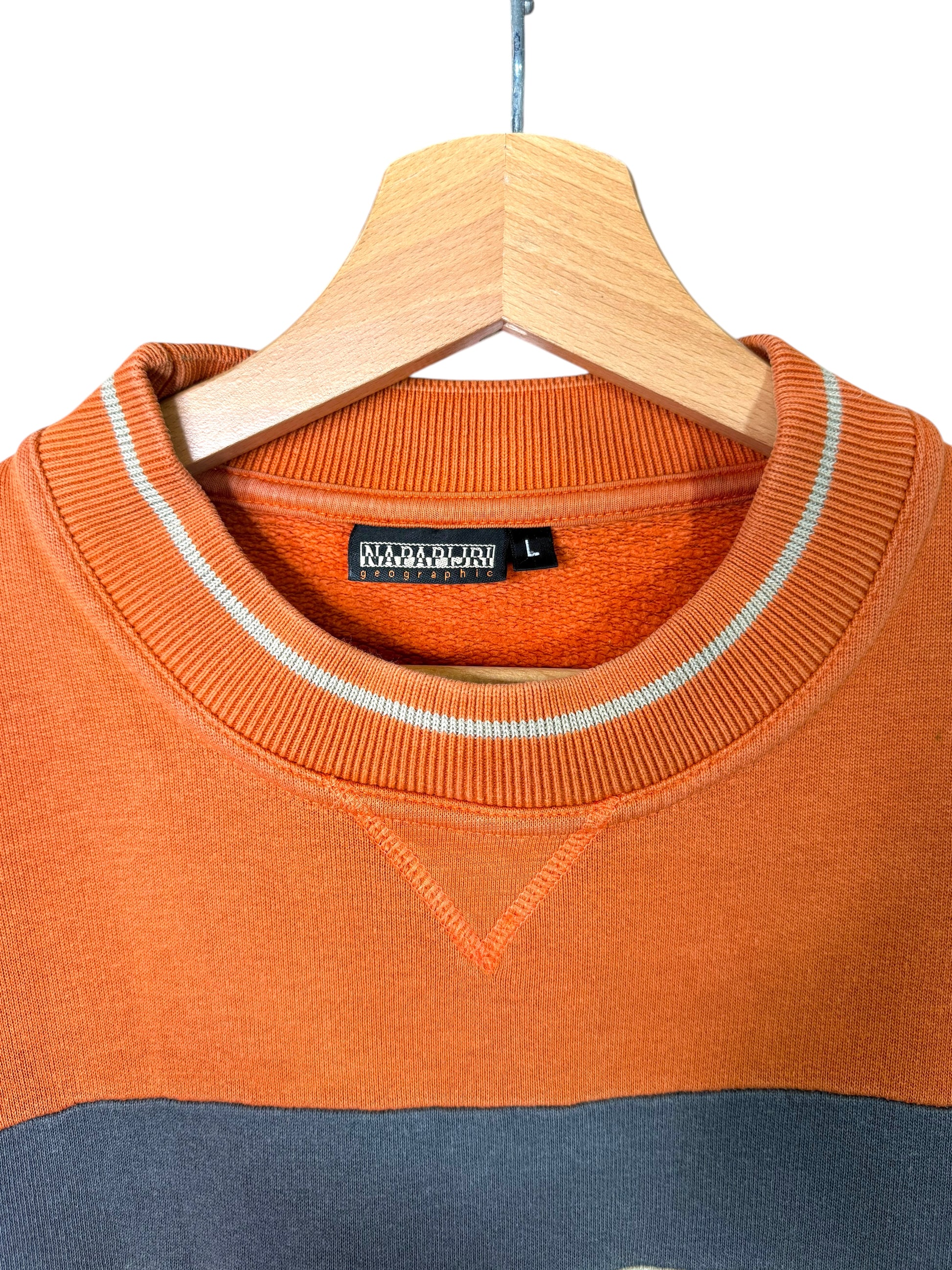 Felpa vintage Napapijri Geographic arancione/grigia con logo frontale Taglia L