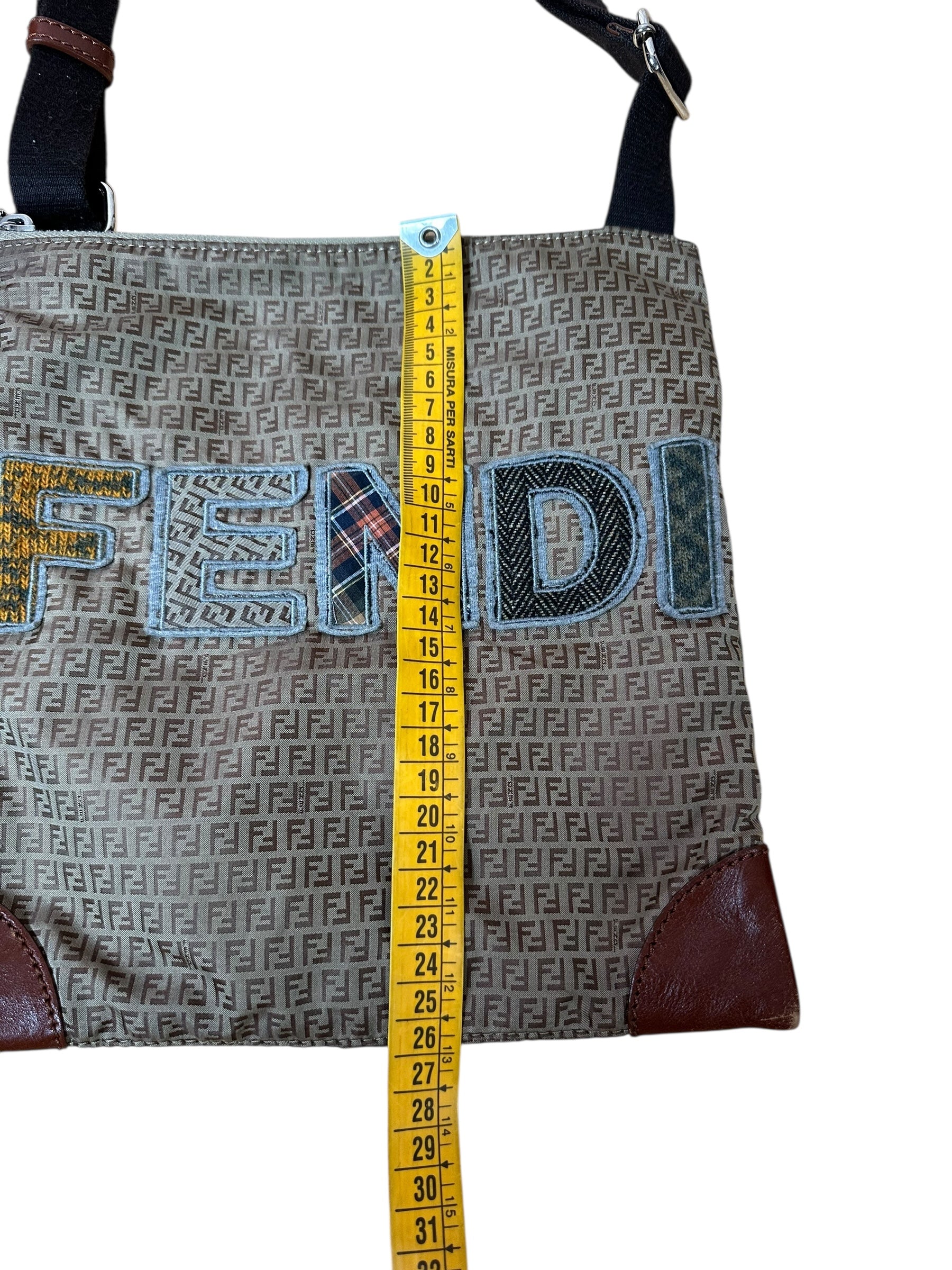 Fendi – Borsa a tracolla vintage in tela Zucchino con logo patchwork