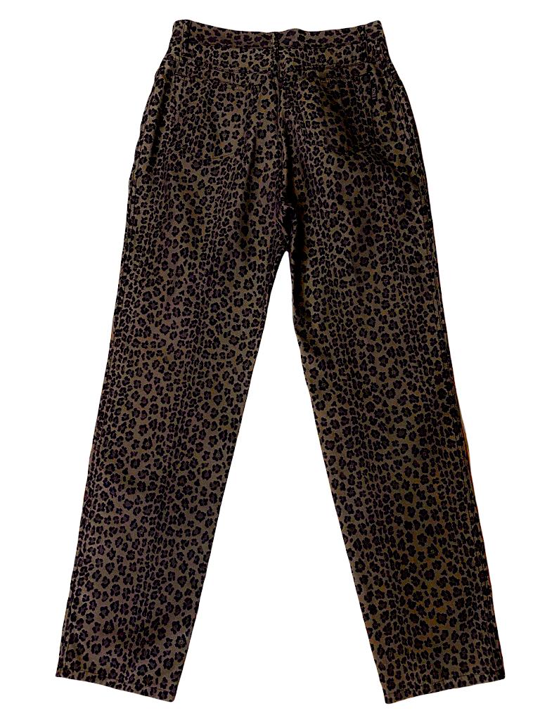 Pantaloni vintage a vita alta in tela stampa animalier beige scuro e marrone. Tg. 46