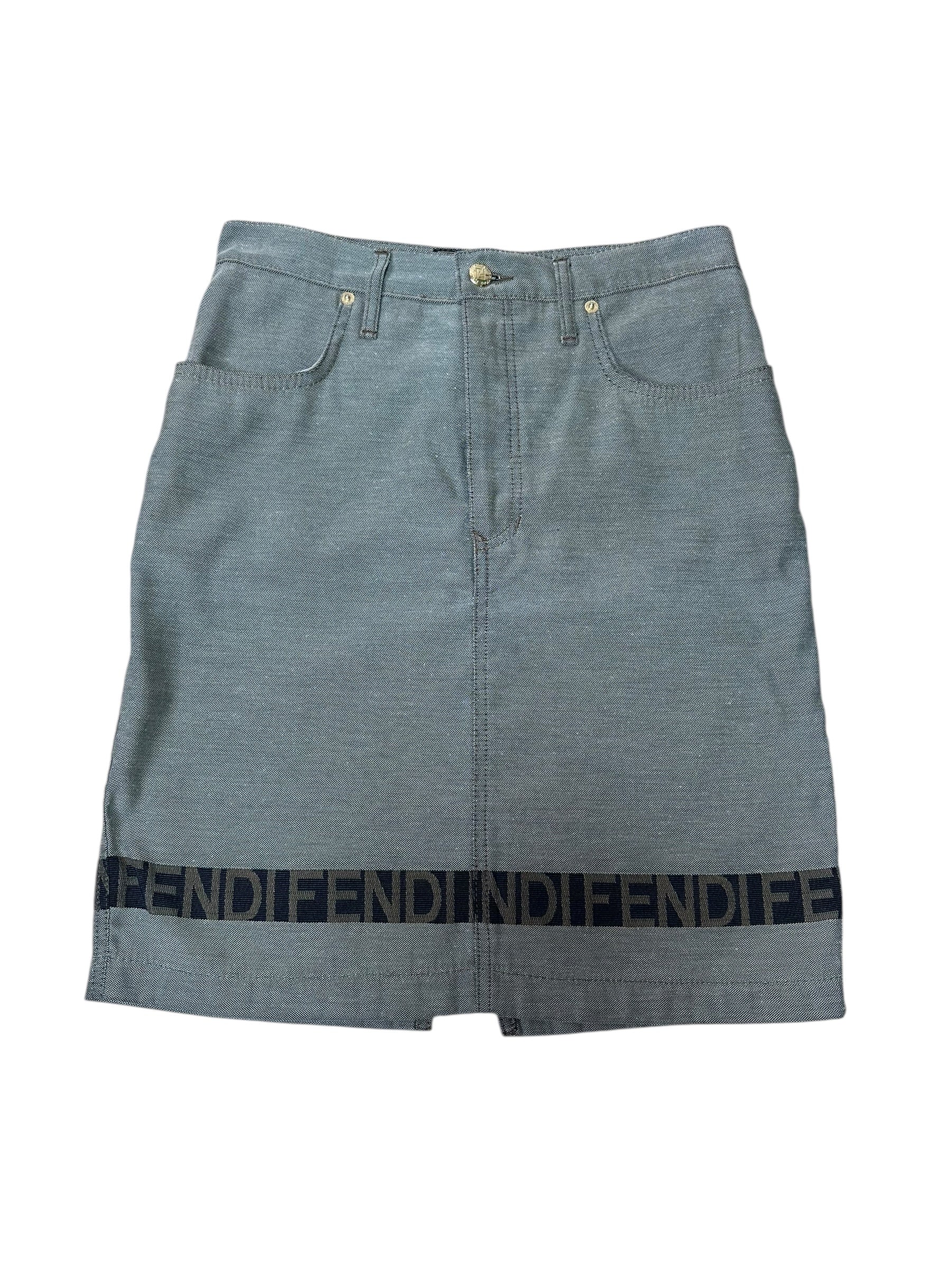 Fendi Jeans - Gonna in denim sabbia con logo a fascia