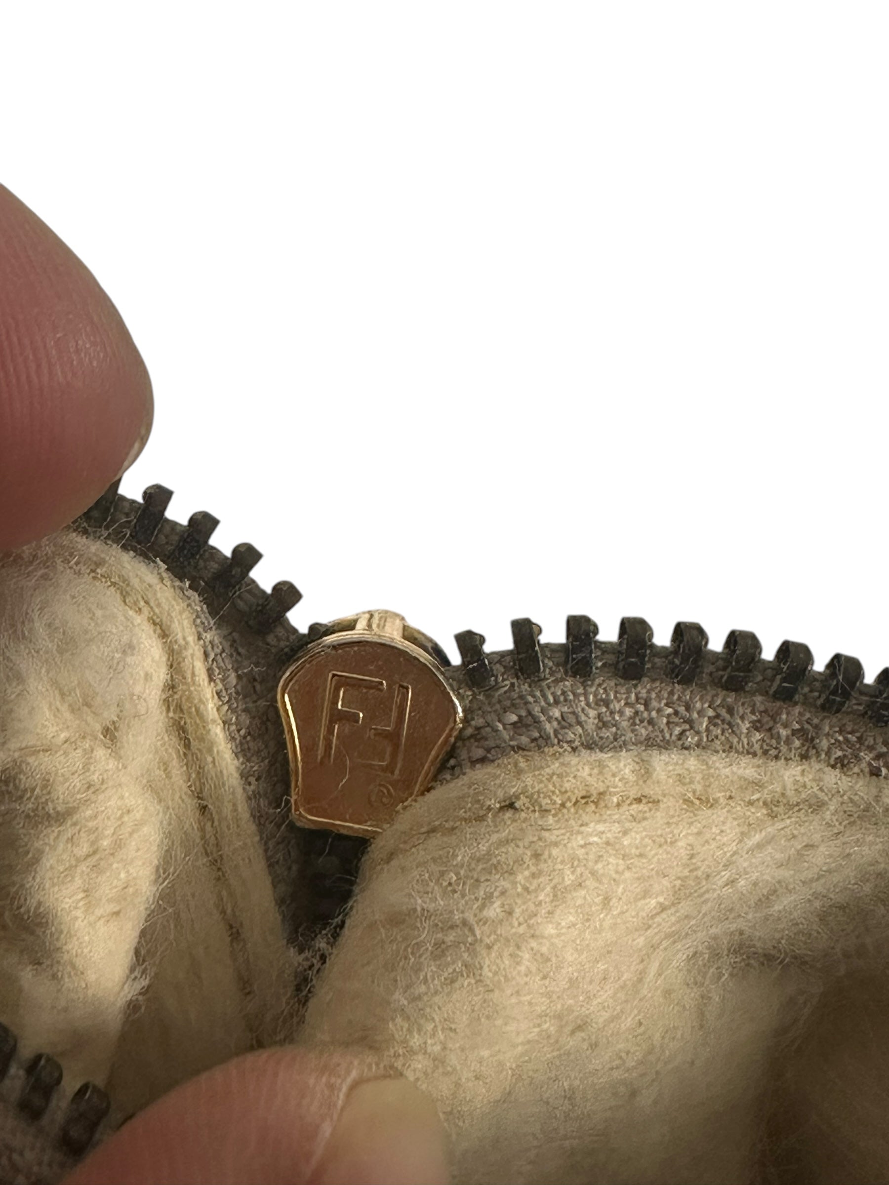• Zip: Il cursore in metallo dorato mantiene il logo “FF” inciso, un elemento chiave per l’autenticità della borsa.