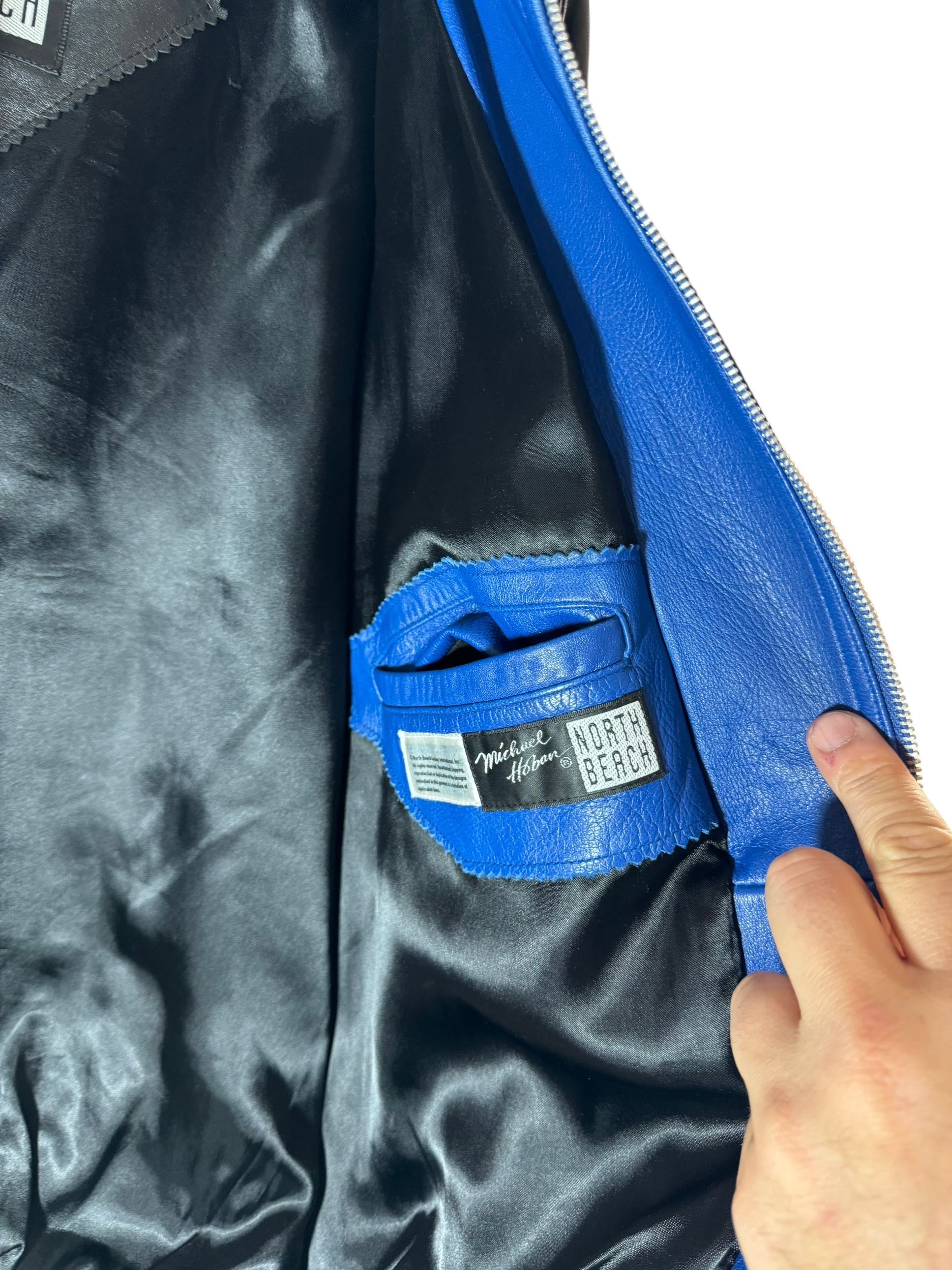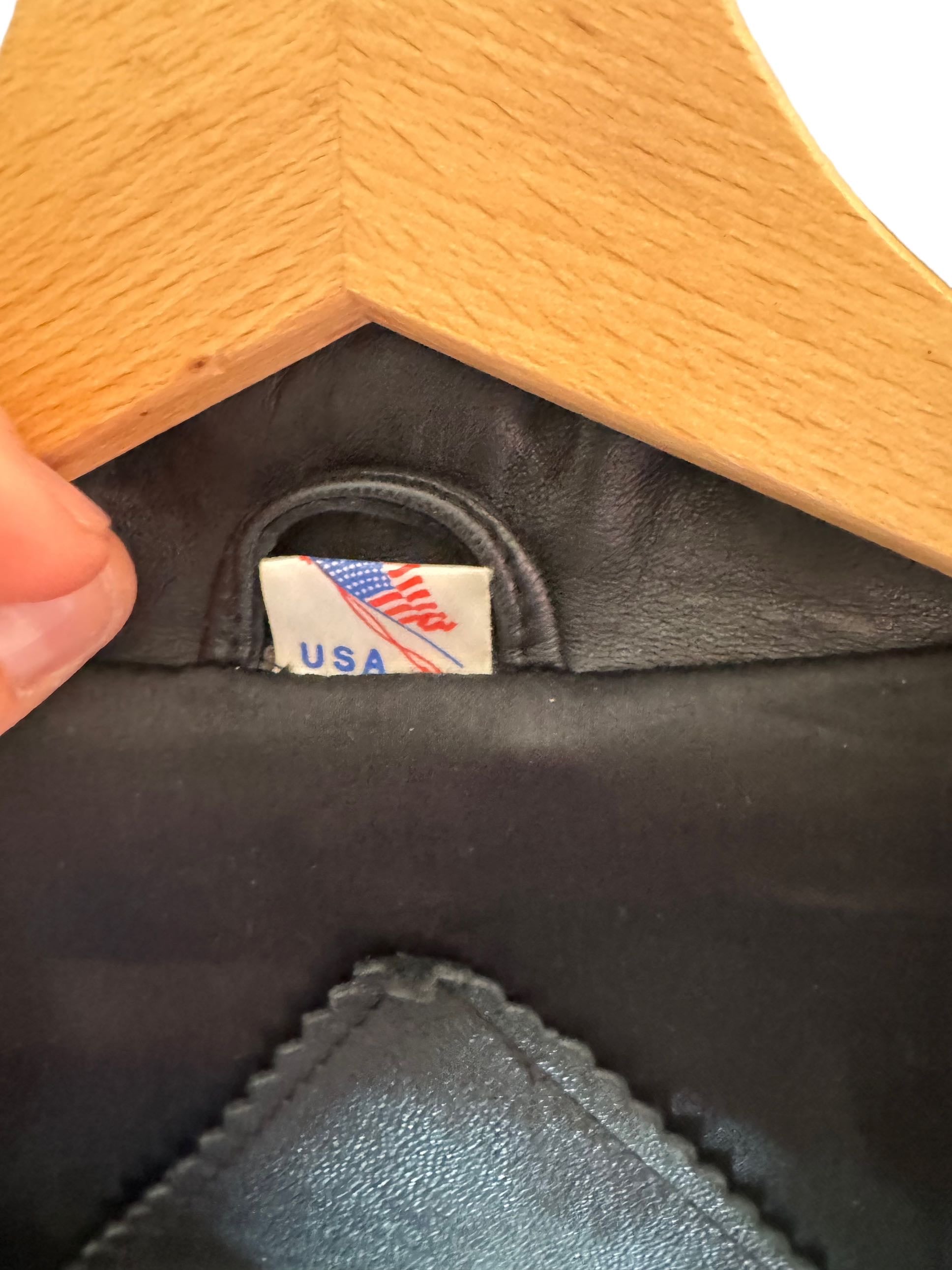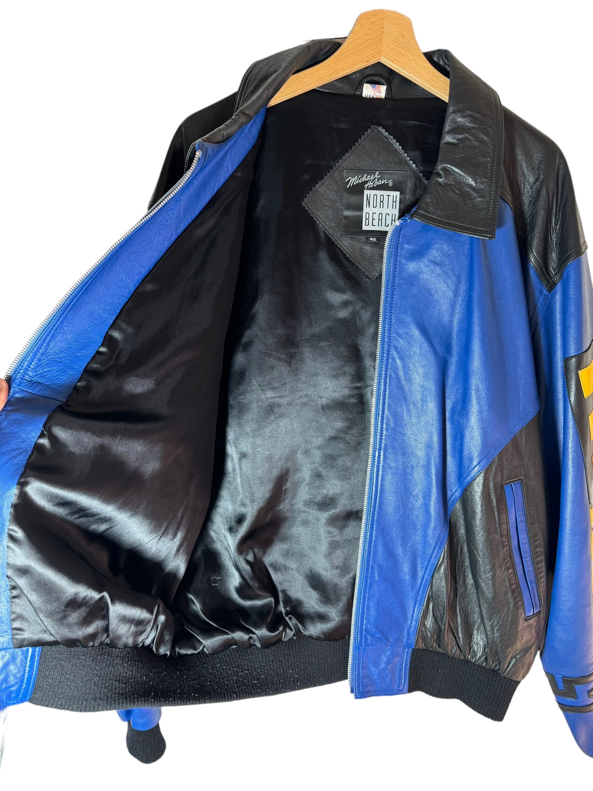 Giacca bomber in pelle vintage Michael Hoban, taglia 46, veste bene una L/XL.
