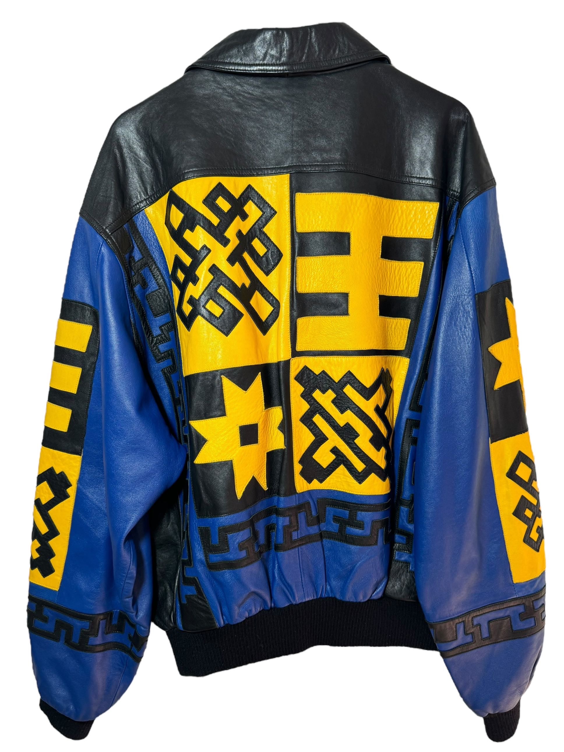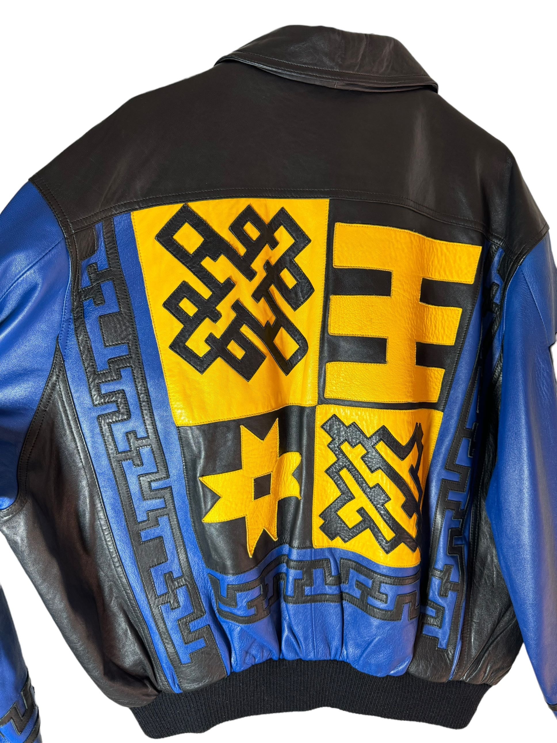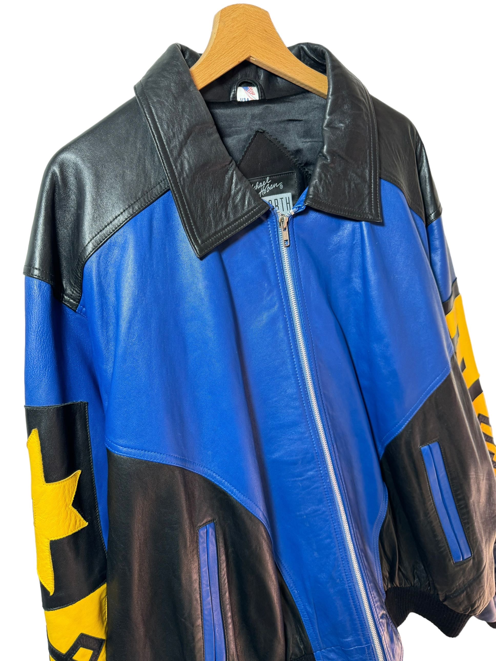 Giacca bomber in pelle vintage Michael Hoban, taglia 46, veste bene una L/XL.