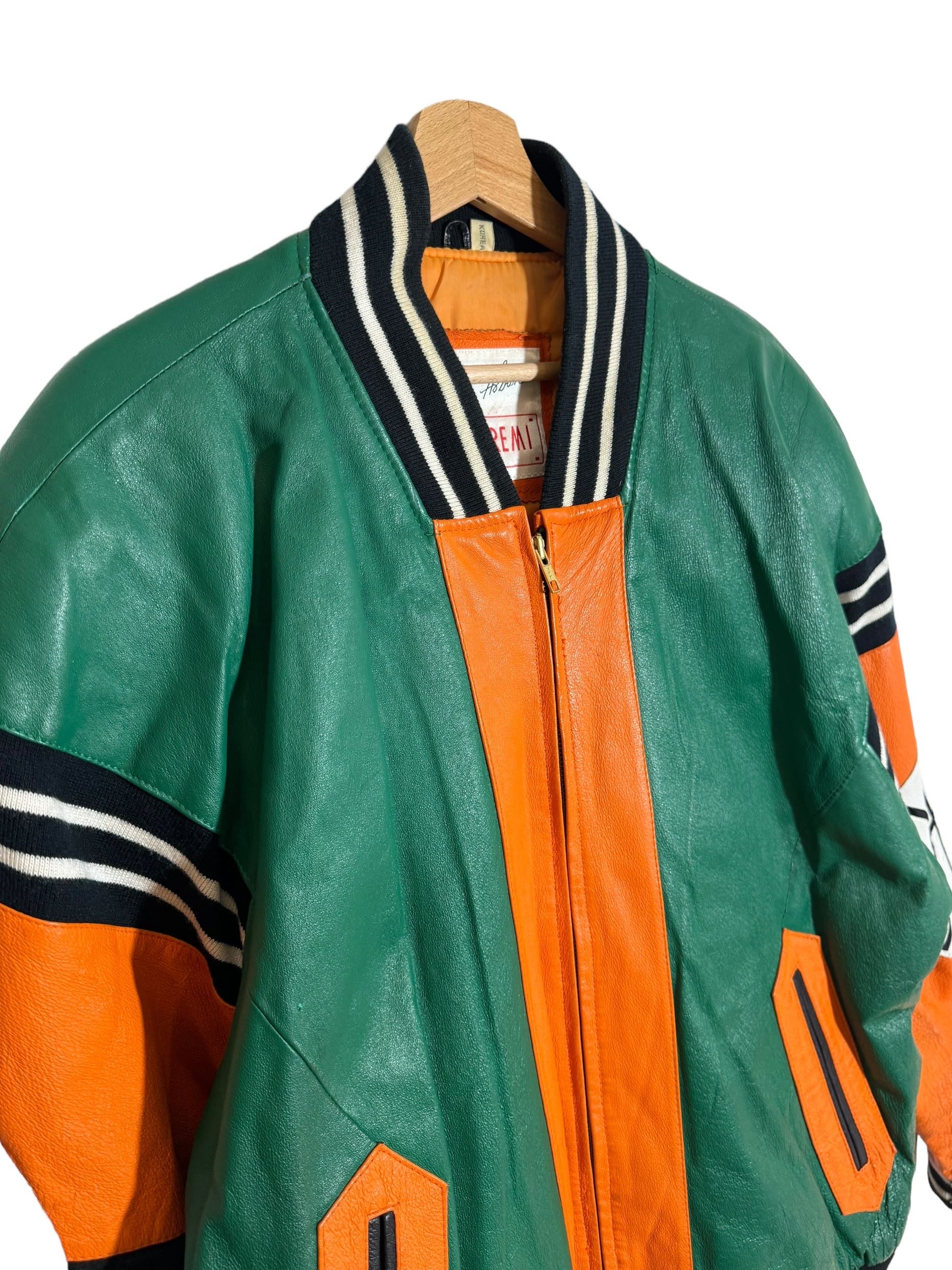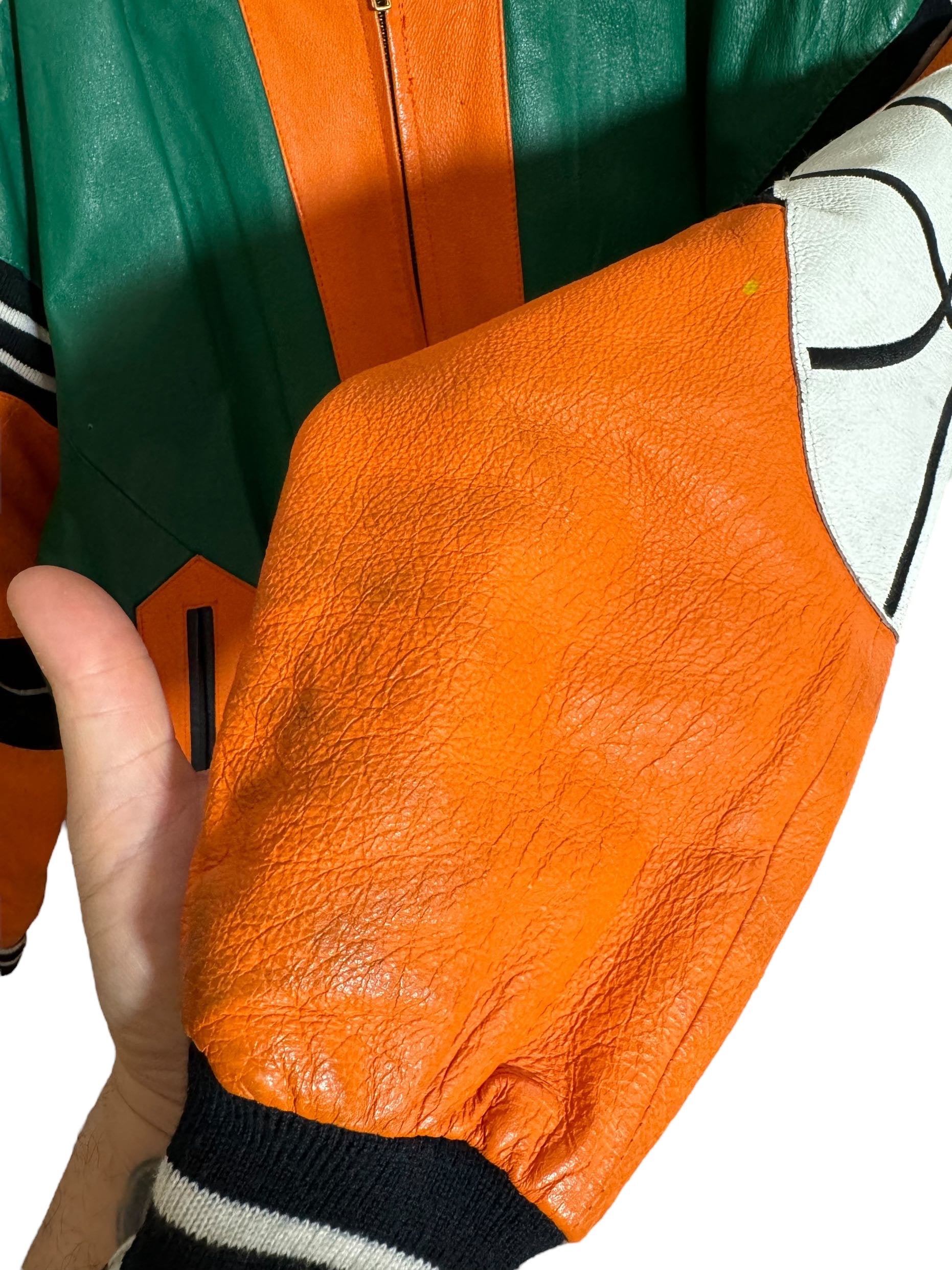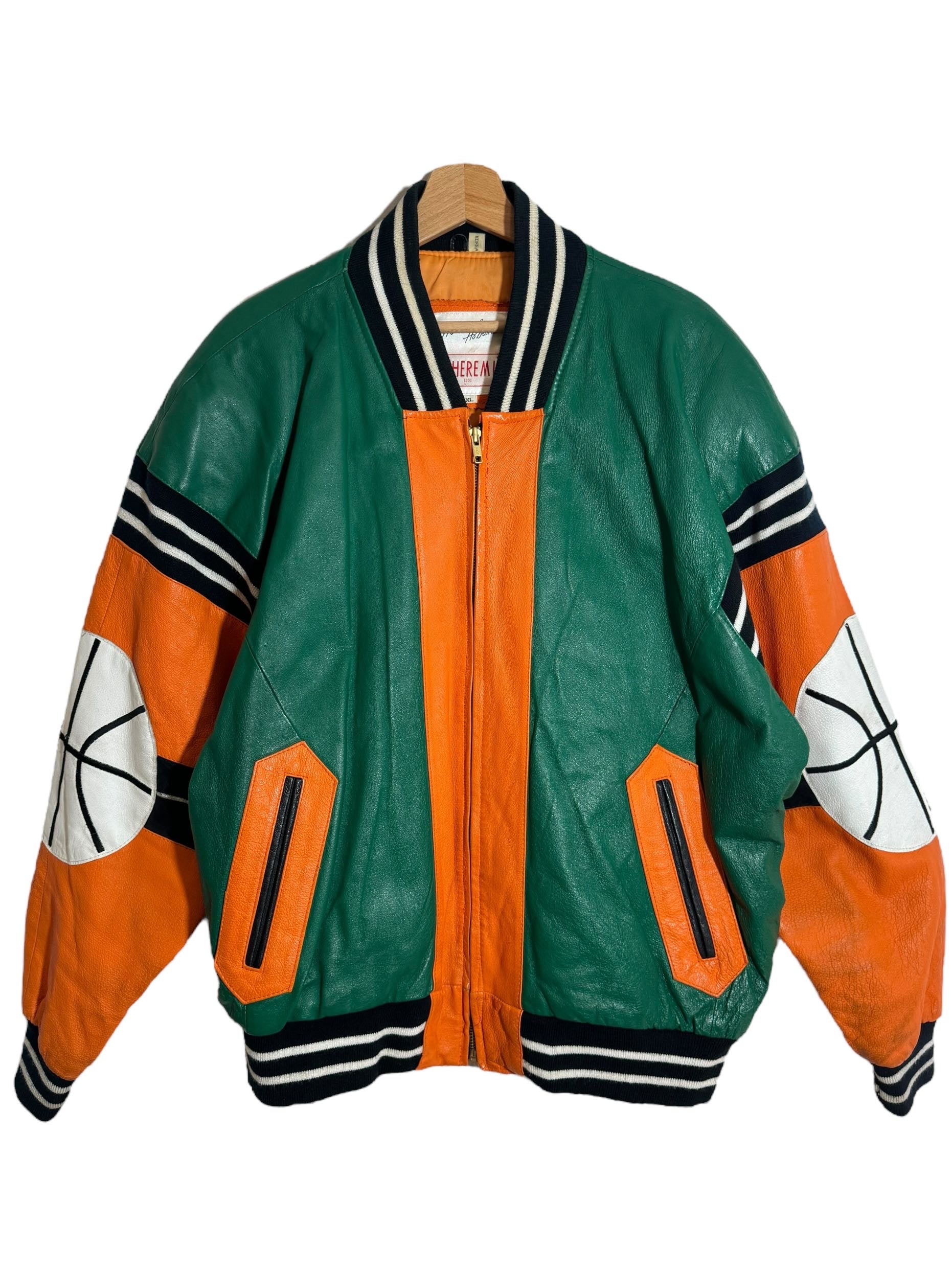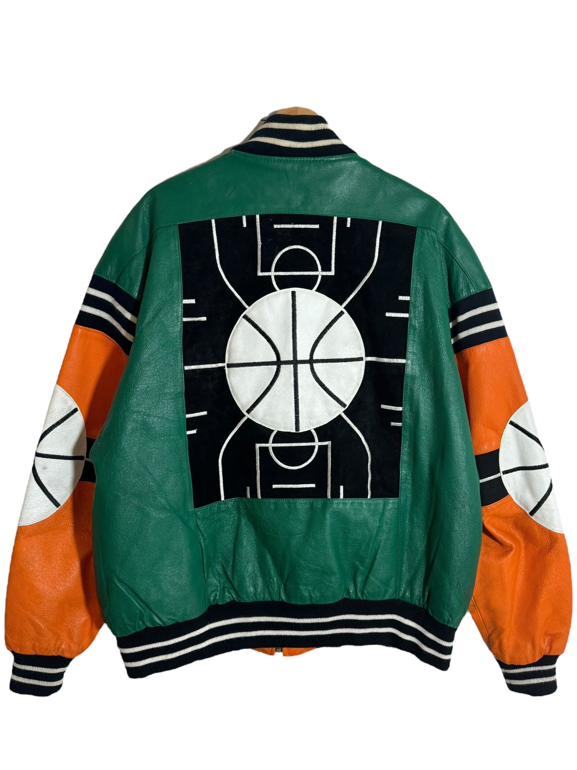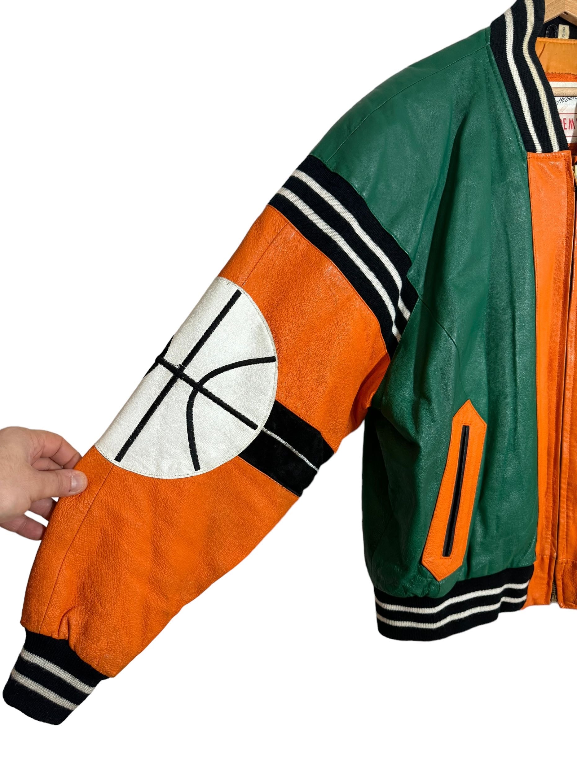 Giacca in pelle americana vintage Michael Hoban a tema basket, vintage anni 90s.