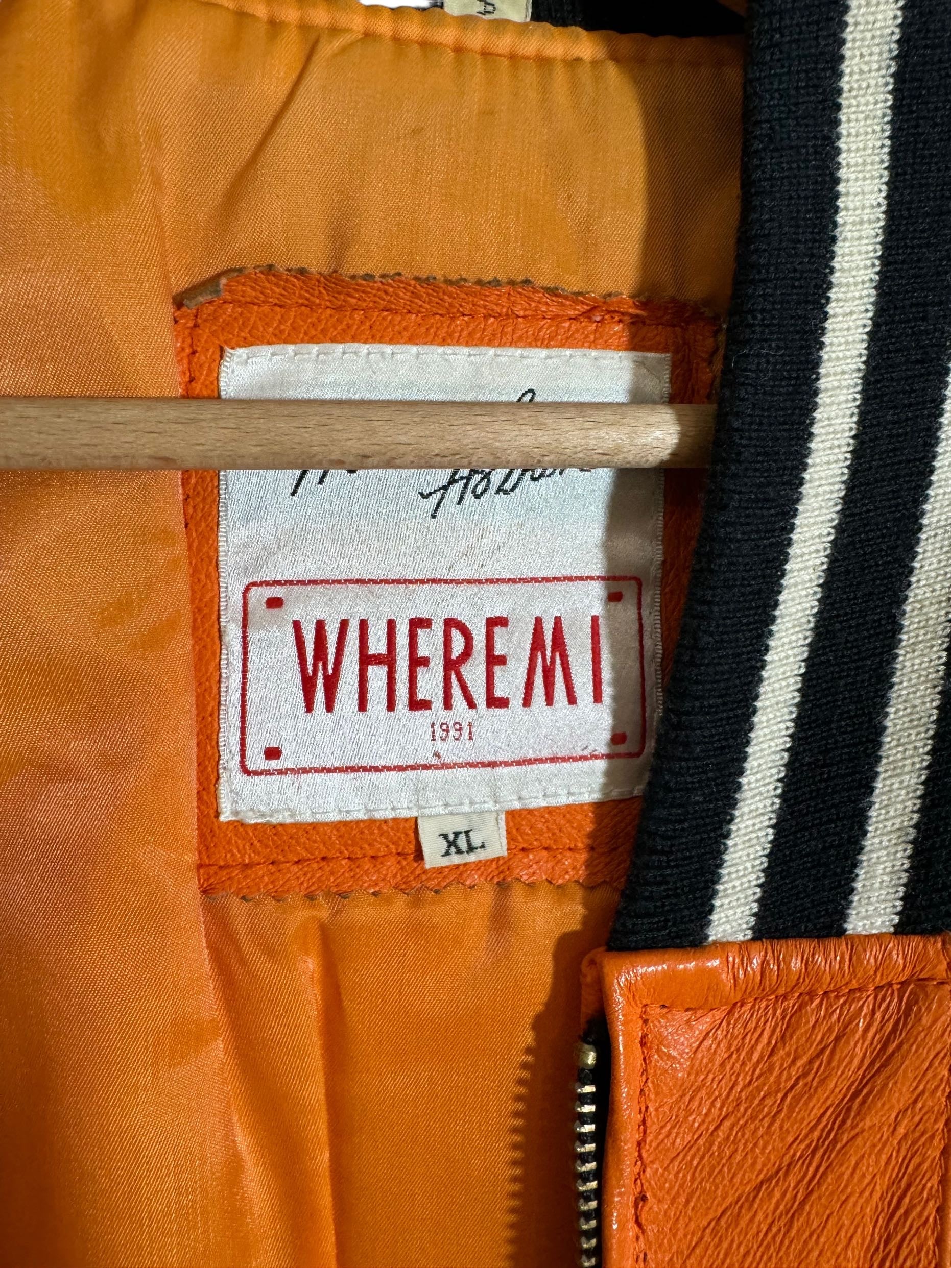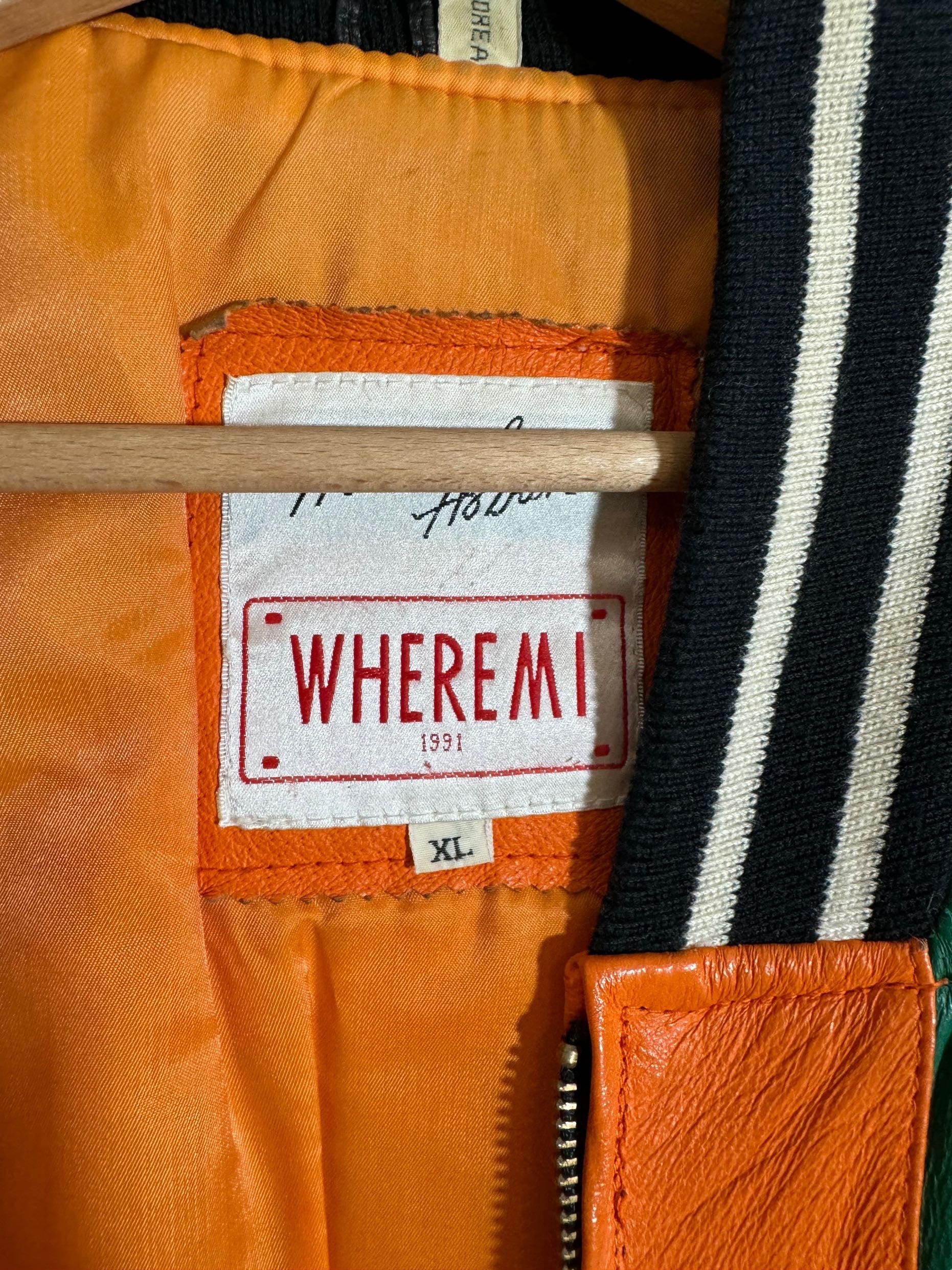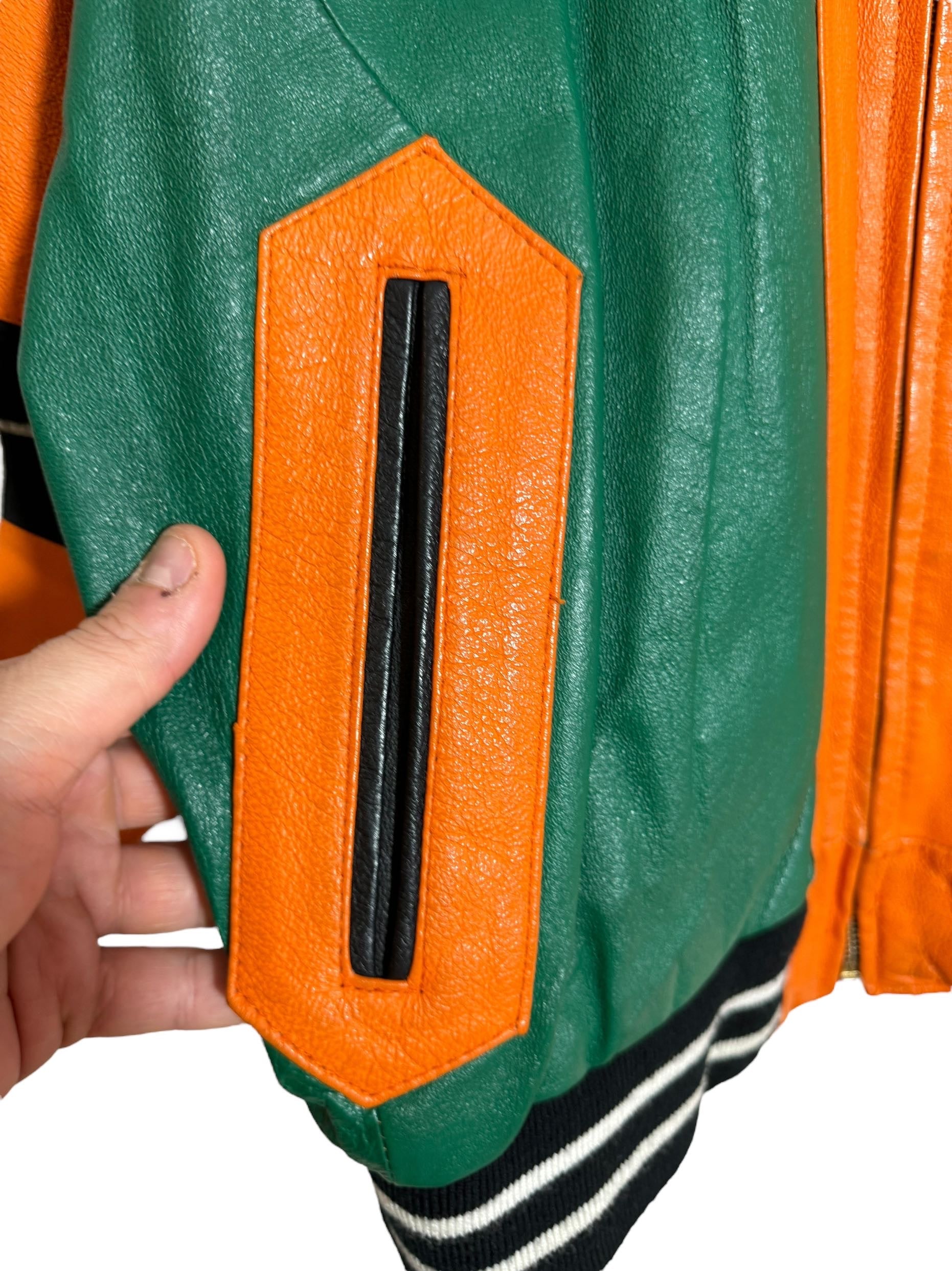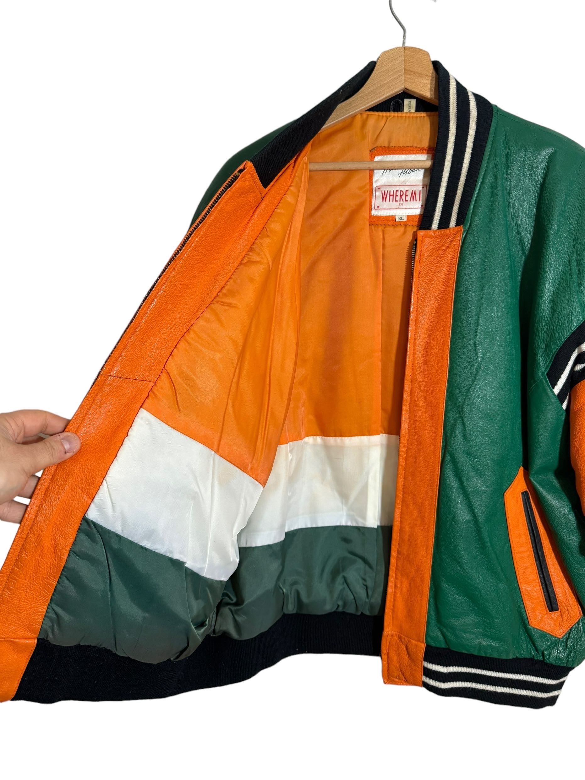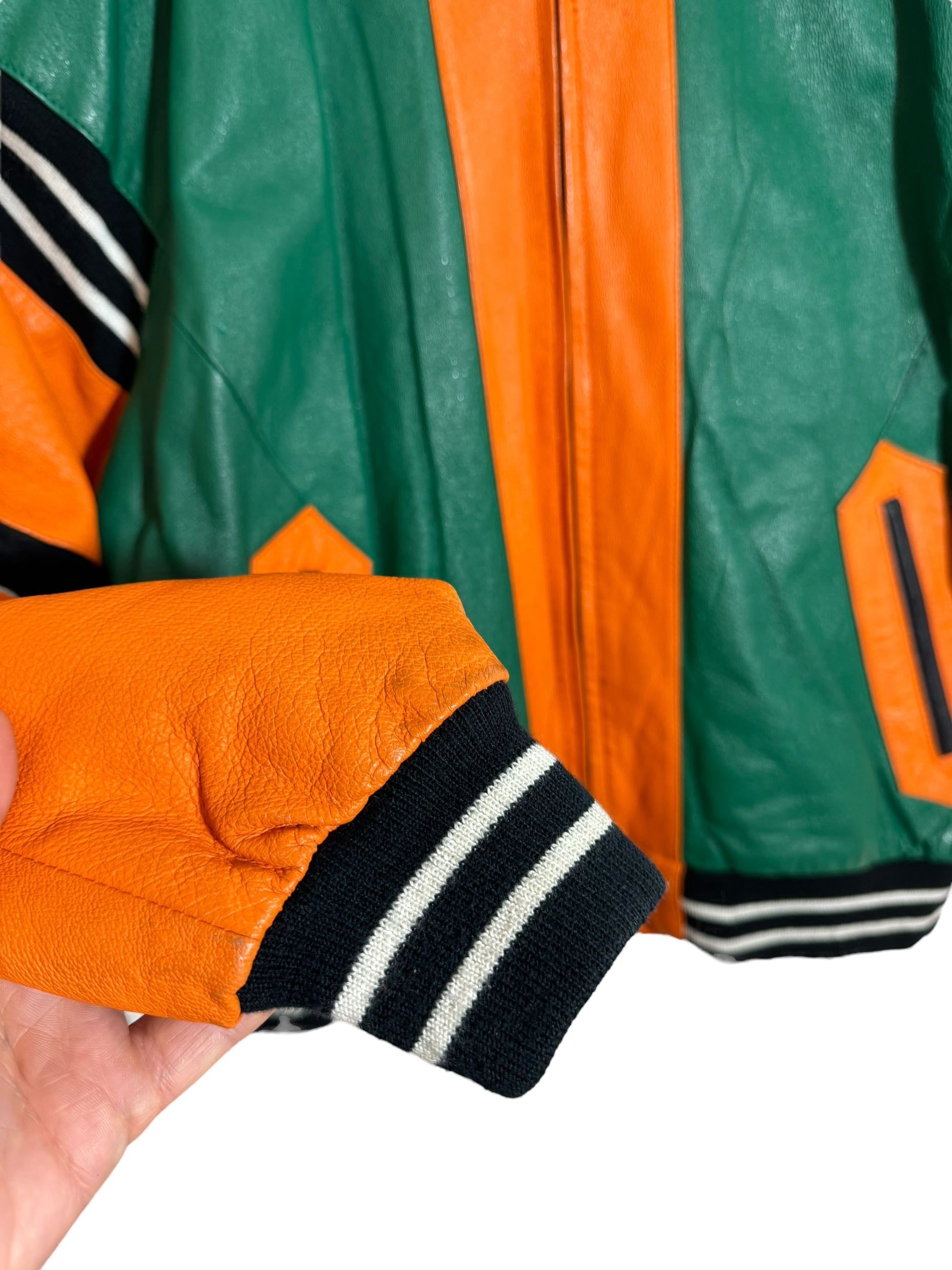 Giacca in pelle americana vintage Michael Hoban a tema basket, vintage anni 90s.