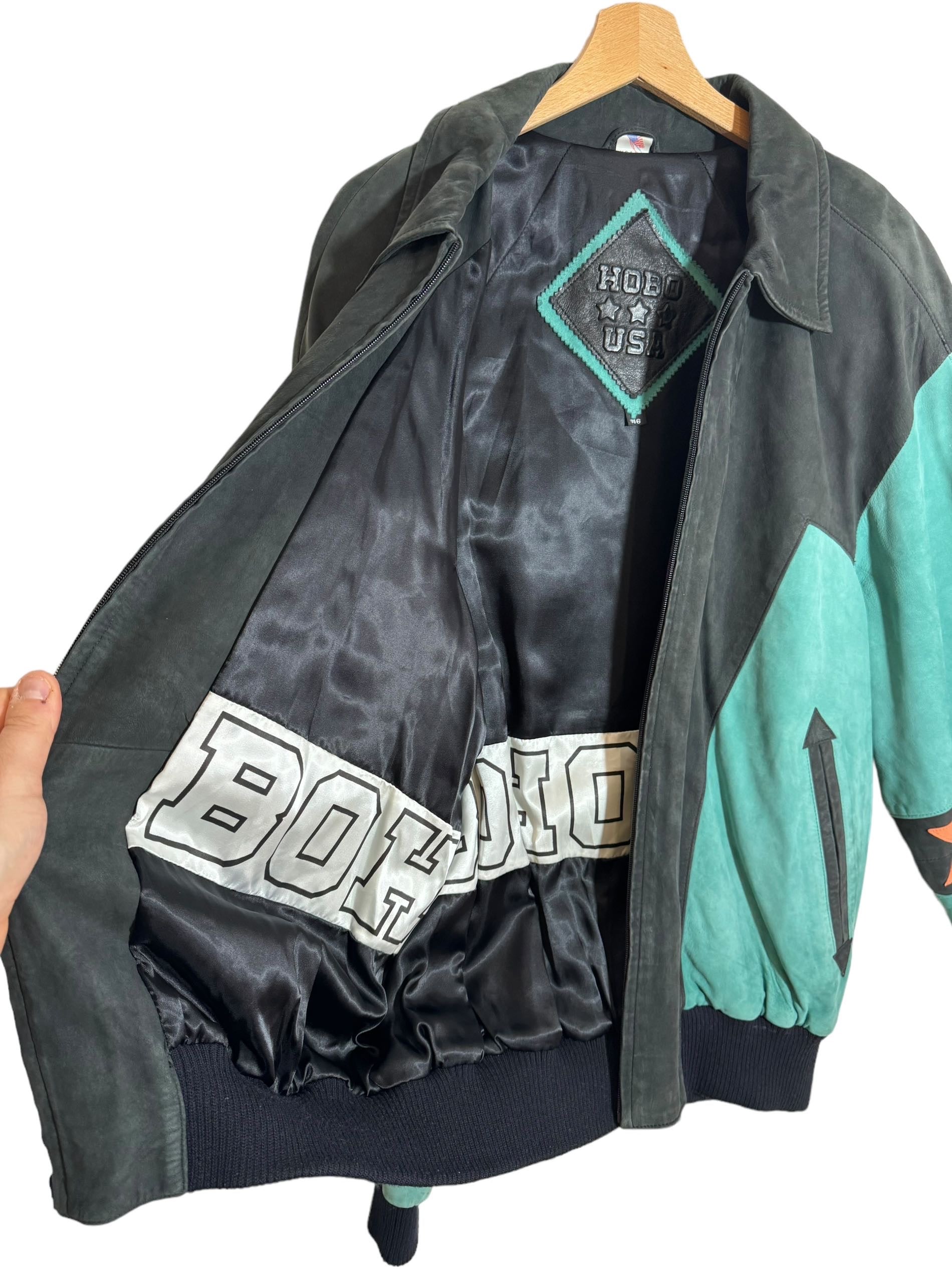Giacca in pelle scamosciata americana vintage Michael Hoban, vintage anni 90s.
