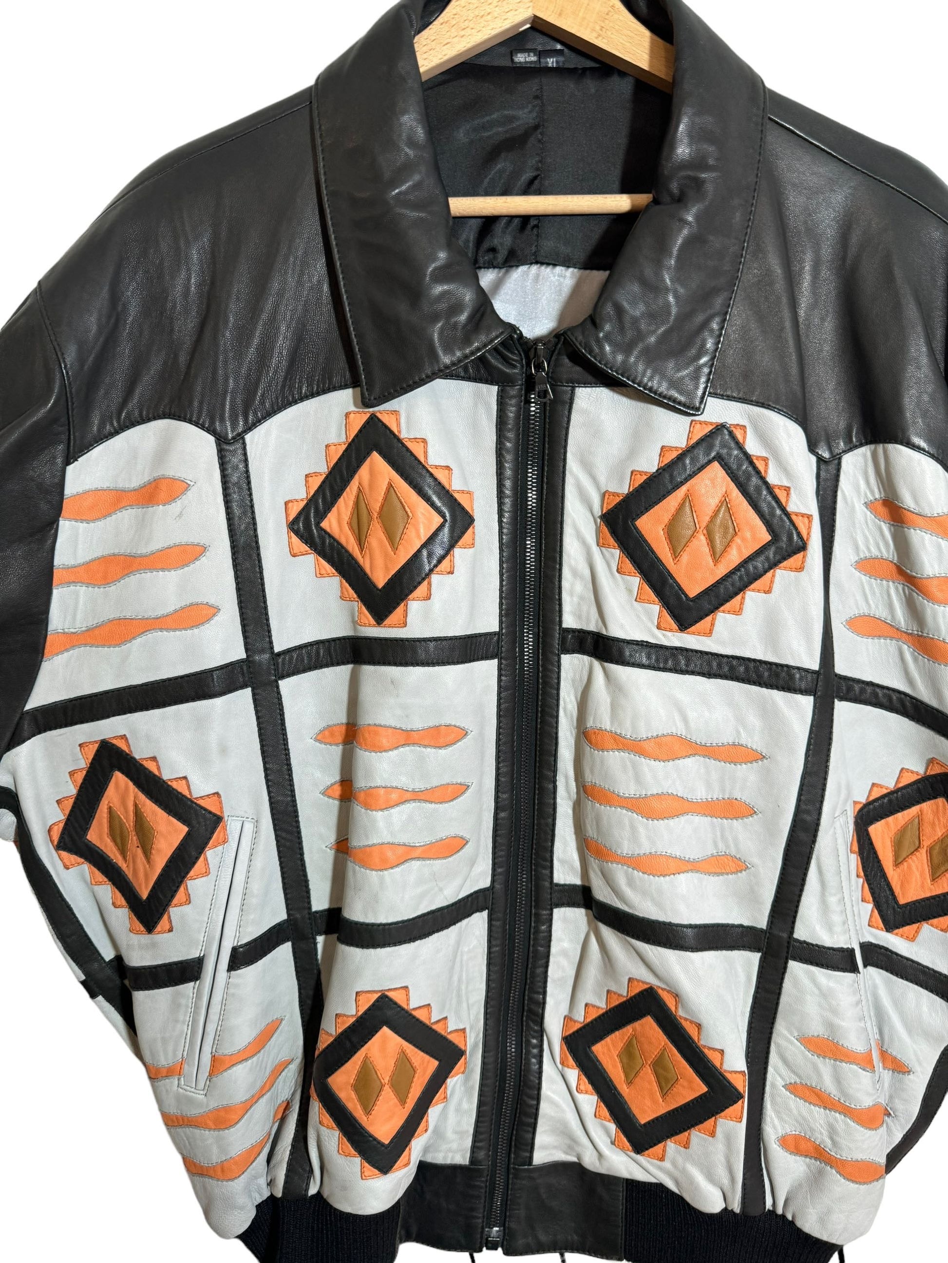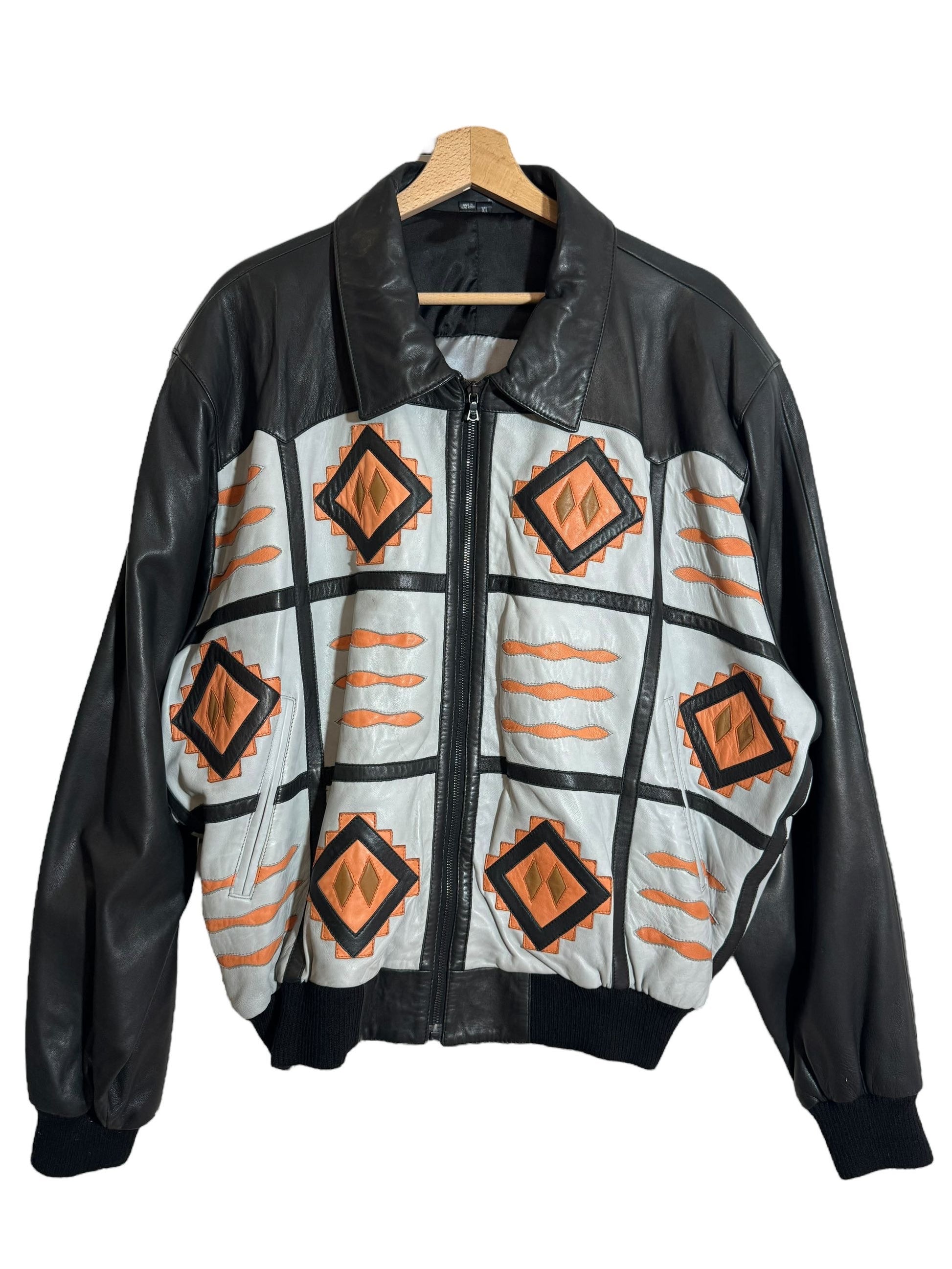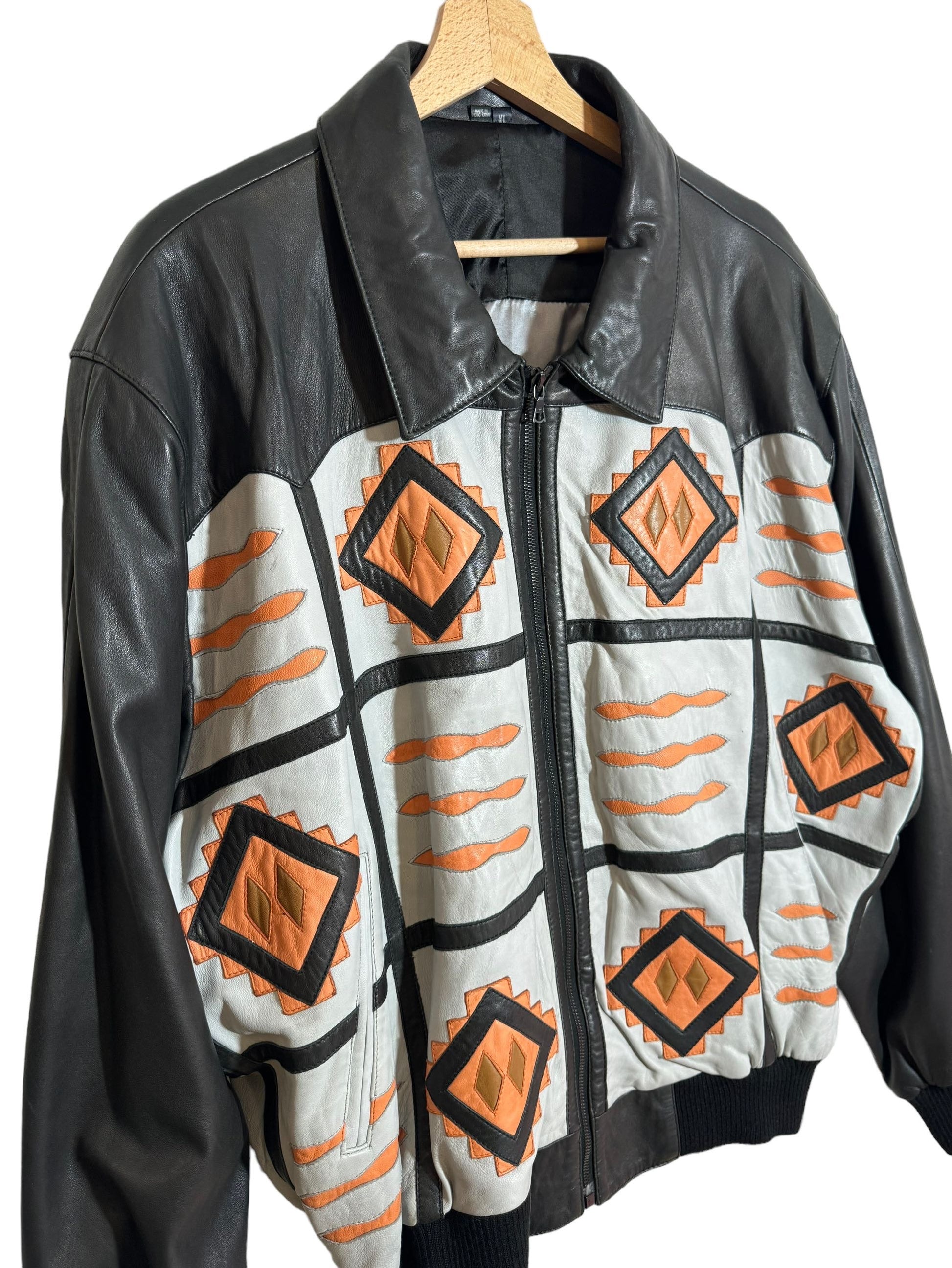 Giacca a bomber in pelle americana vintage Michael Hoban. Anni 90s.
