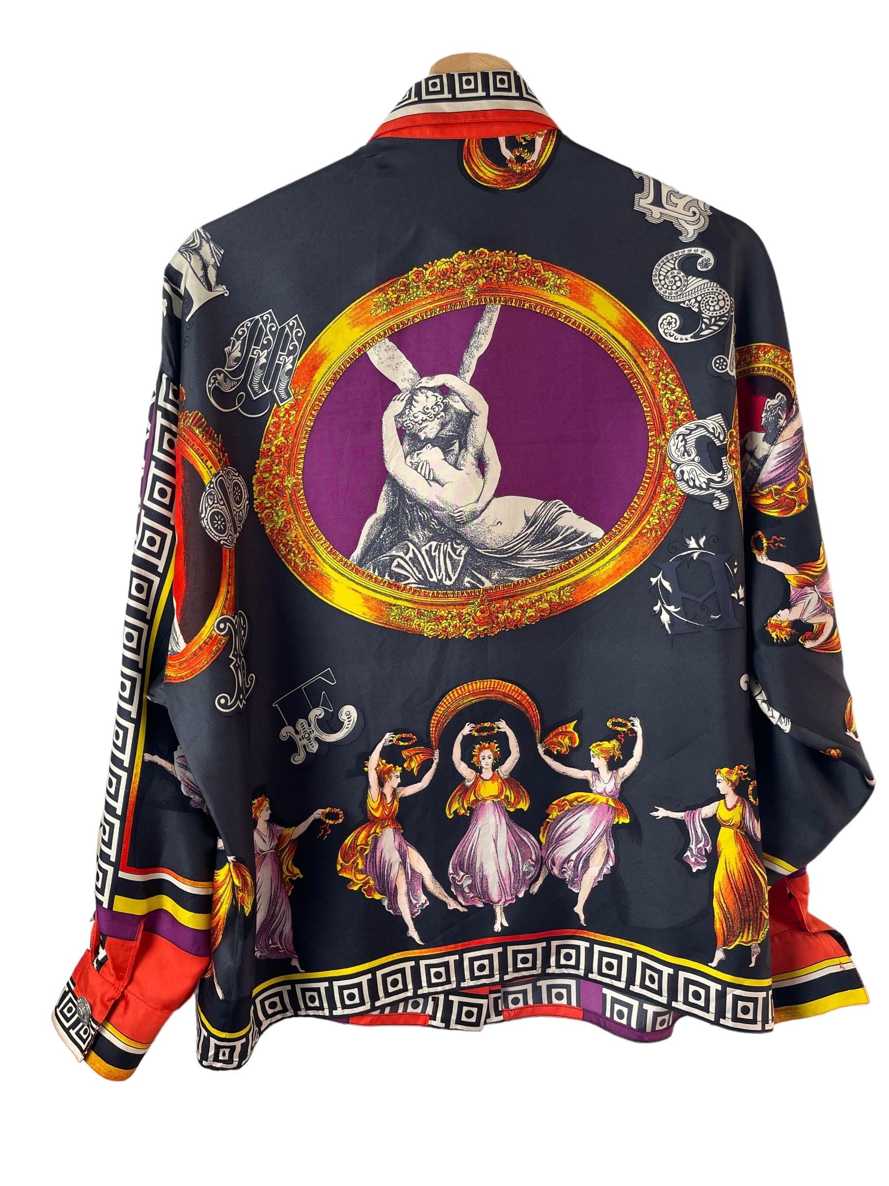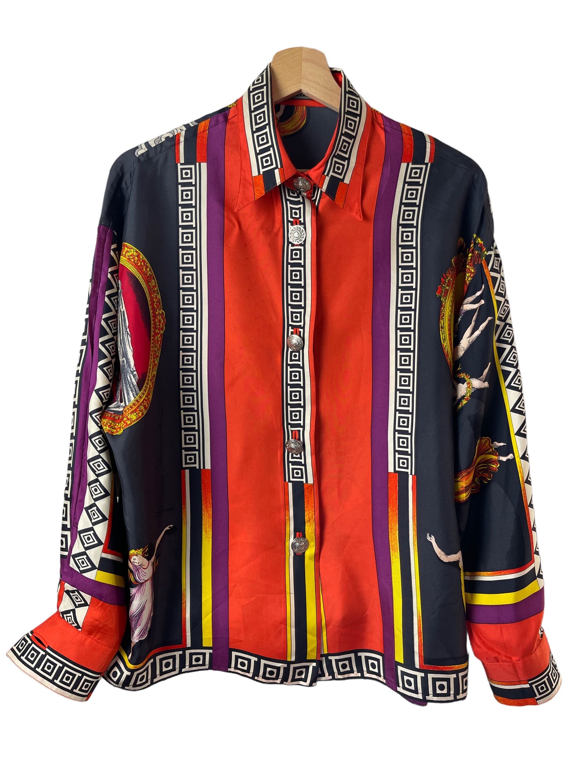 Gianni Versace, camicia in seta, anni 90s con iconica stampa Canova.