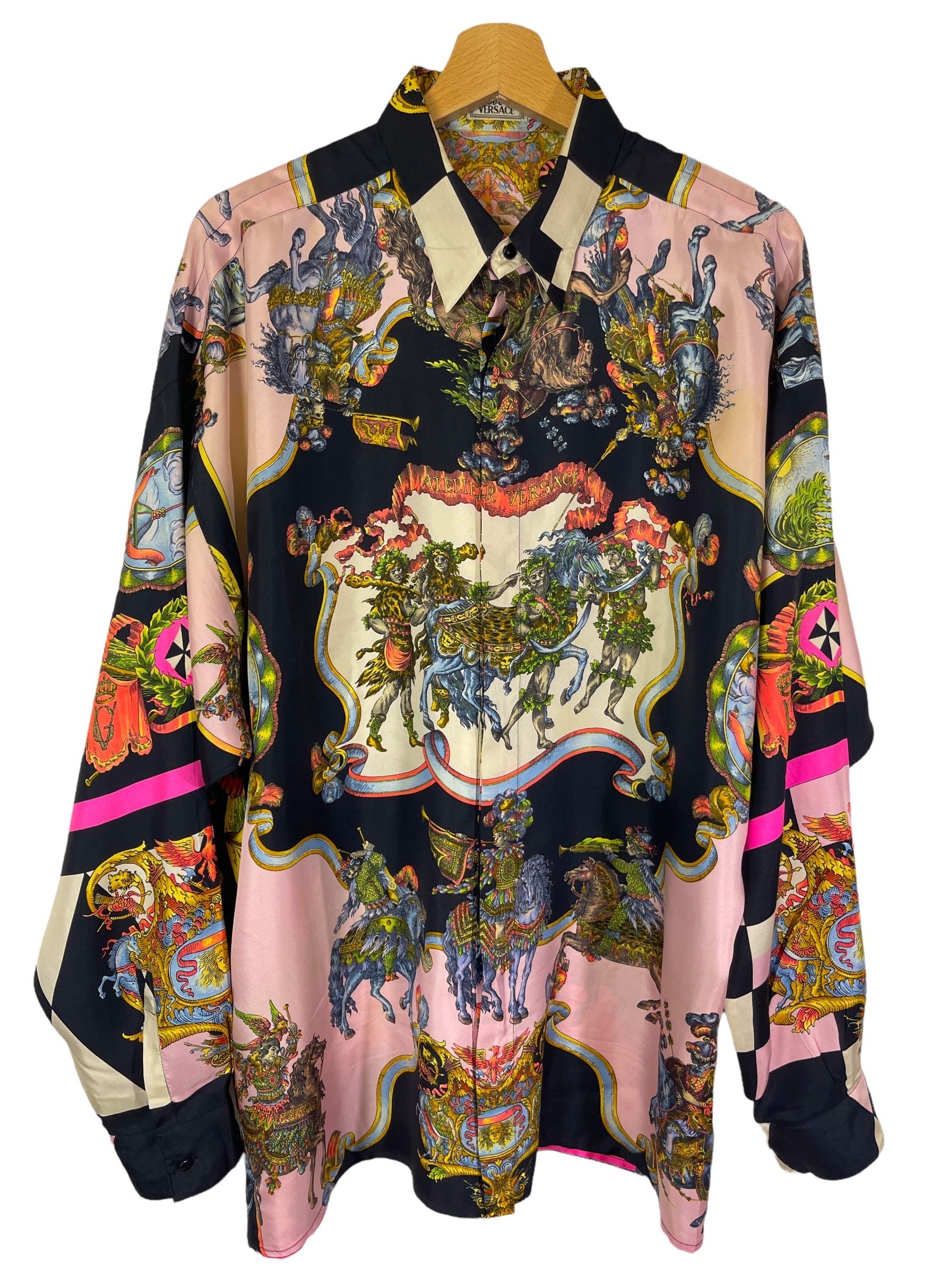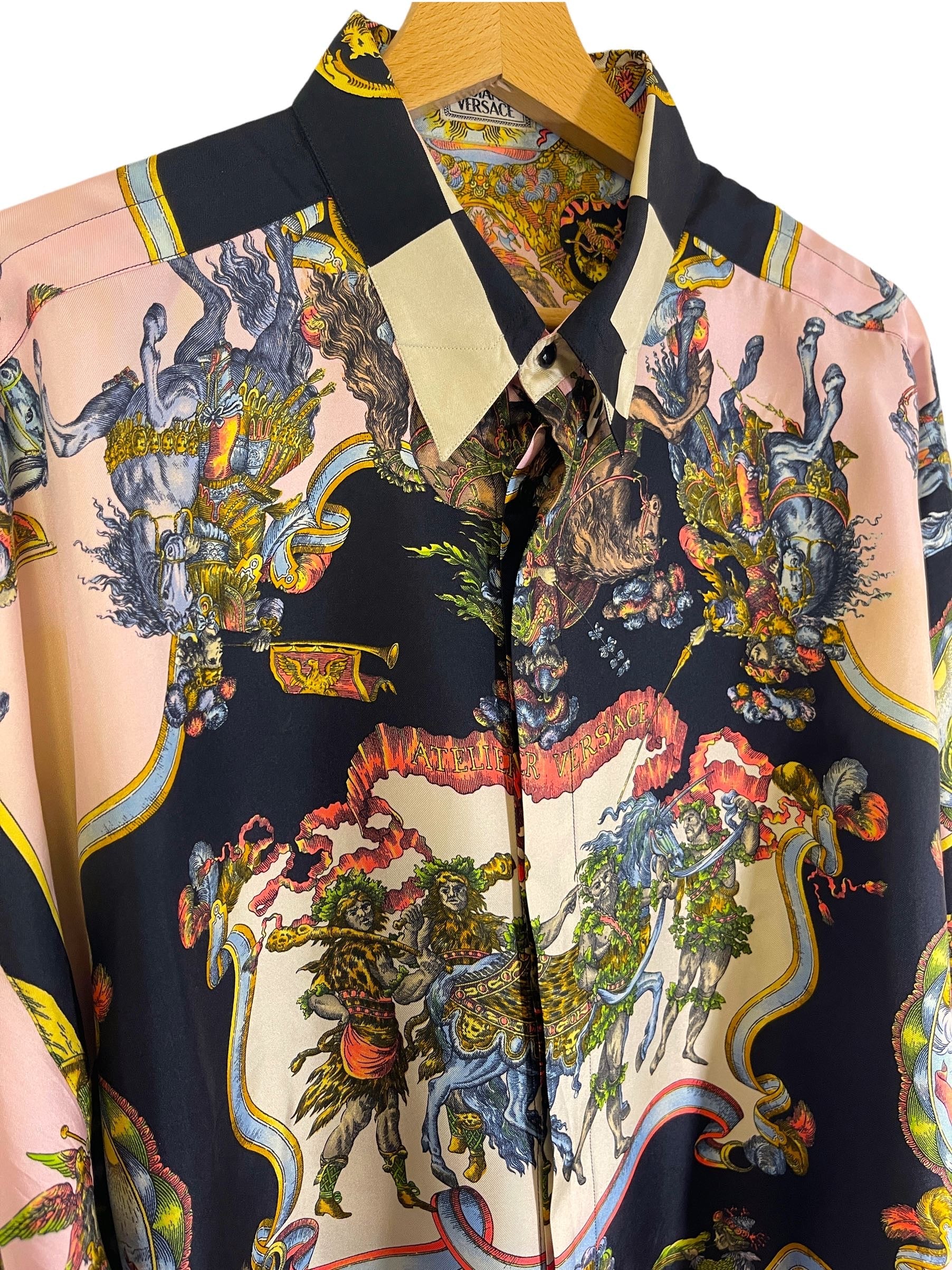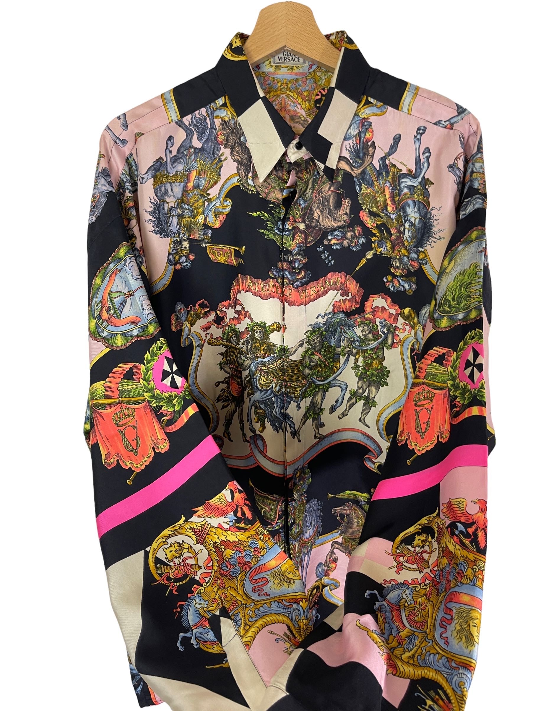 Gianni Versace camicia vintage in seta anni 90s con magnifica stampa .
