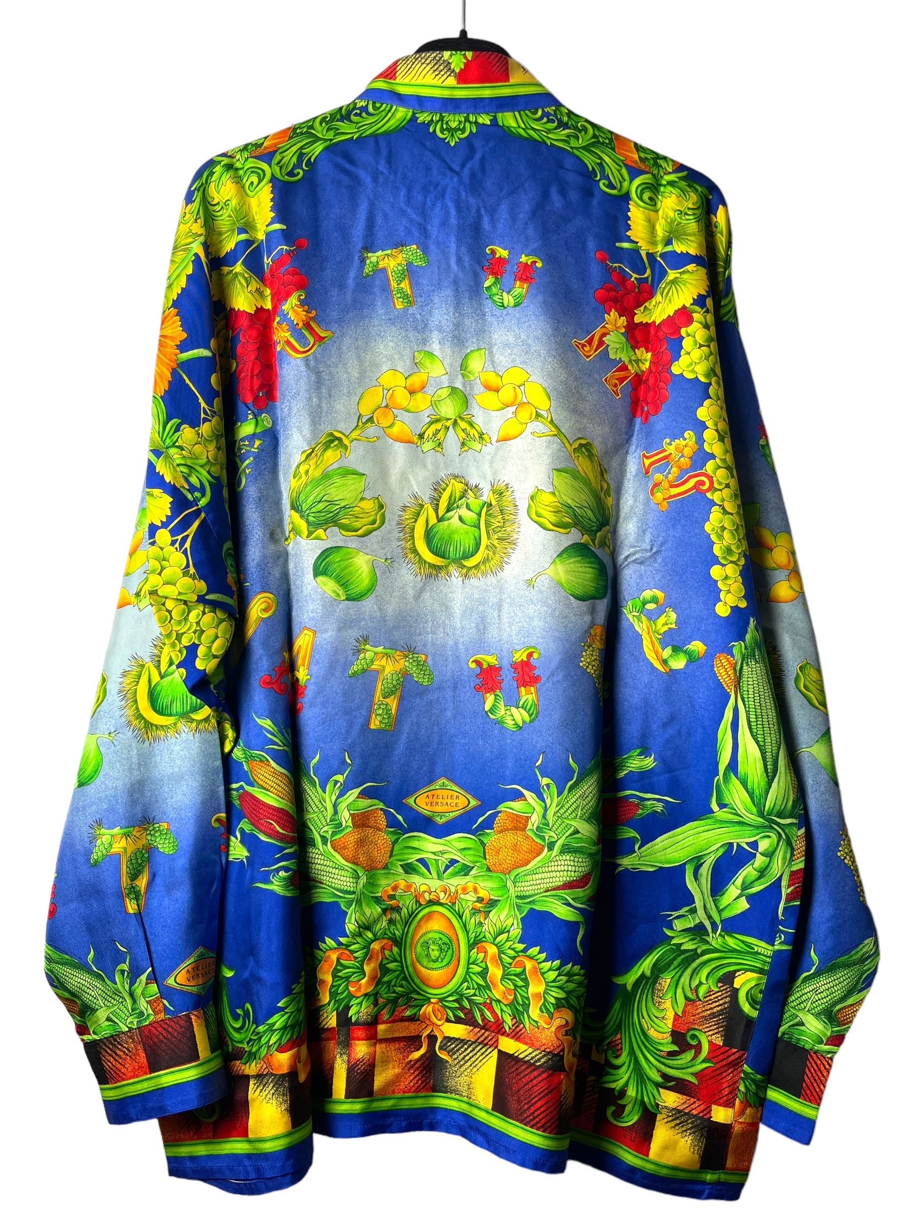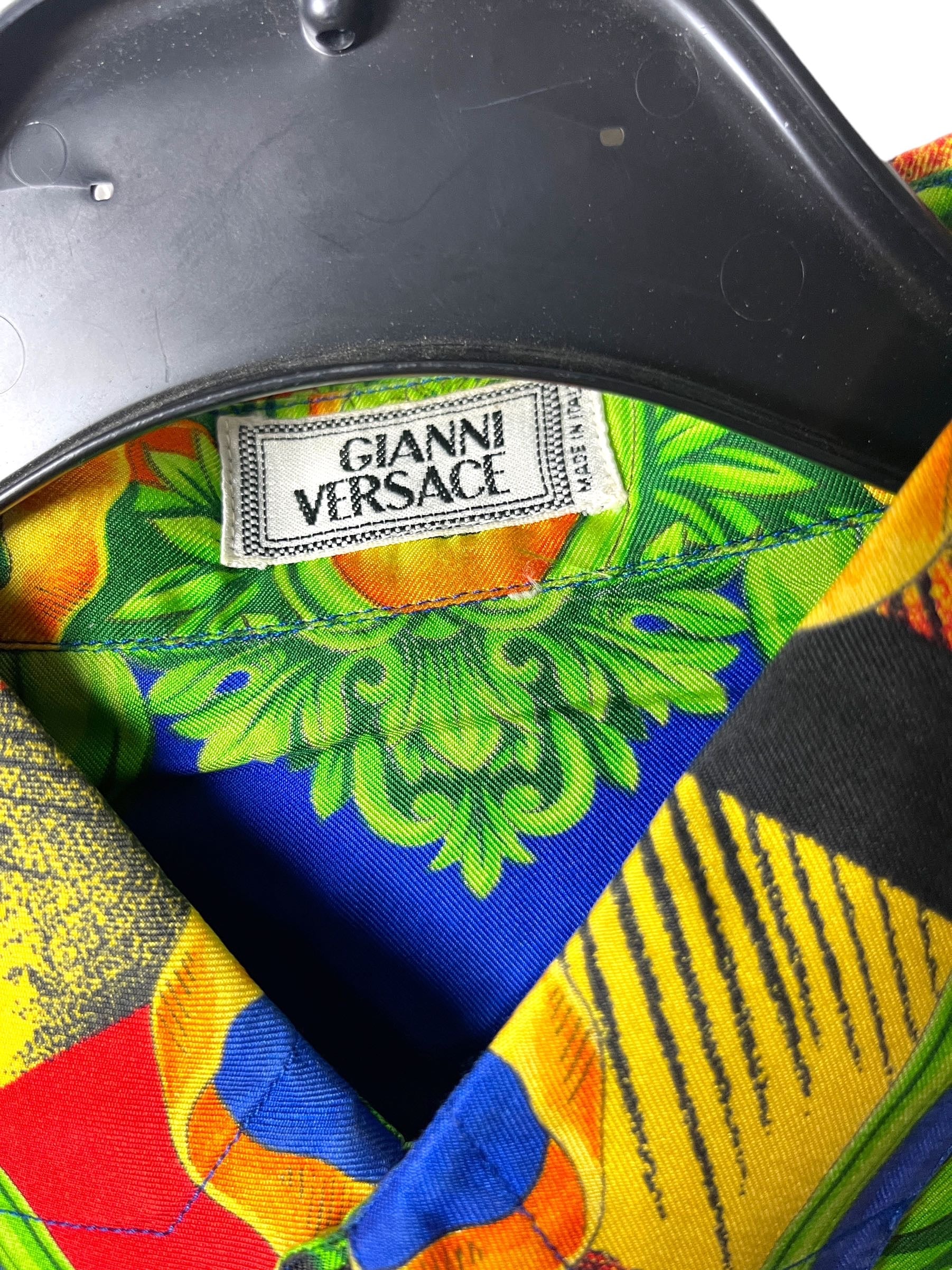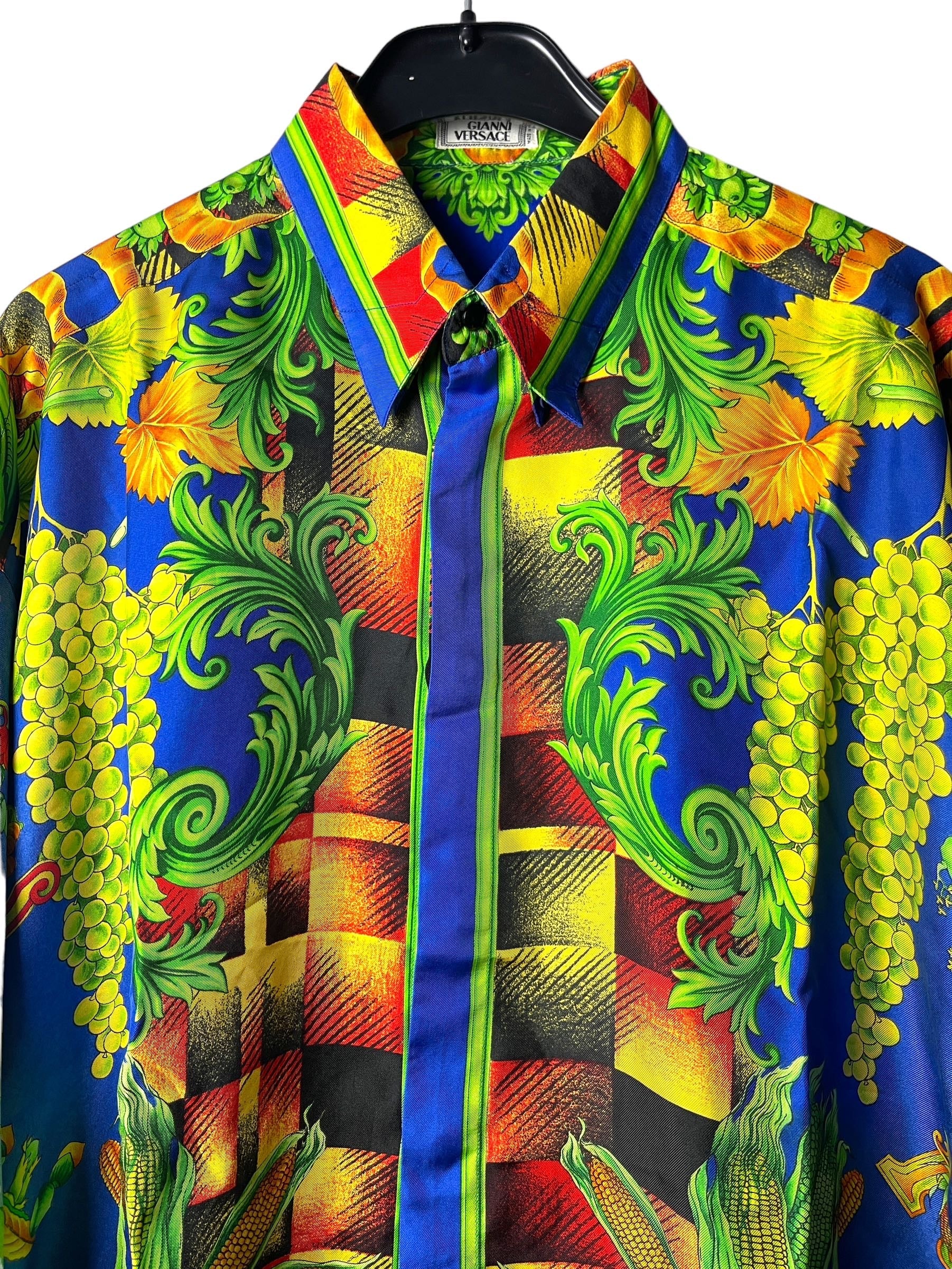 Gianni Versace camicia in seta vintage anni 90s con stampa autunno.
