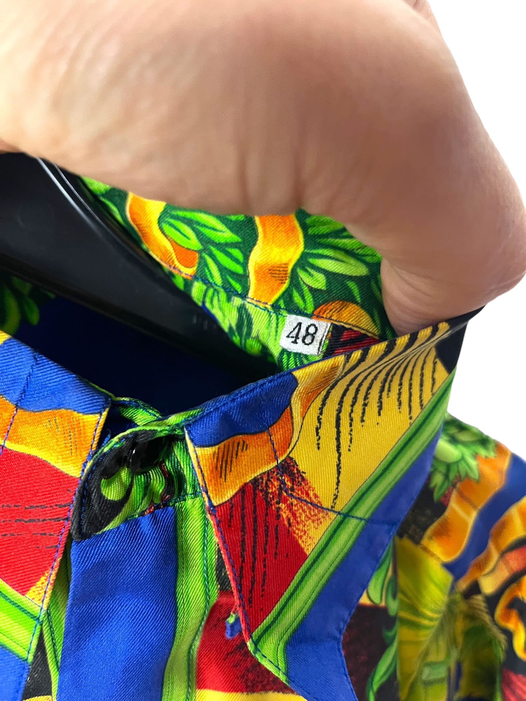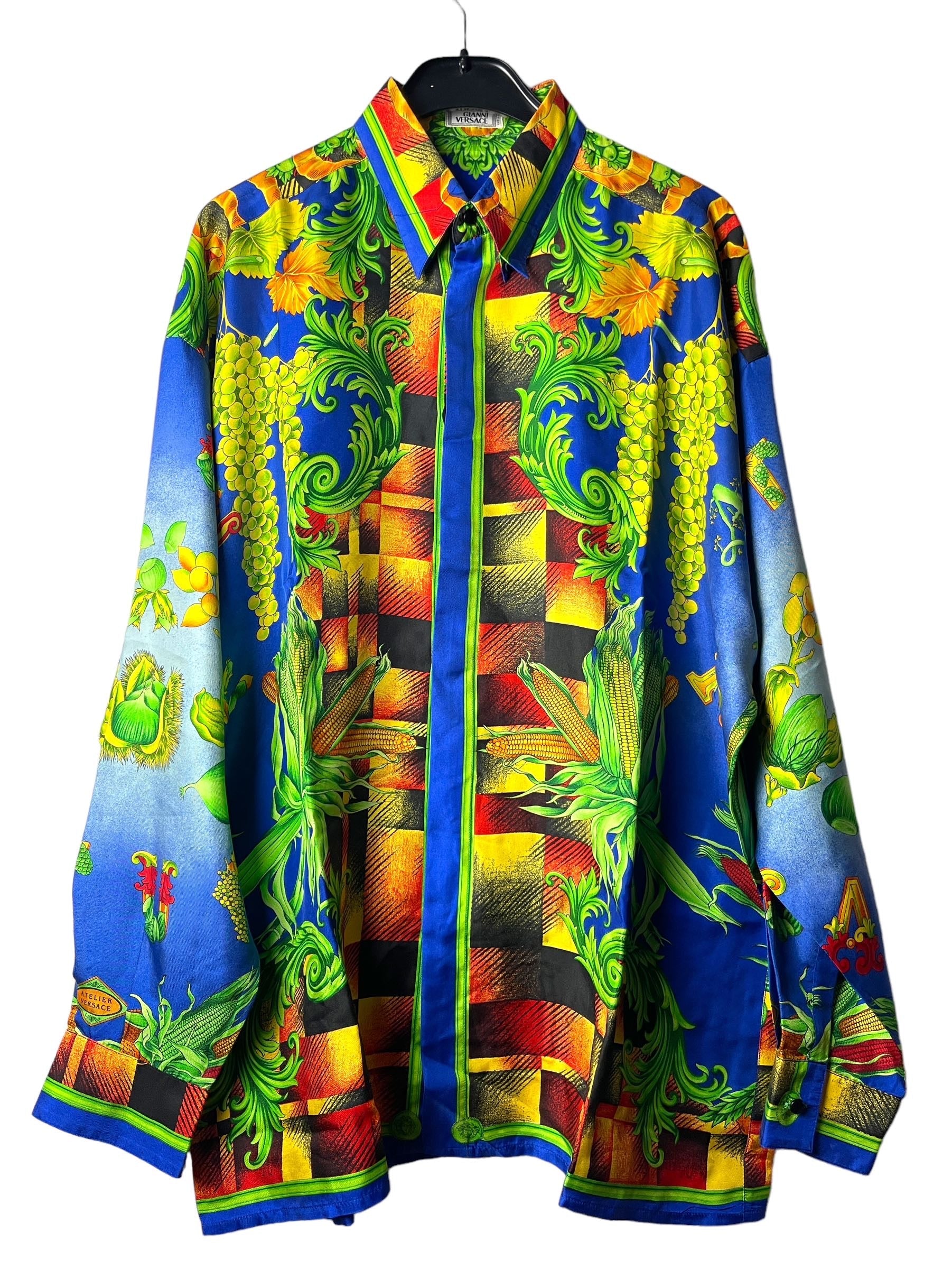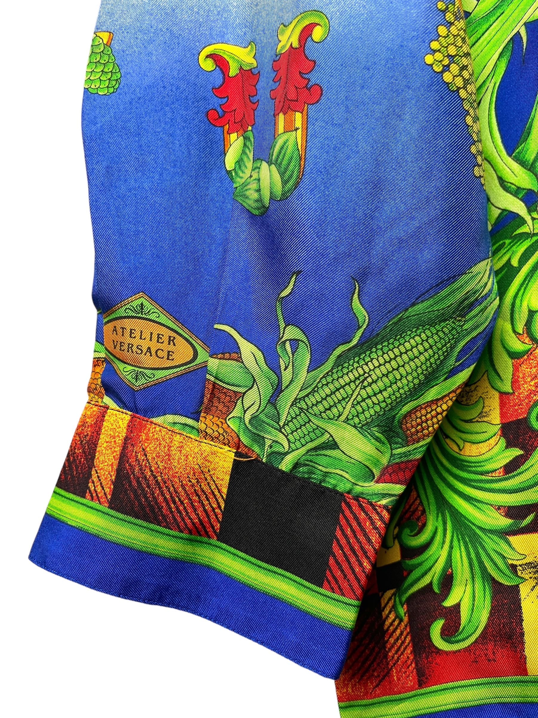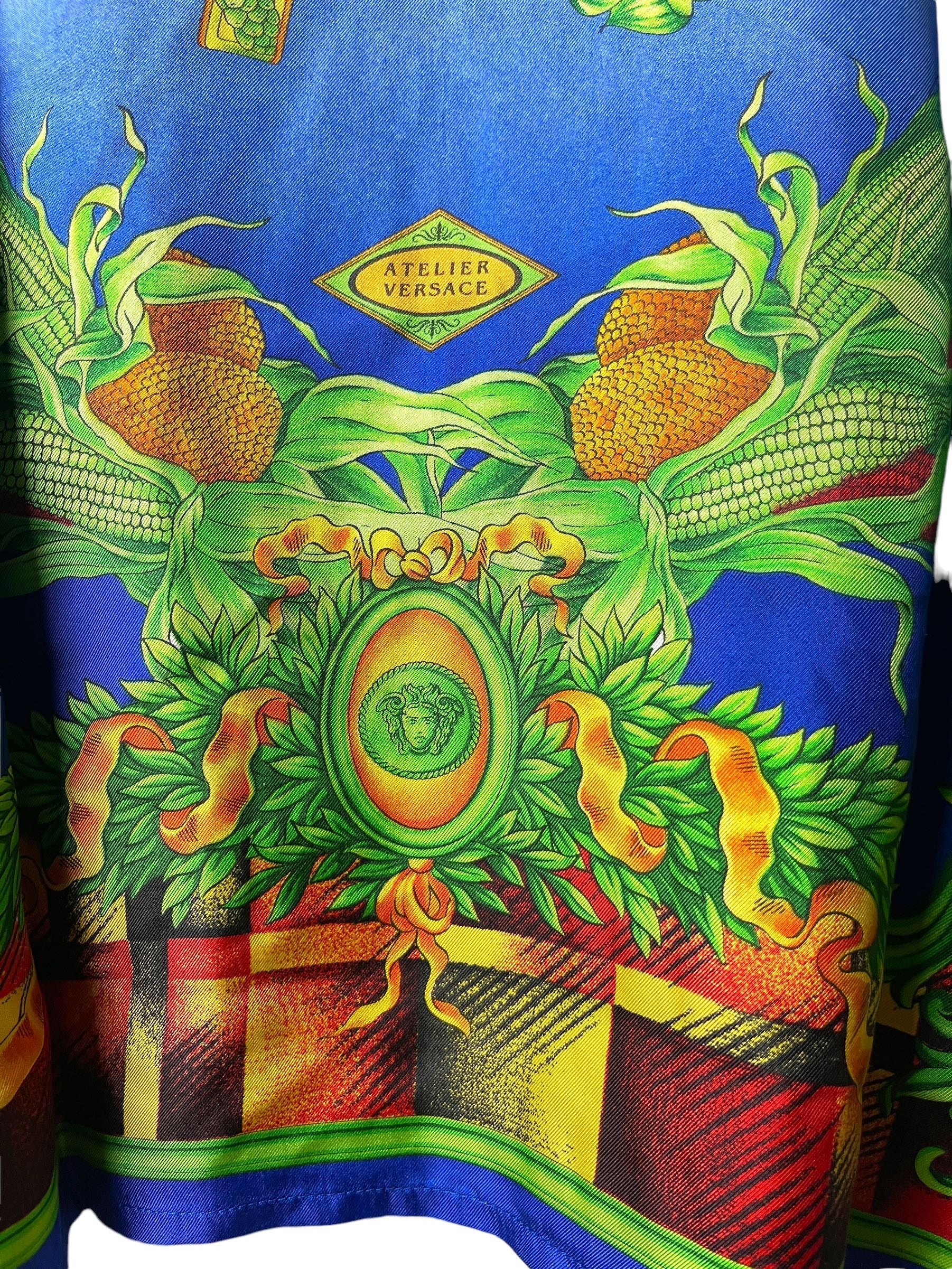 Gianni Versace camicia in seta vintage anni 90s con stampa autunno.