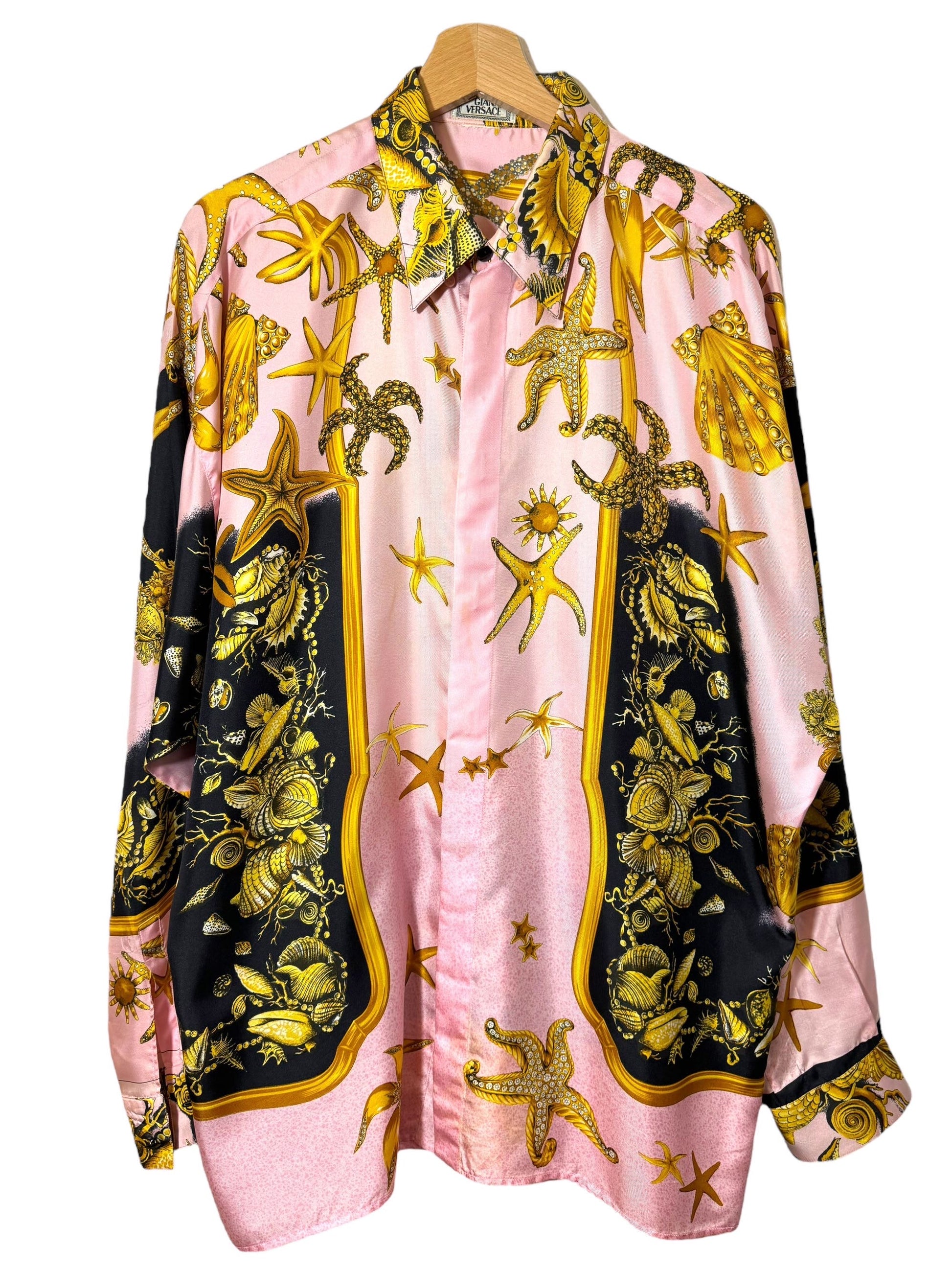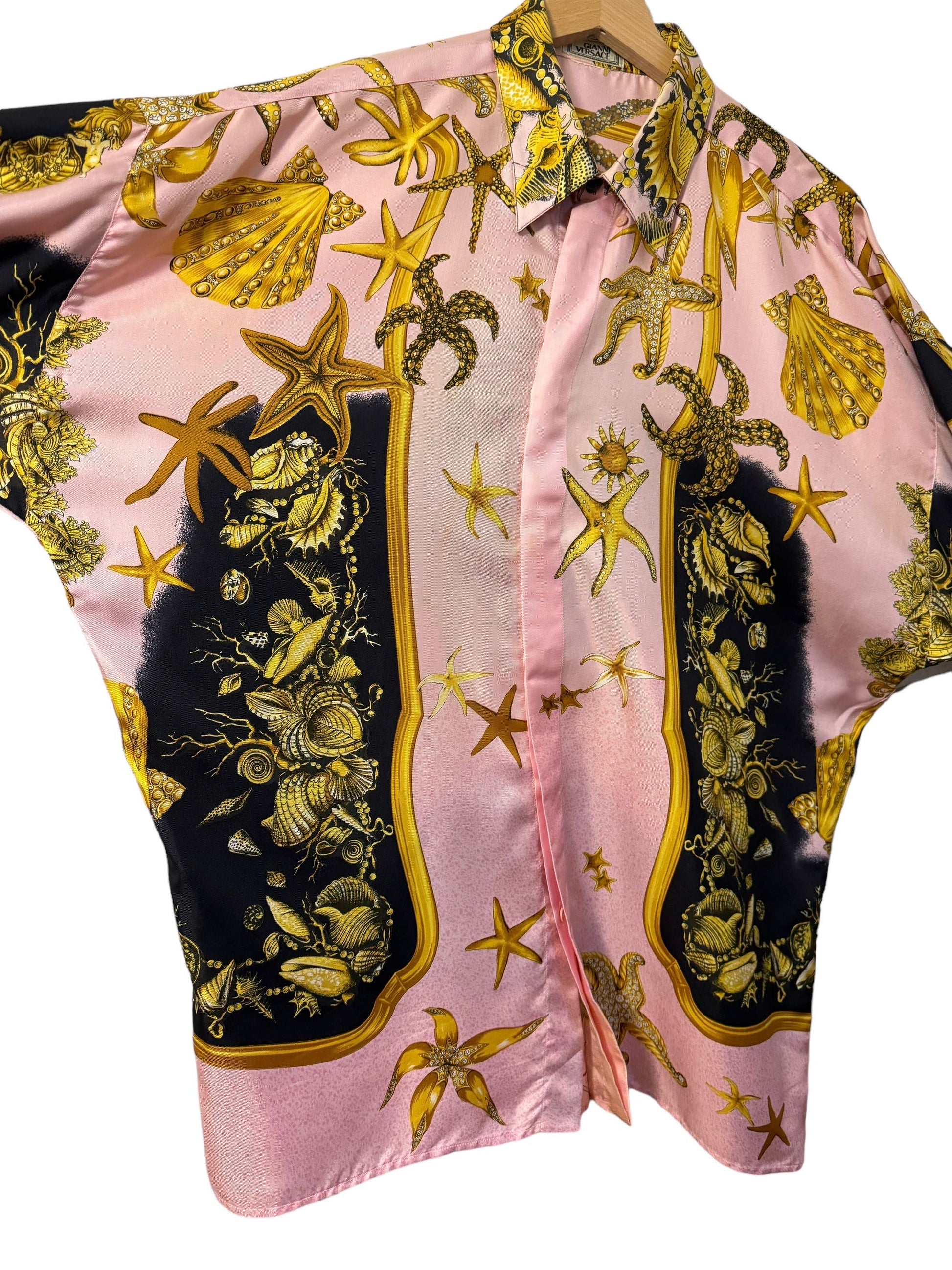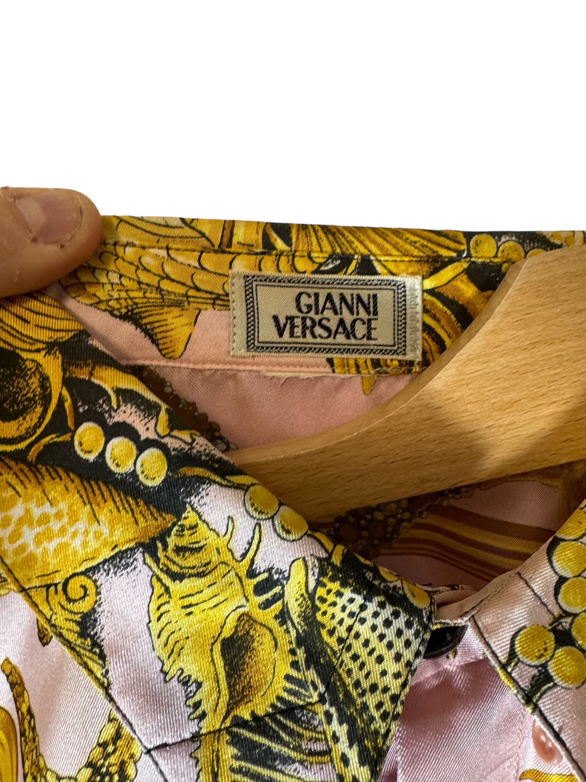 Gianni Versace camicia in seta anni 90s con una delle stampe più iconiche “tresor de la mer”. Taglia 50.