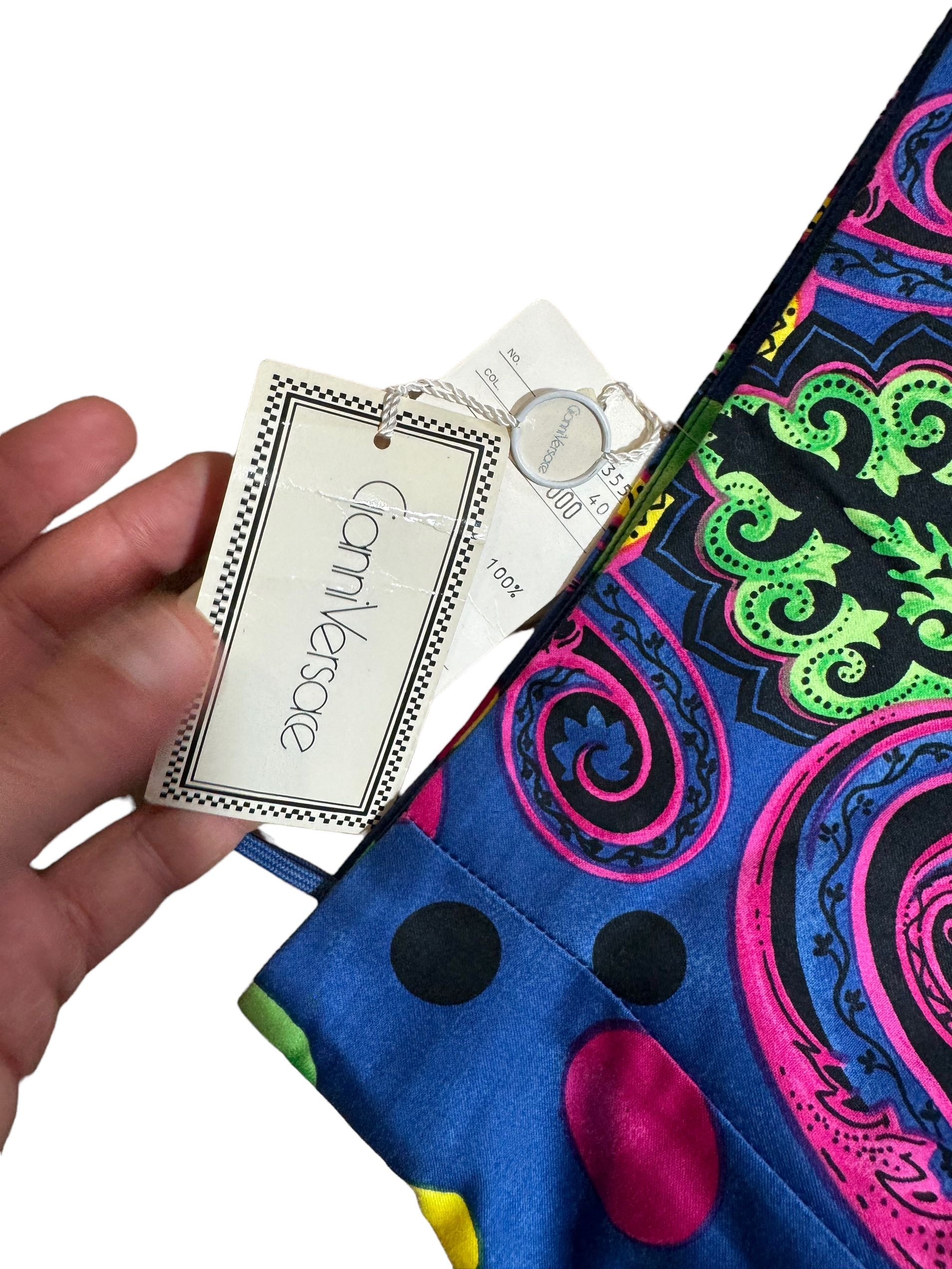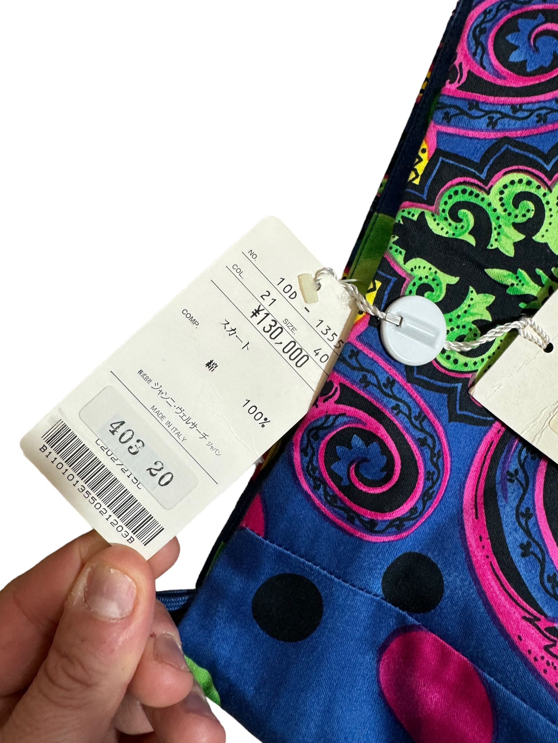 Gianni Versace gonna vintage anni 90s in cotone stampato e foderata. Nuova mai usata, con ancora cartellini di negozio.