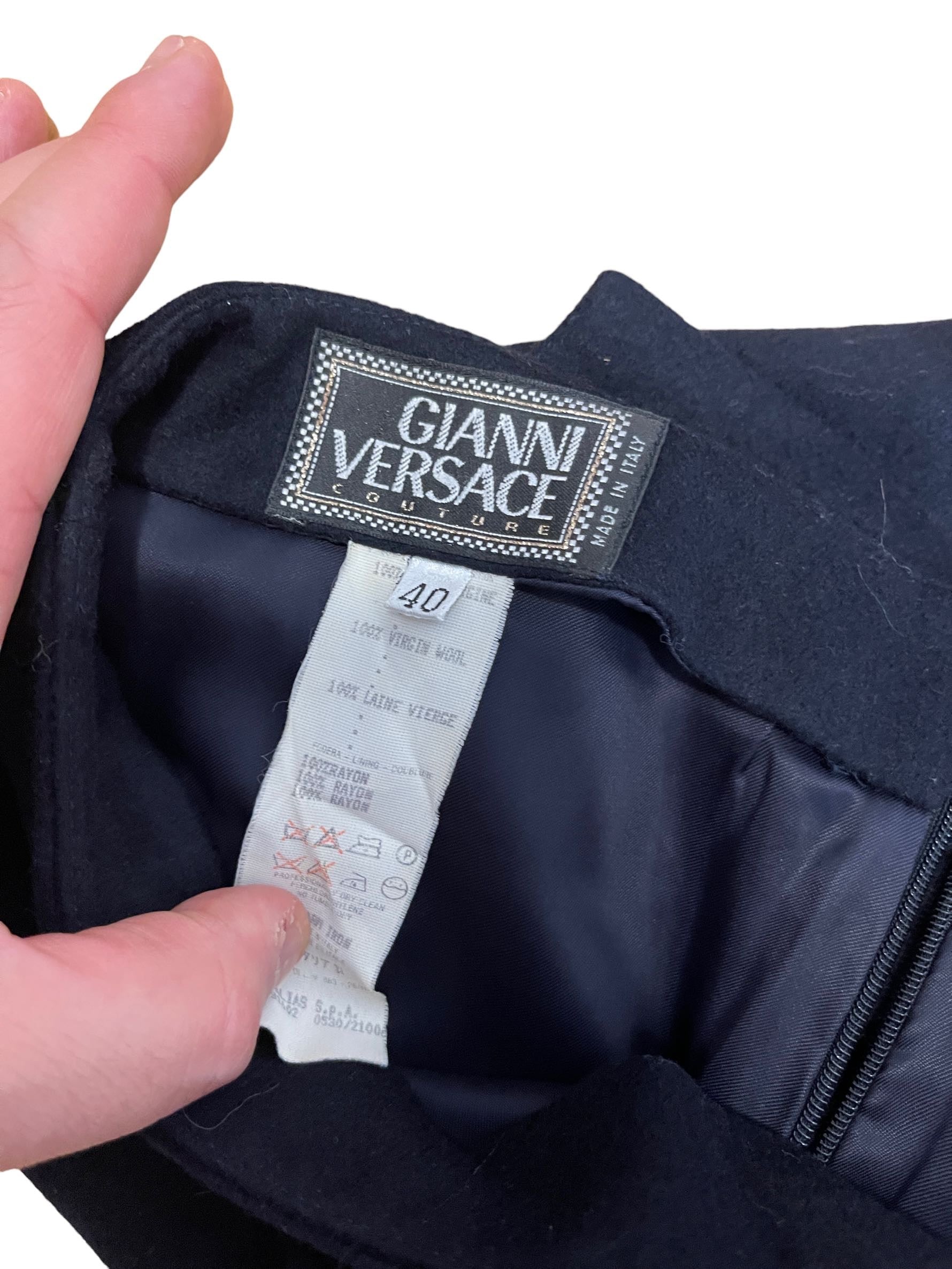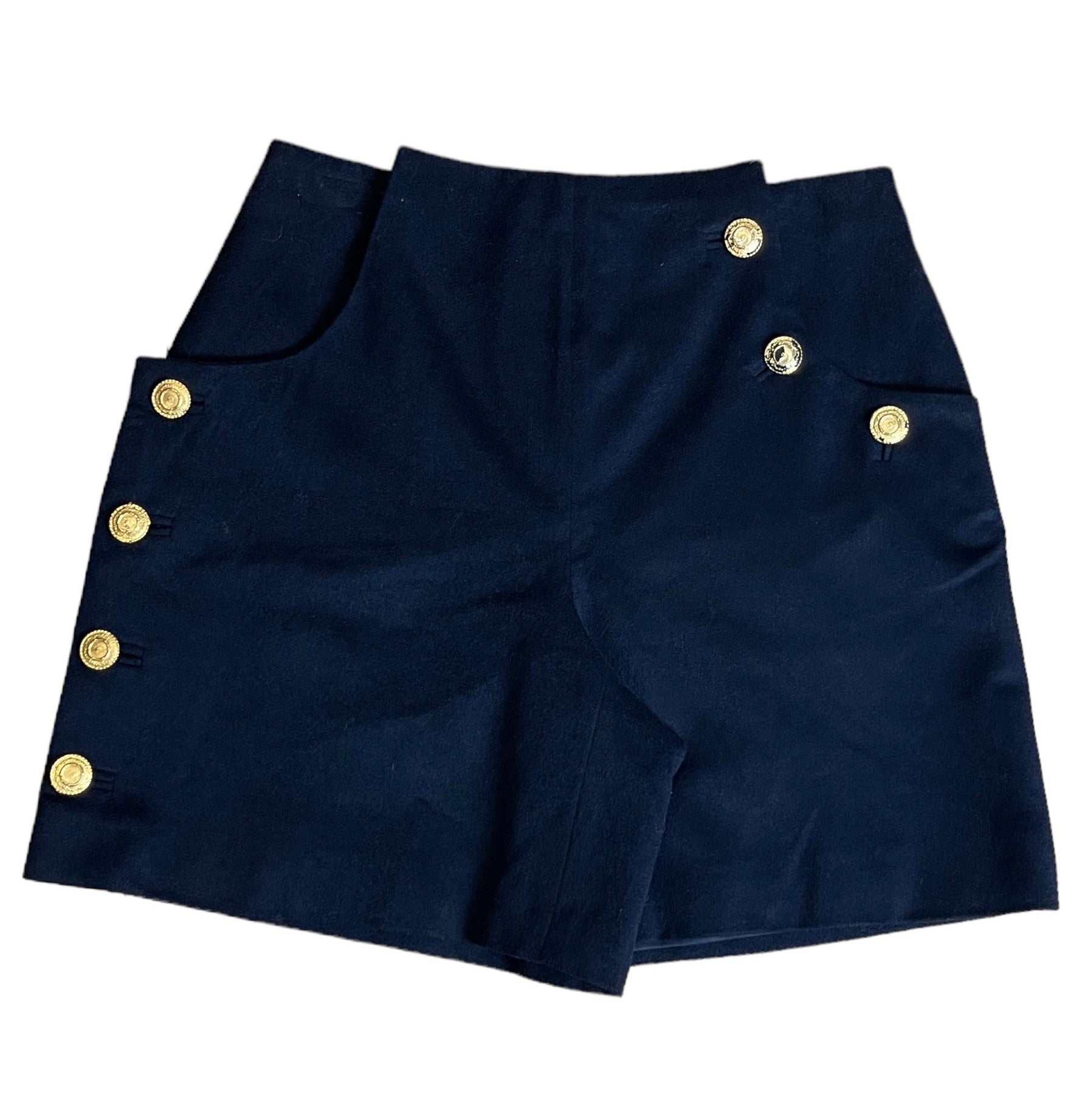 Gianni Versace short vintage, in lana blu scuro. Taglia 40.