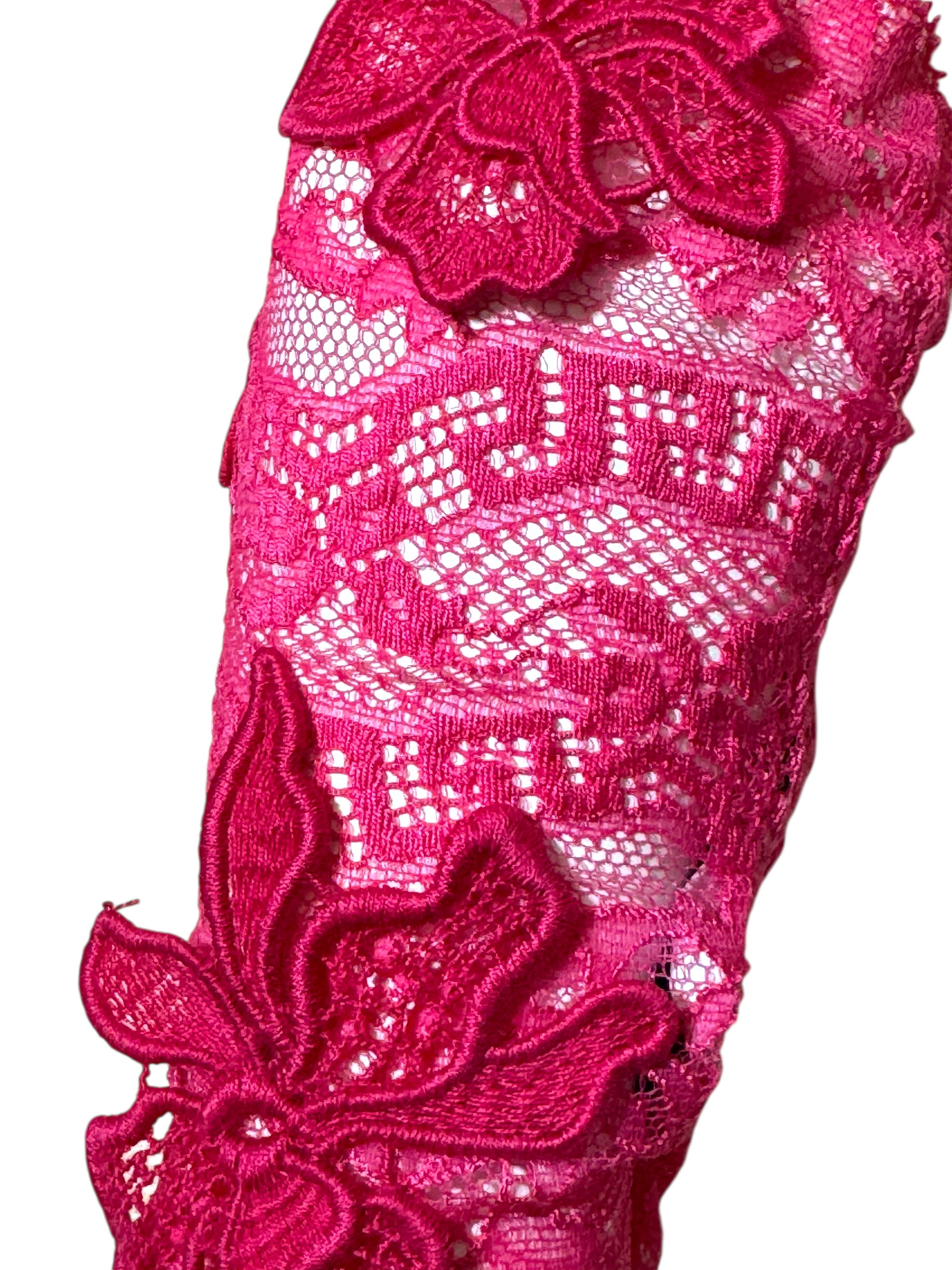 Guanti pizzo fucsia Versace – Ricamo floreale – Taglia 7 (S/M) Made in Italy
