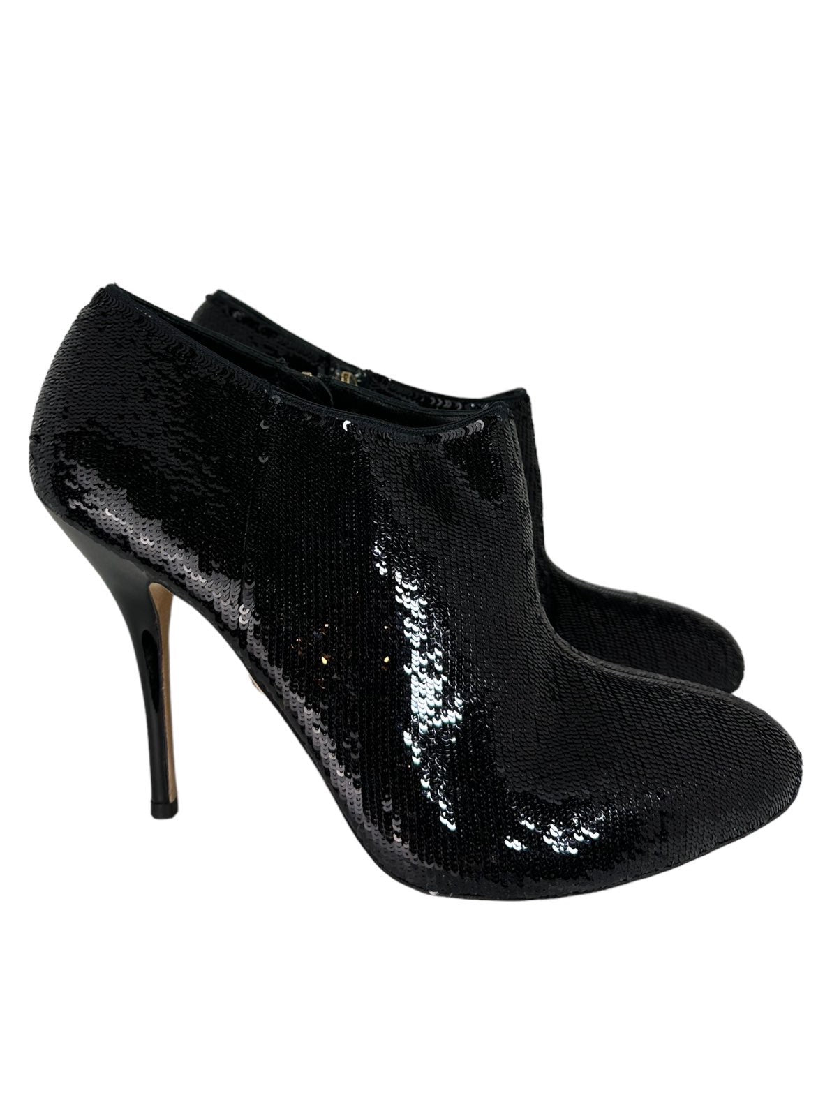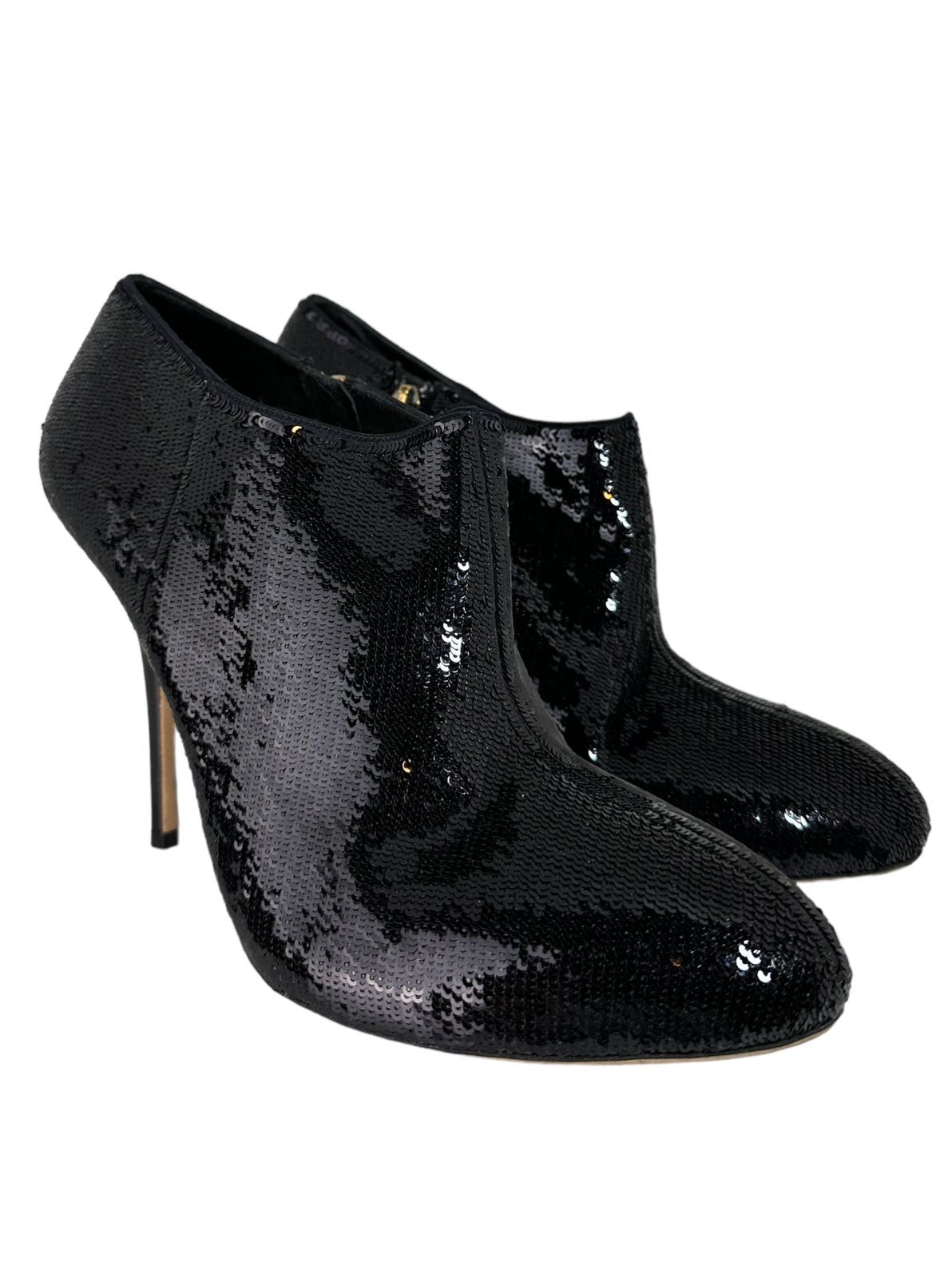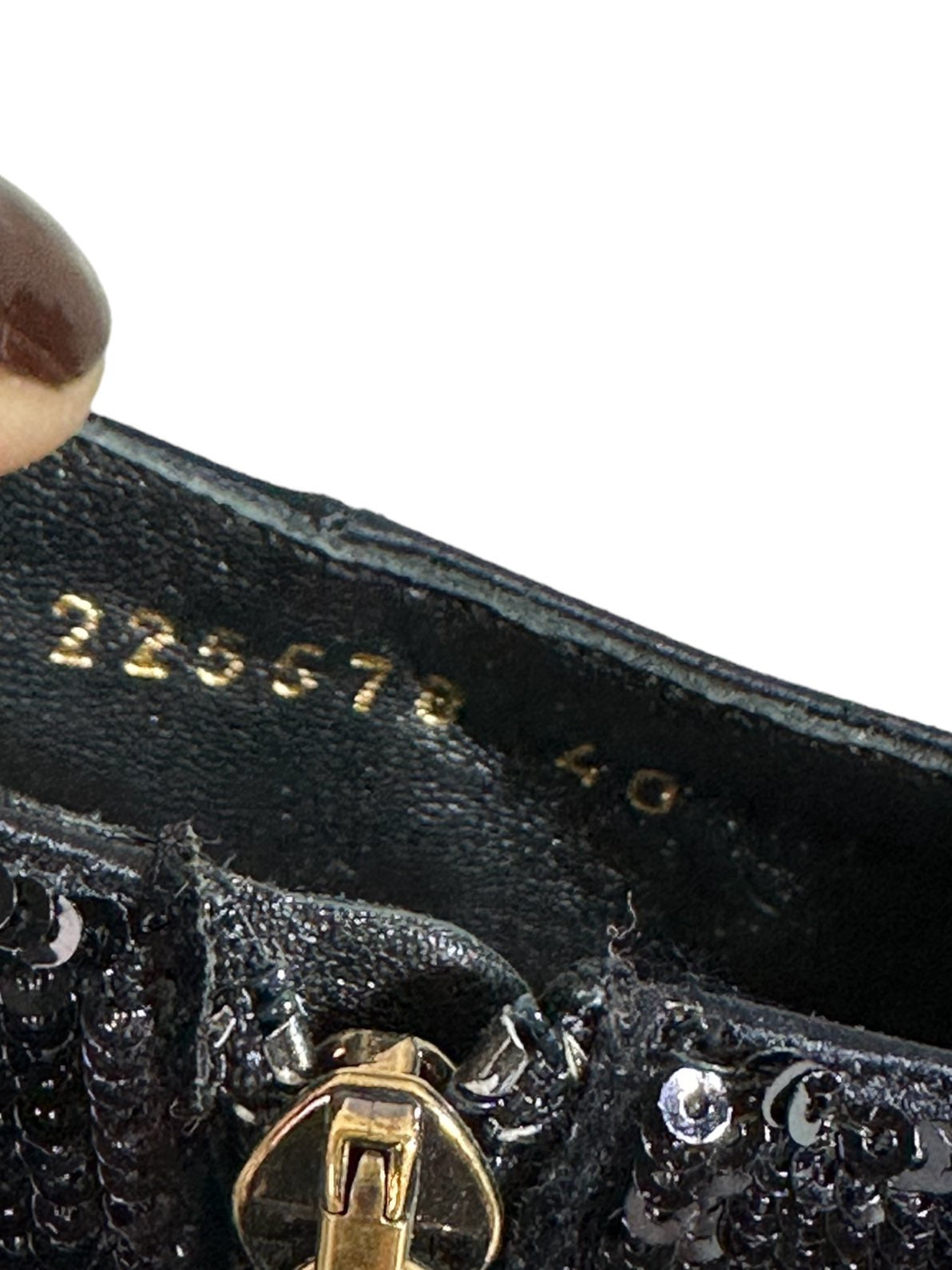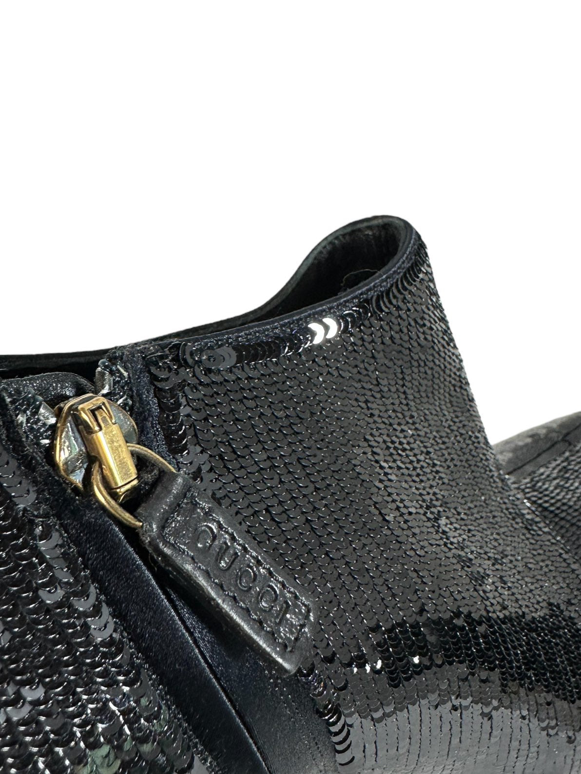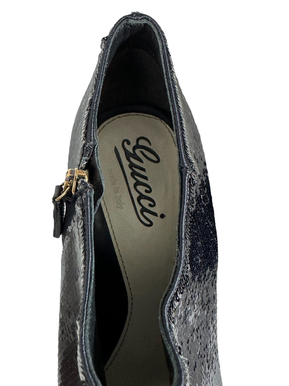 Gucci decolletè anni 2000 a punta tonda con paillettes nere e tacco a spillo. Chiusura con zip laterale. N. 40 Collezione Tom Ford