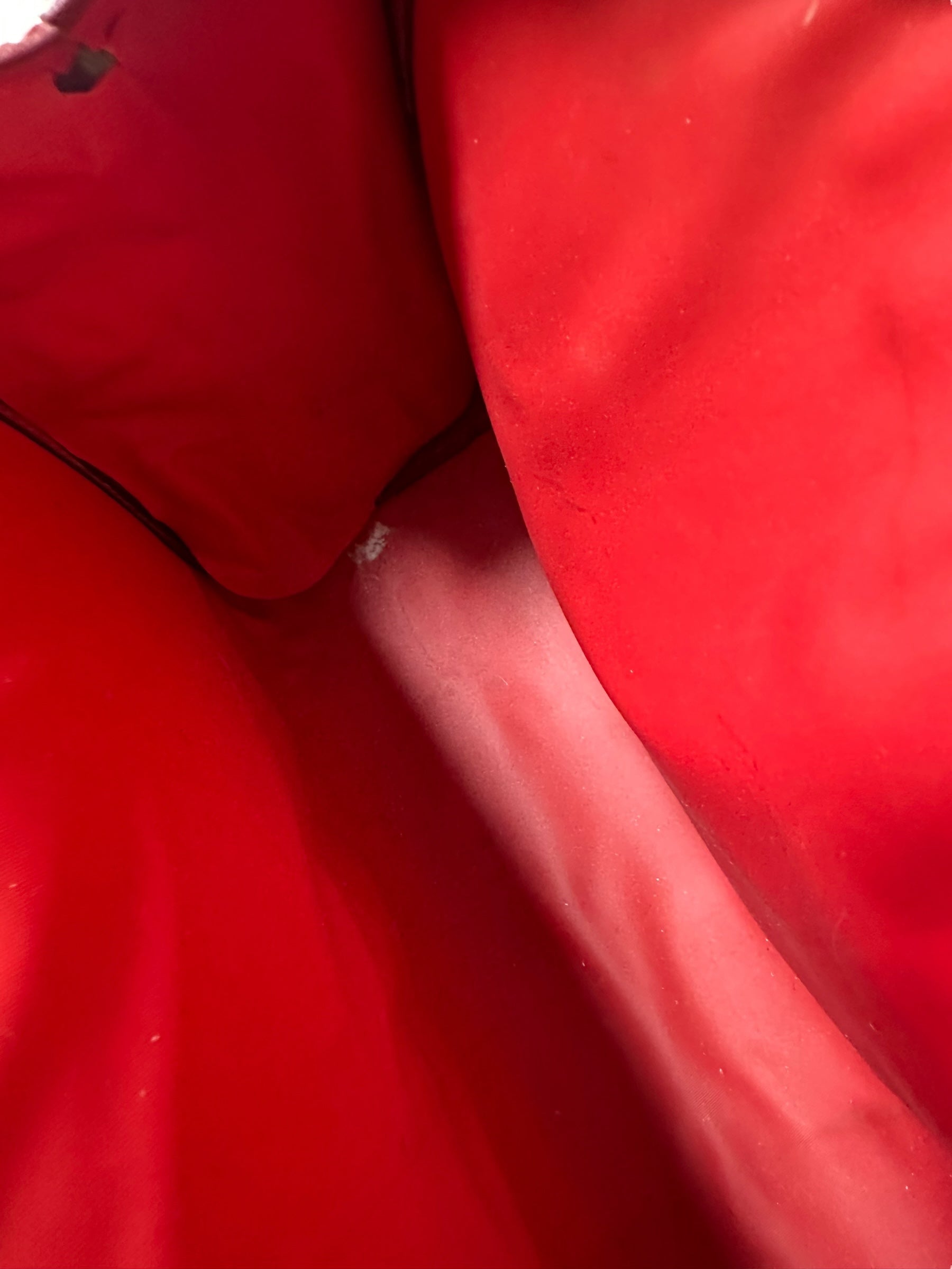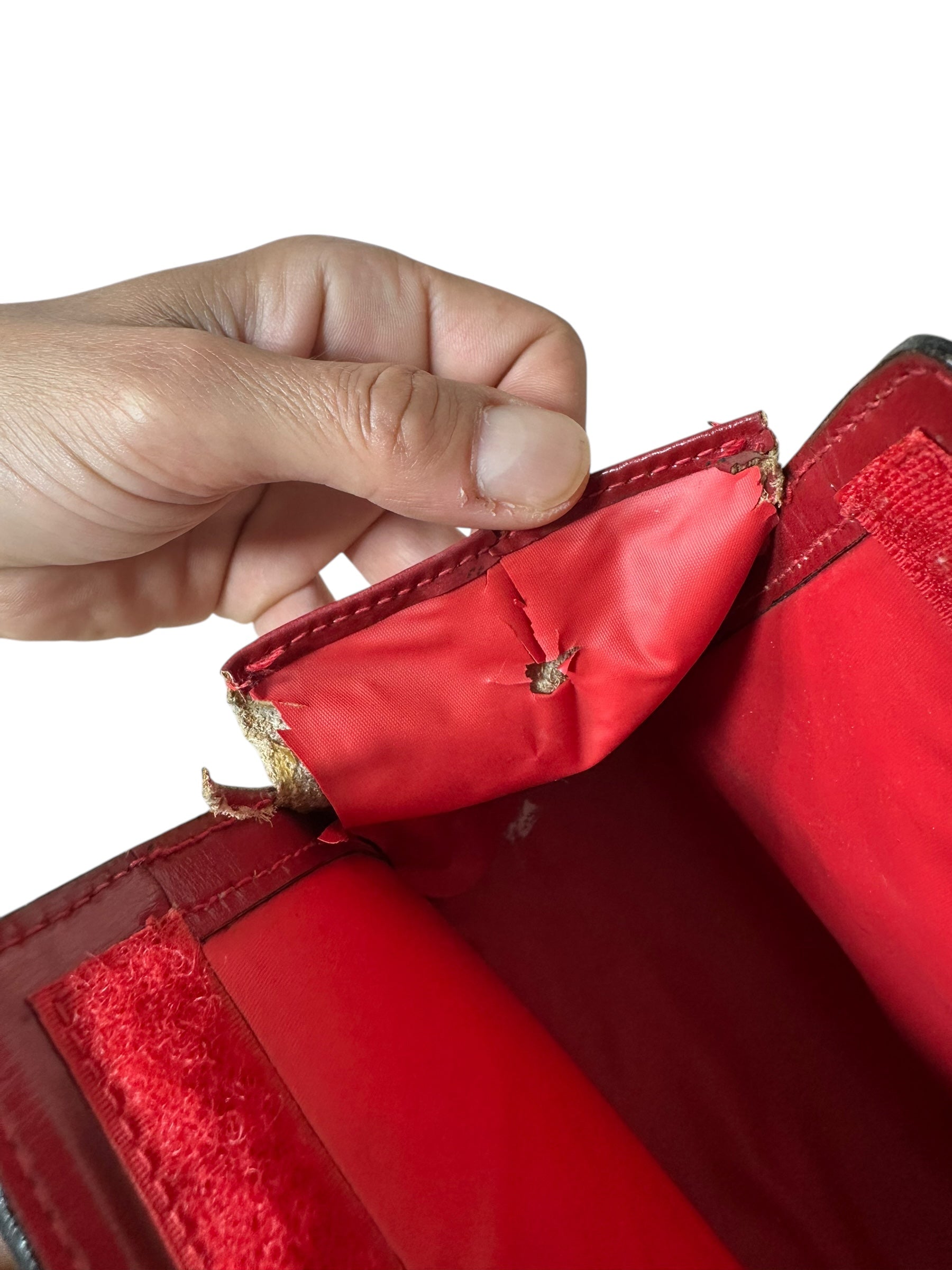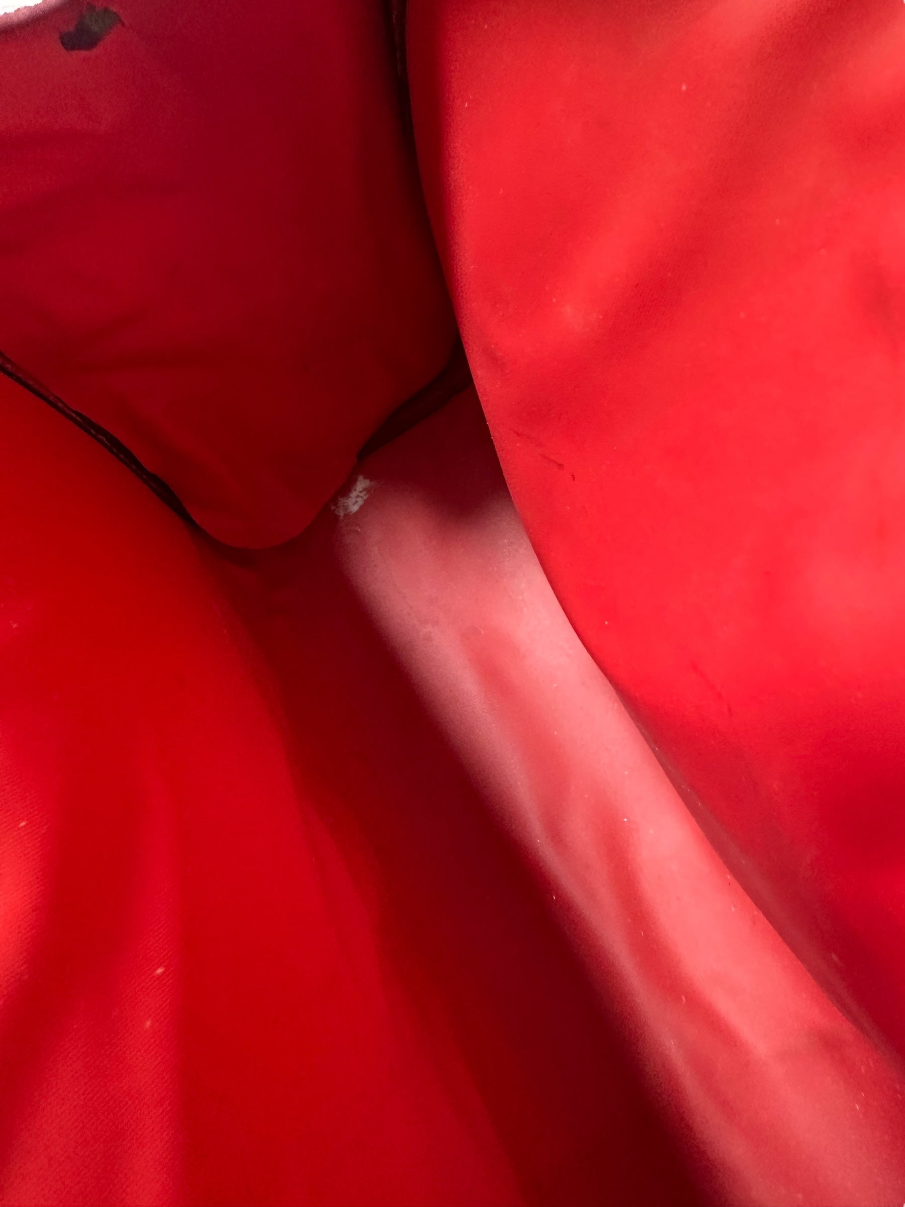 • Interno: presenti strappi marcati nella fodera e lungo i profili laterali interni (visibili in foto). L’interno, tuttavia, risulta potenzialmente riparabile da un professionista.
