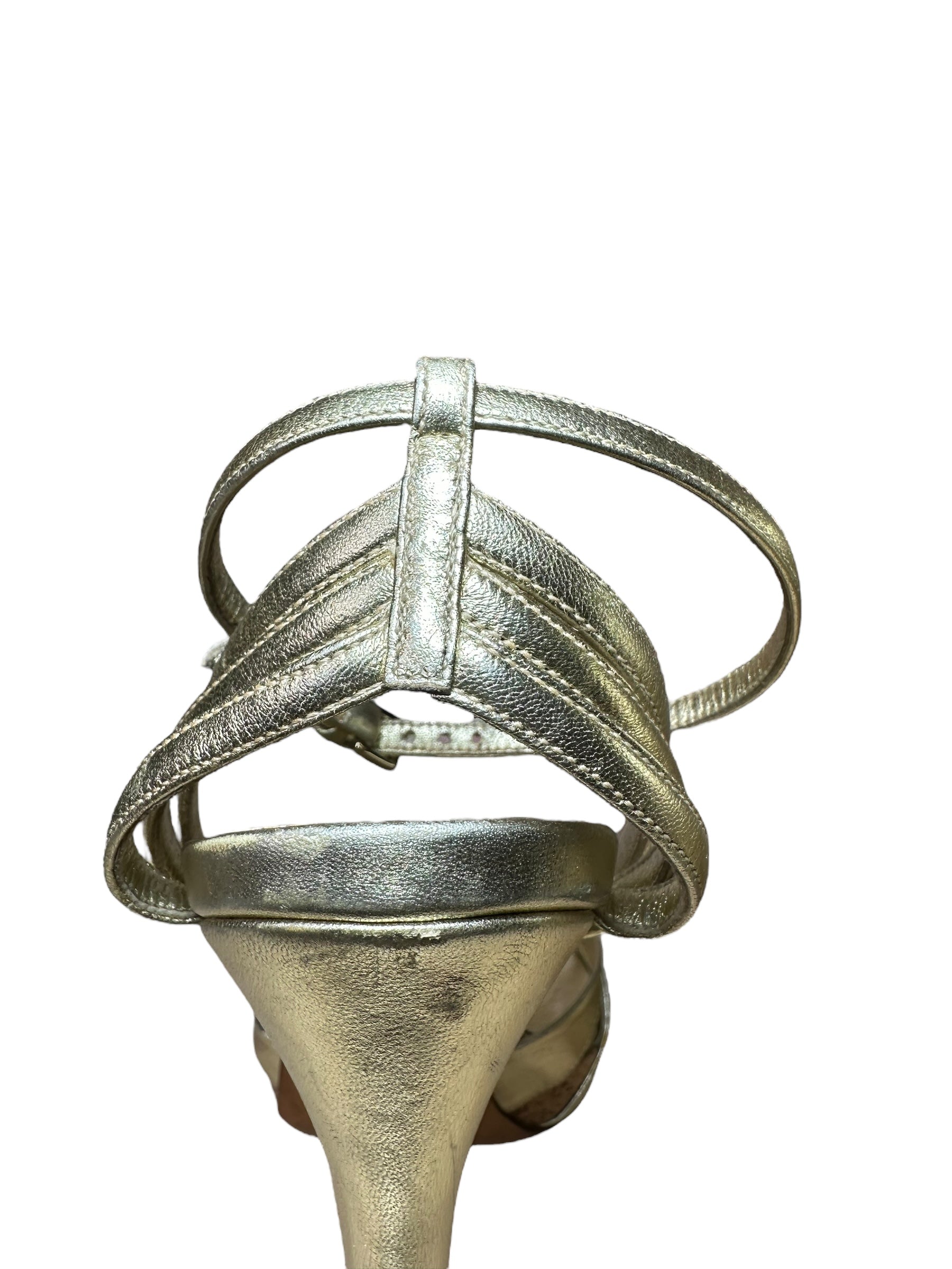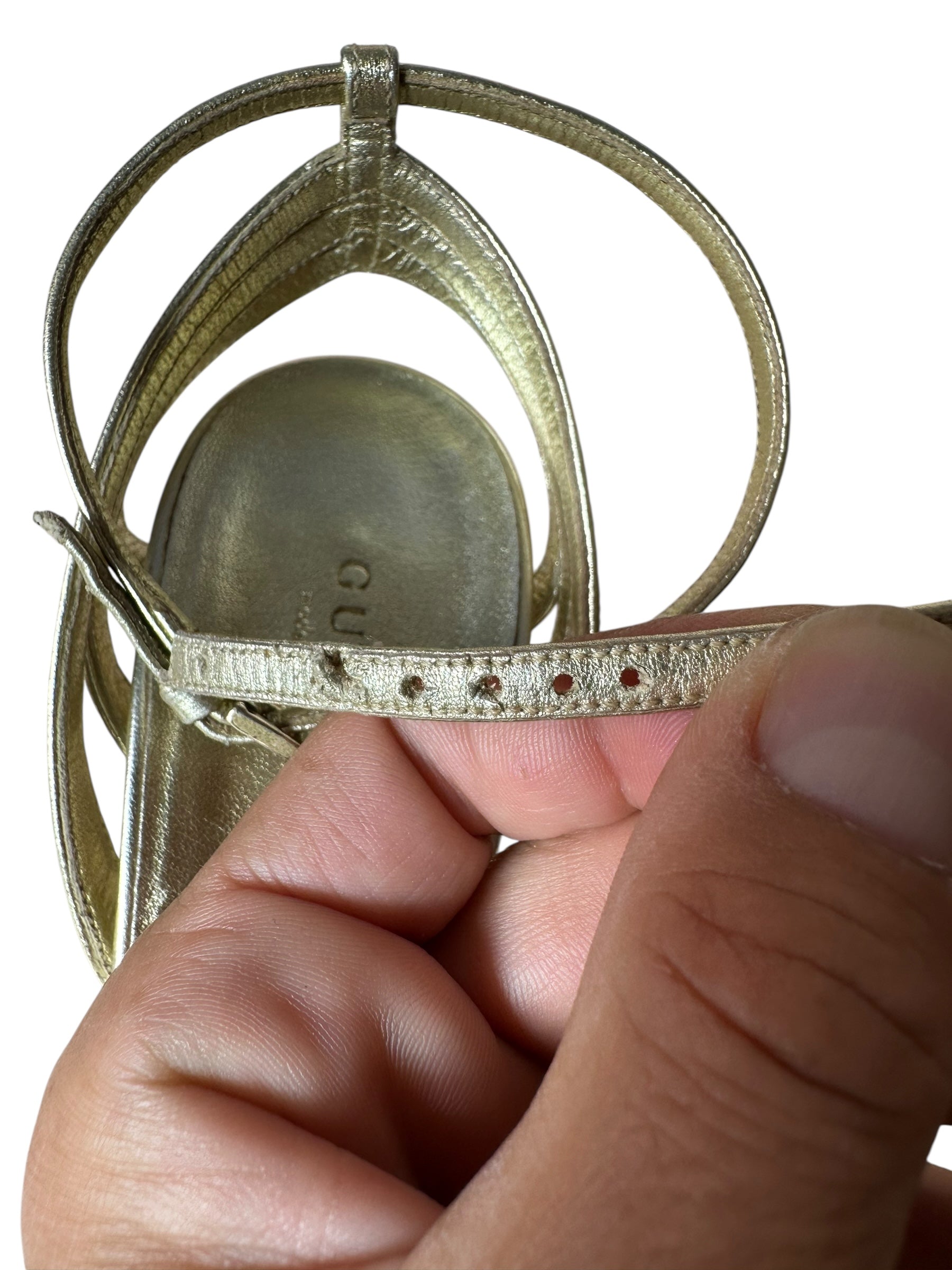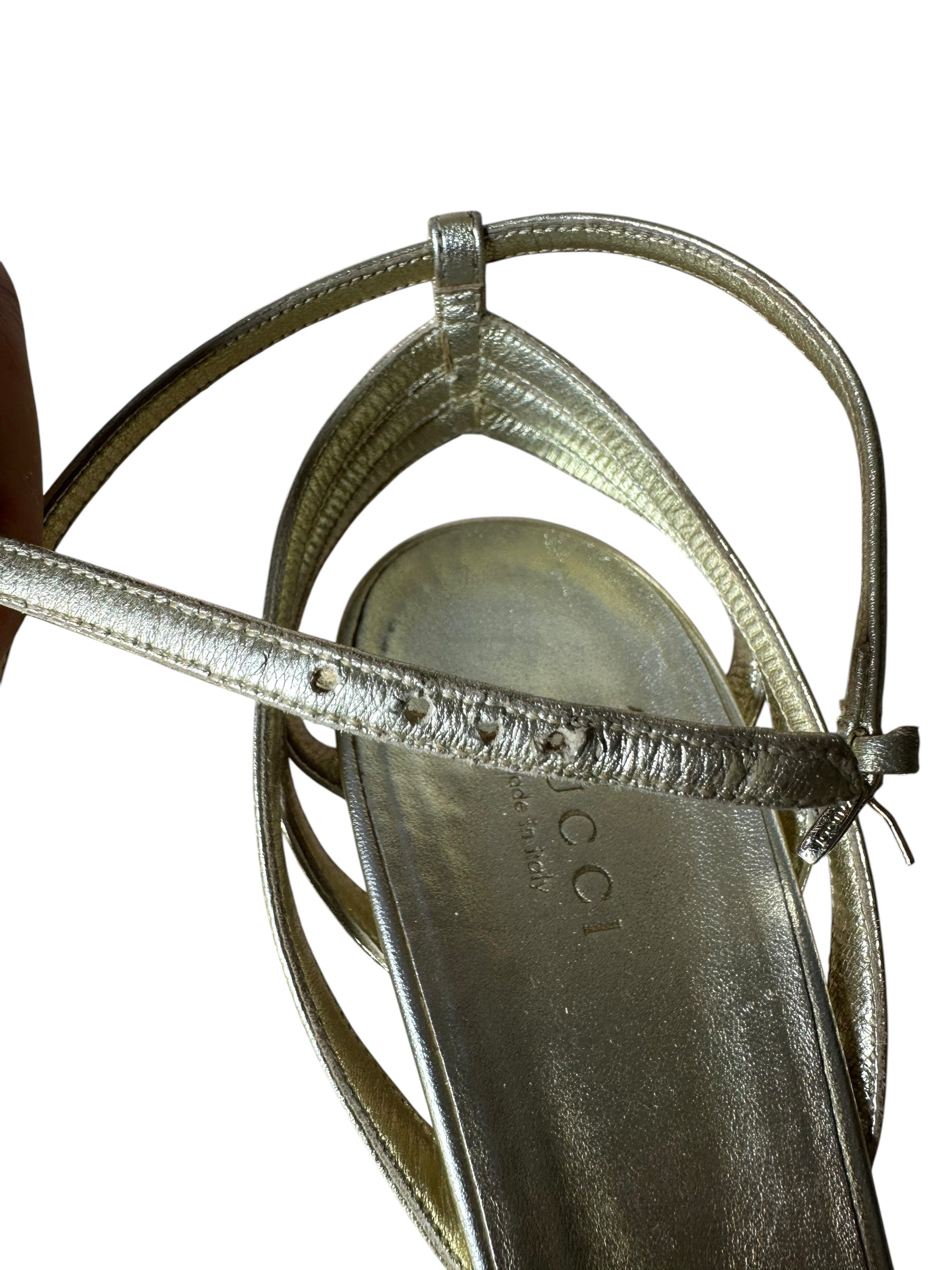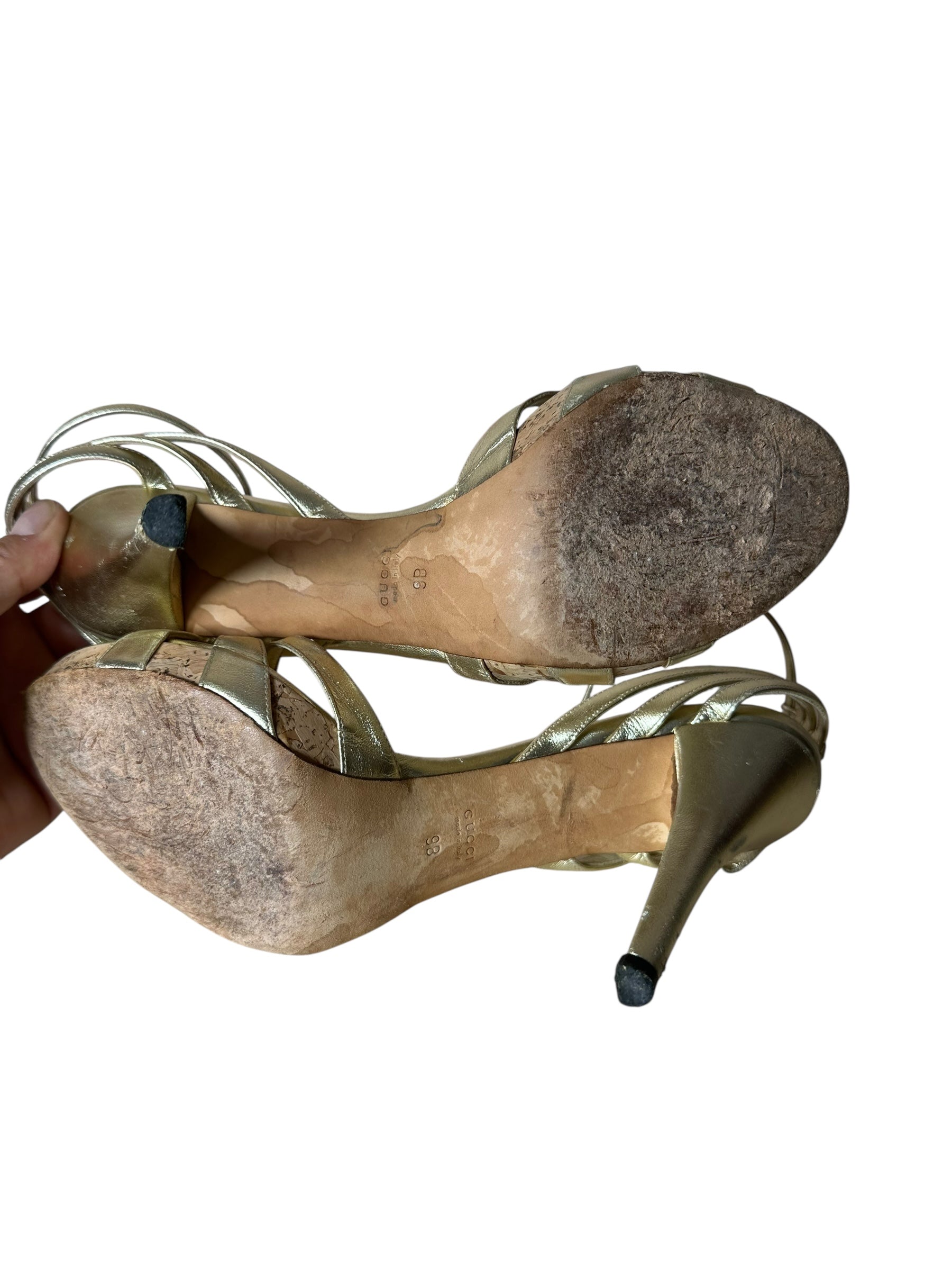 Gucci – Sandali vintage in pelle dorata con tacco a spillo e plateau in sughero