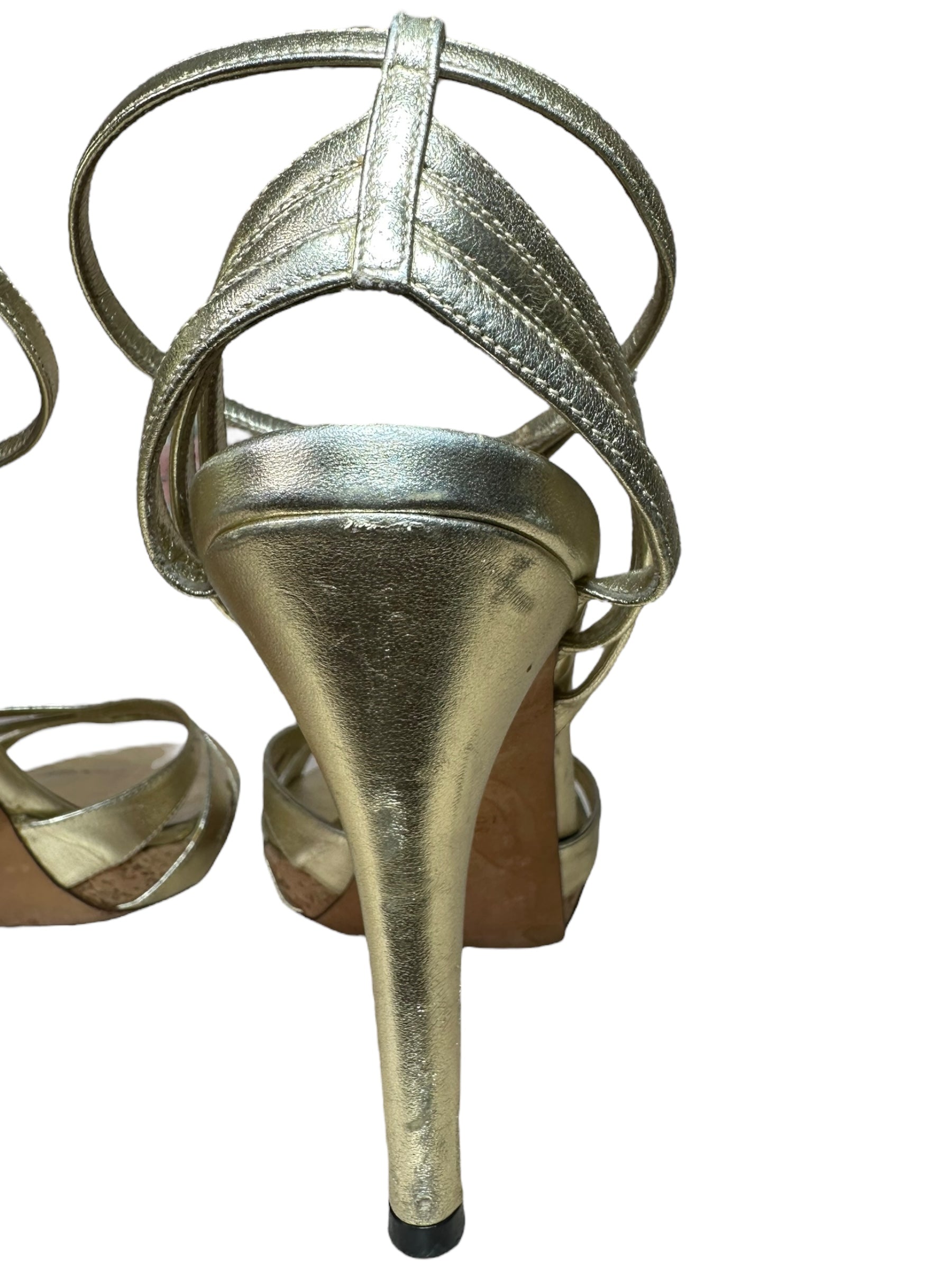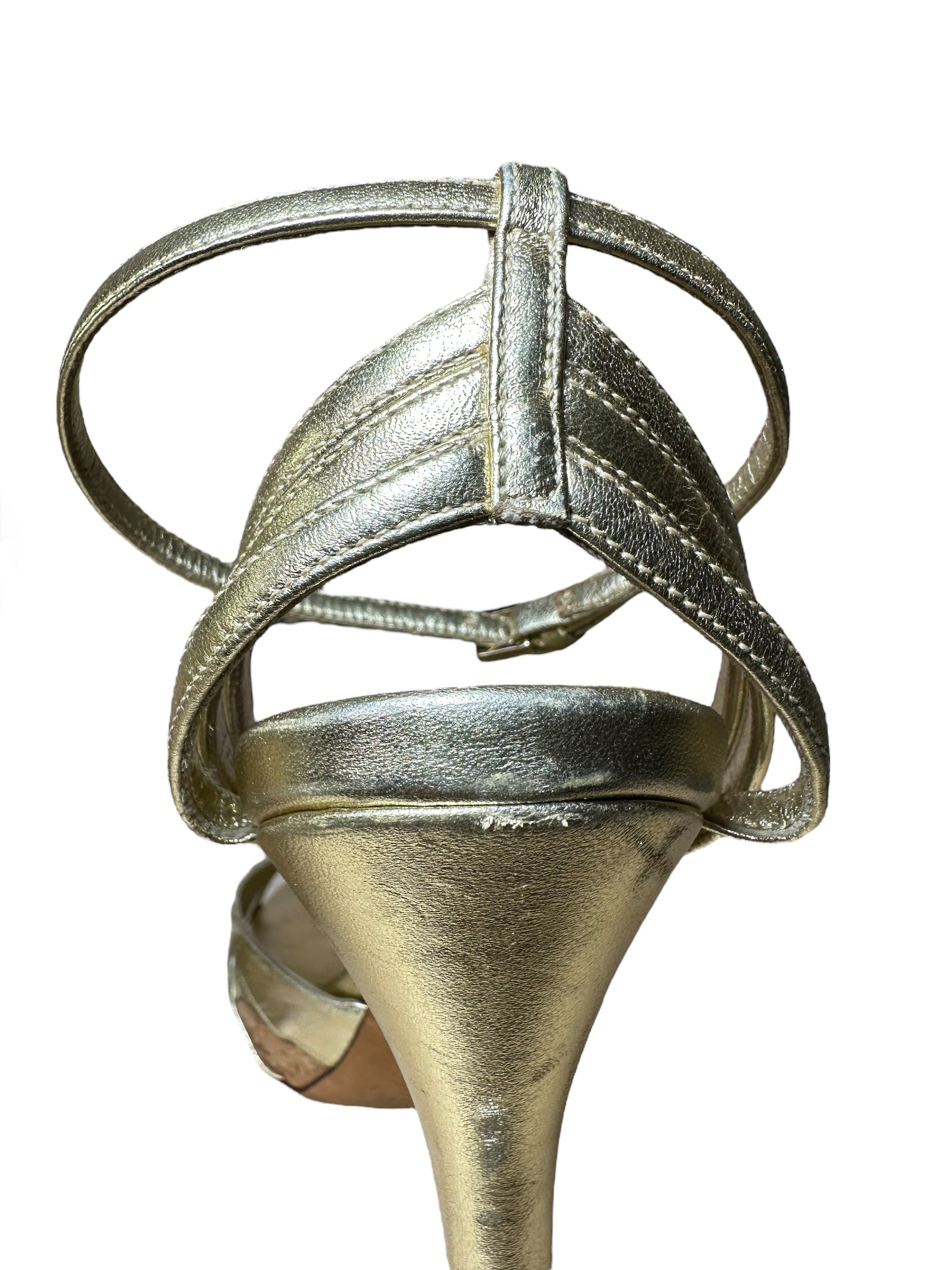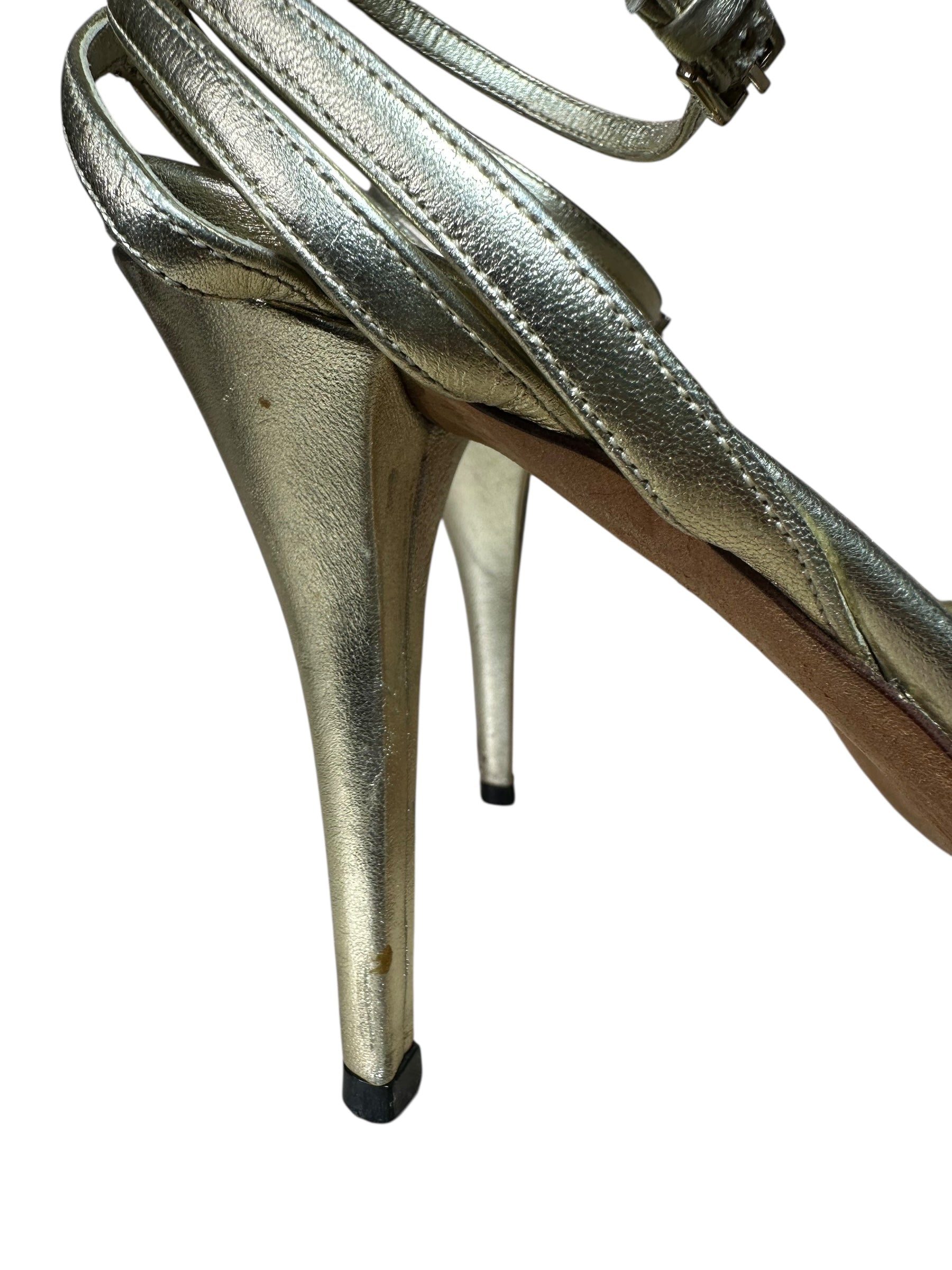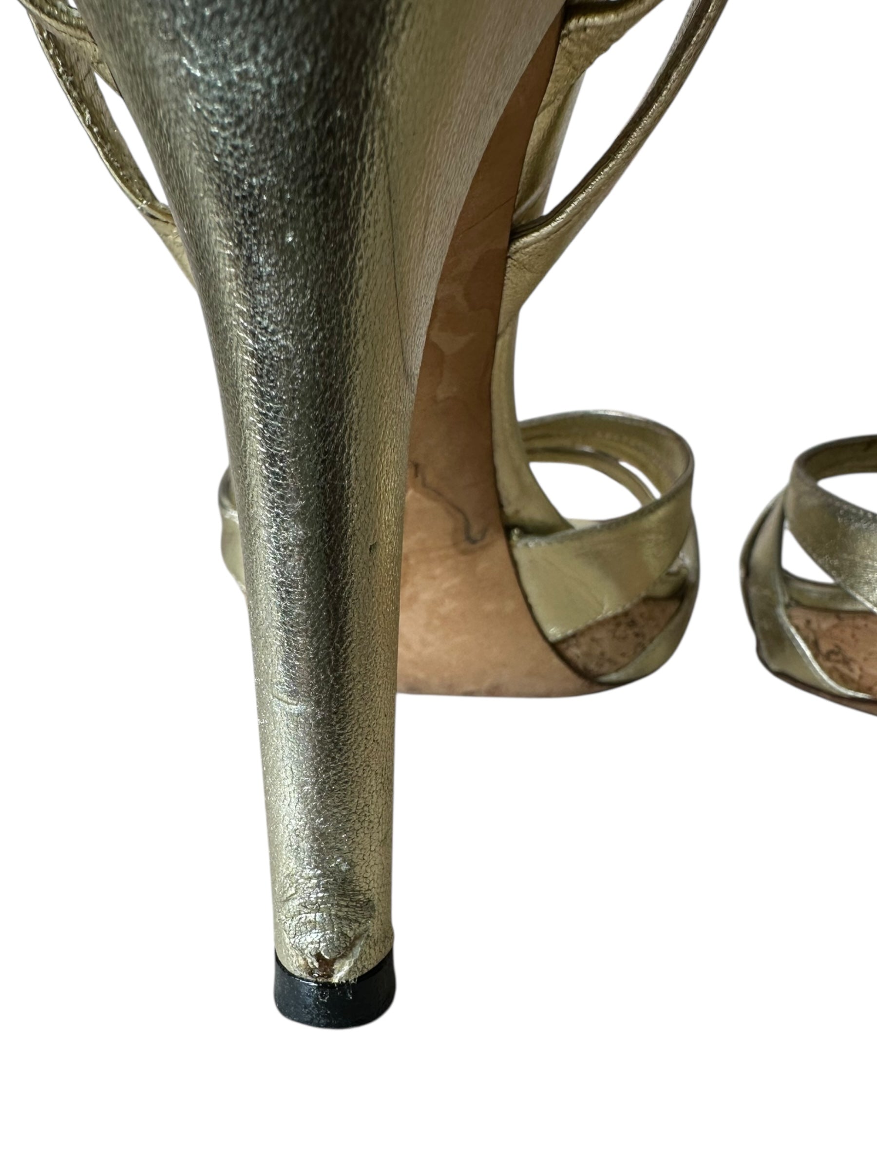 Gucci – Sandali vintage in pelle dorata con tacco a spillo e plateau in sughero