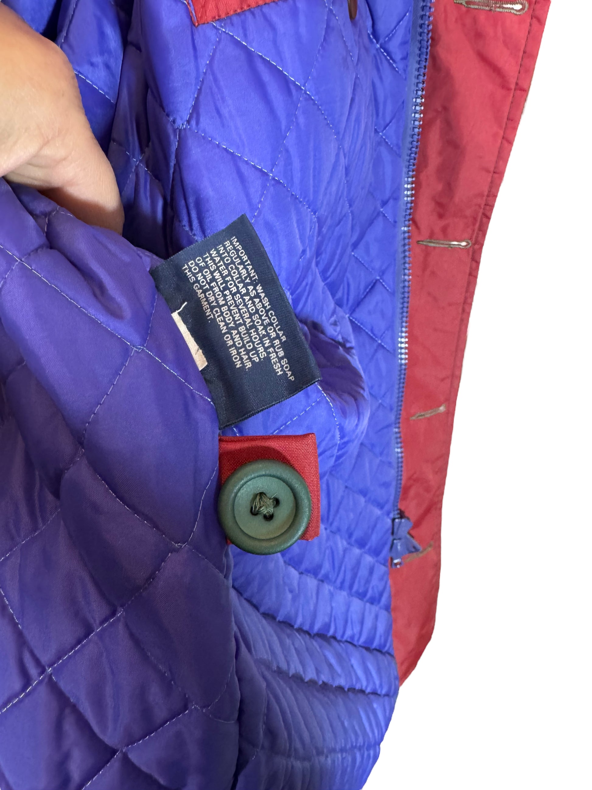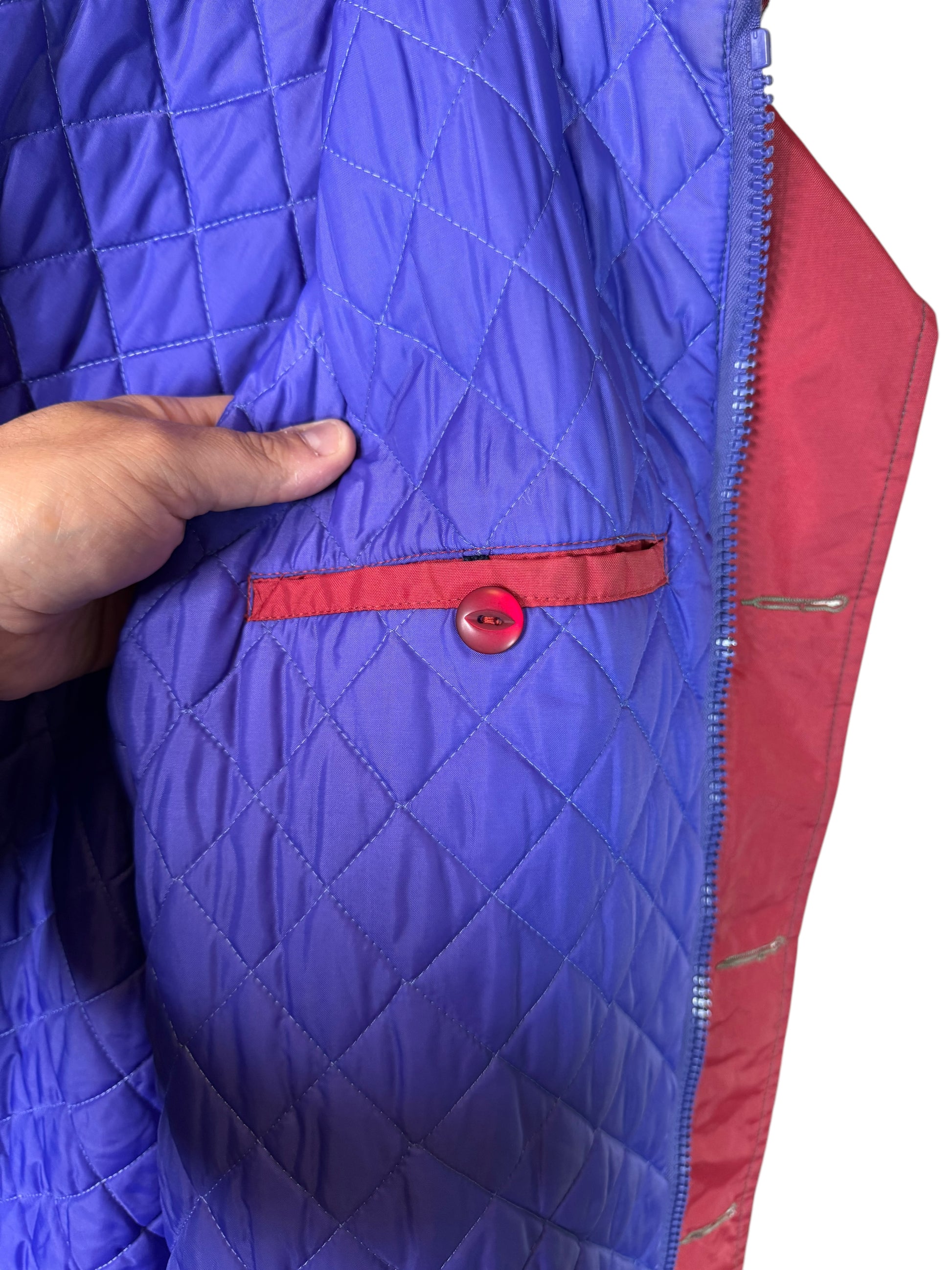 Capo iconico da vela o tempo libero, con interno trapuntato viola e dettagli ricercati.