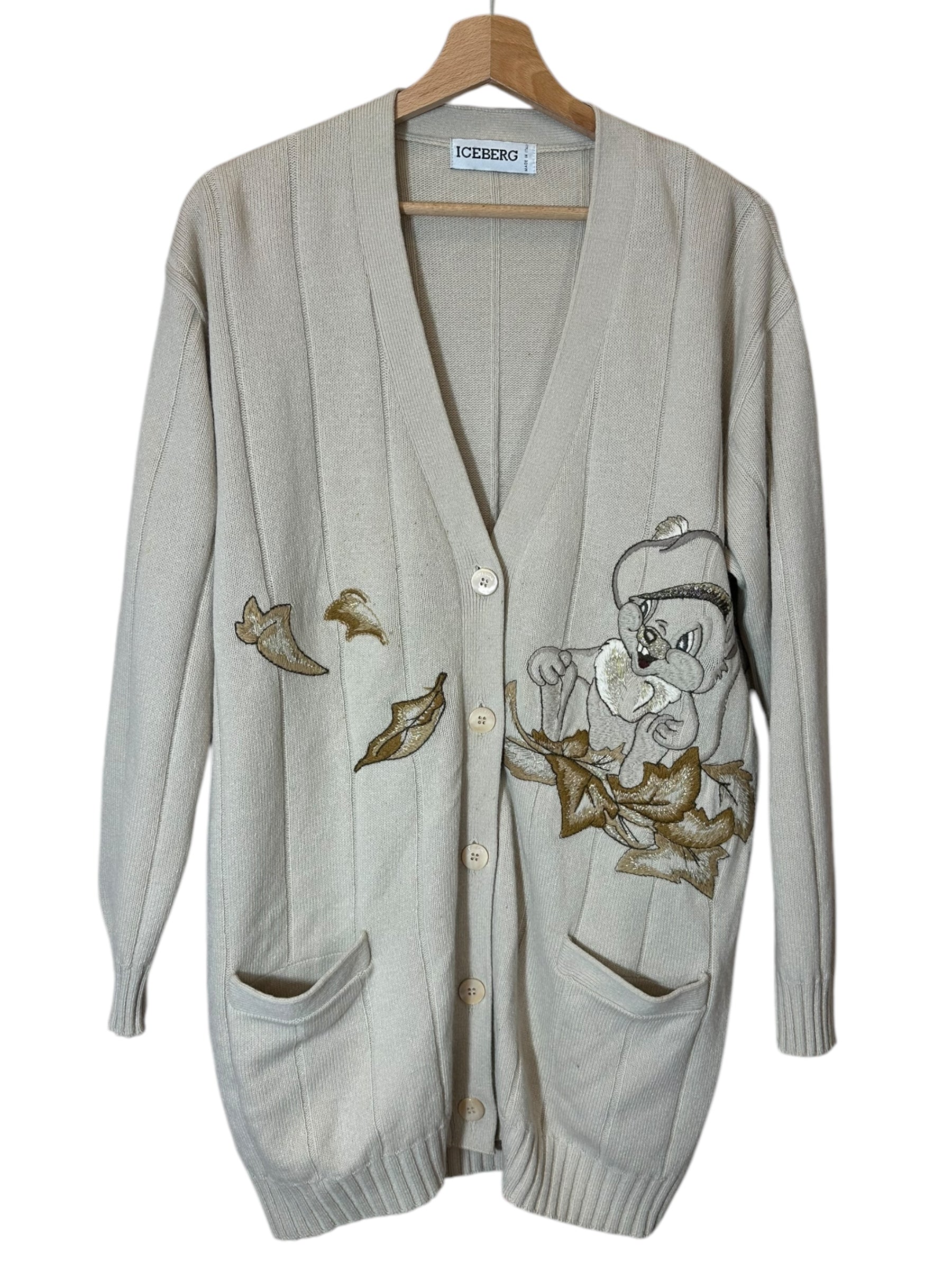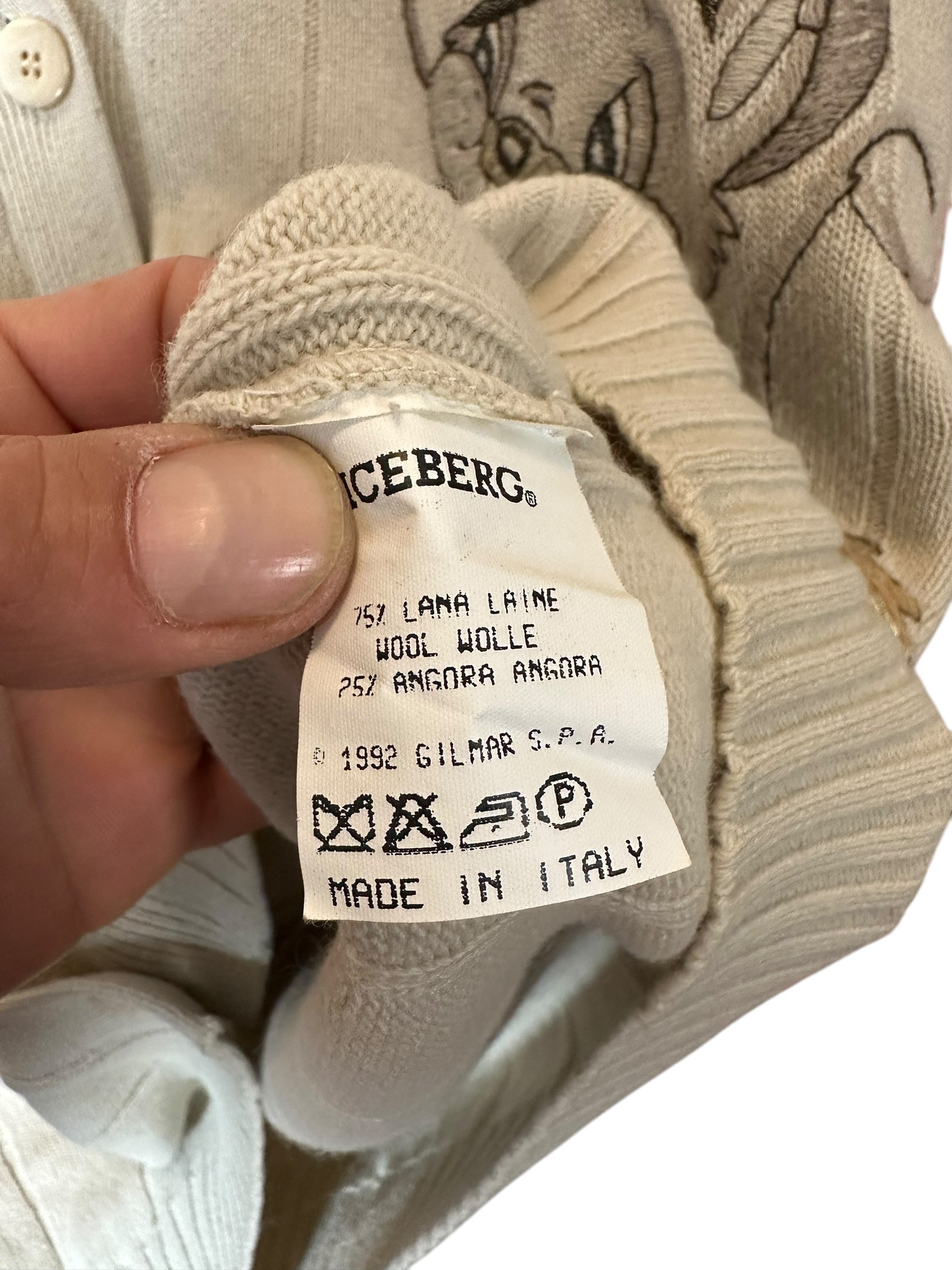Cardigan vintage Iceberg 1992 – Made in Italy – Lana e Angora – Ricamo Cartoon