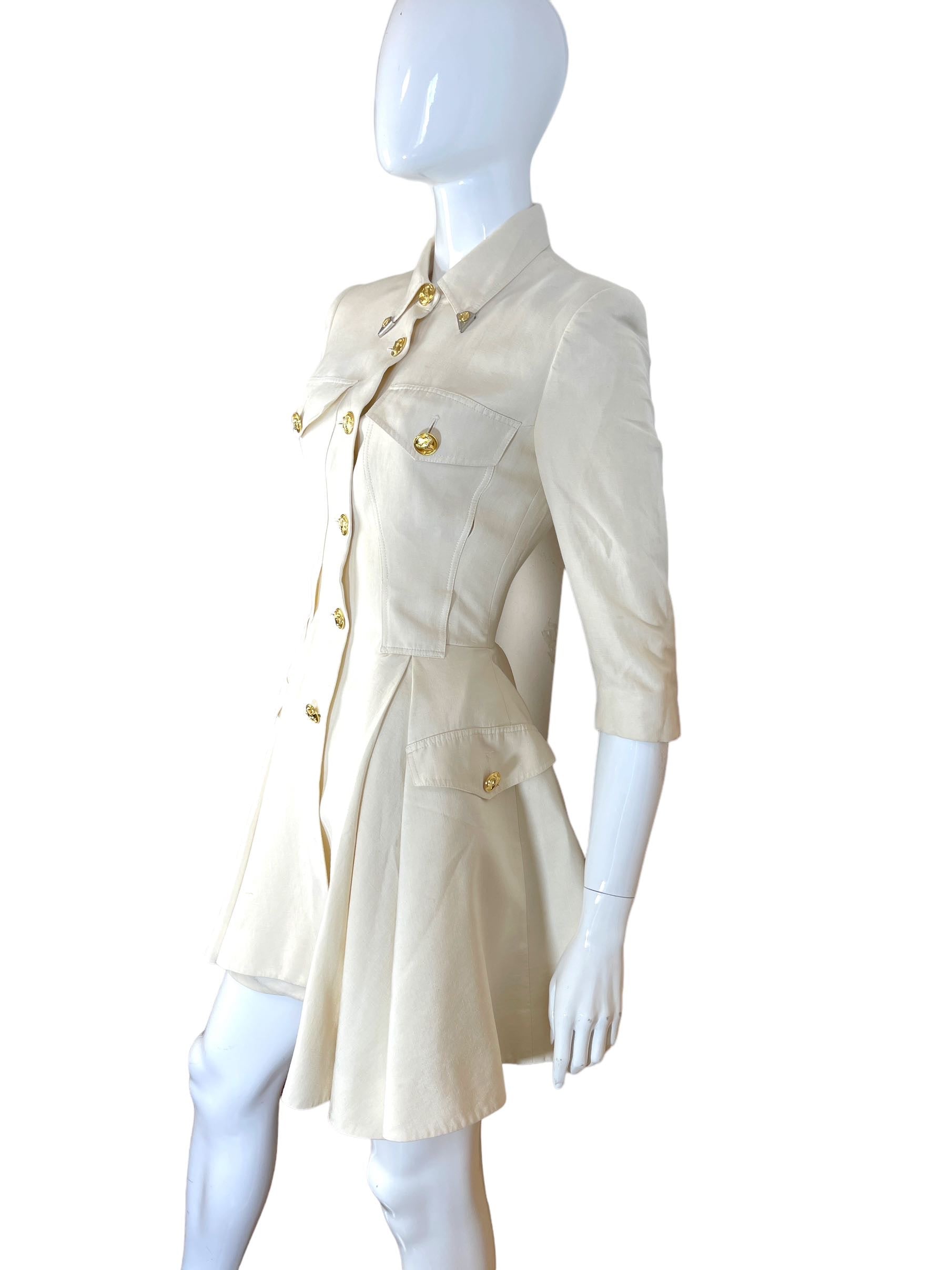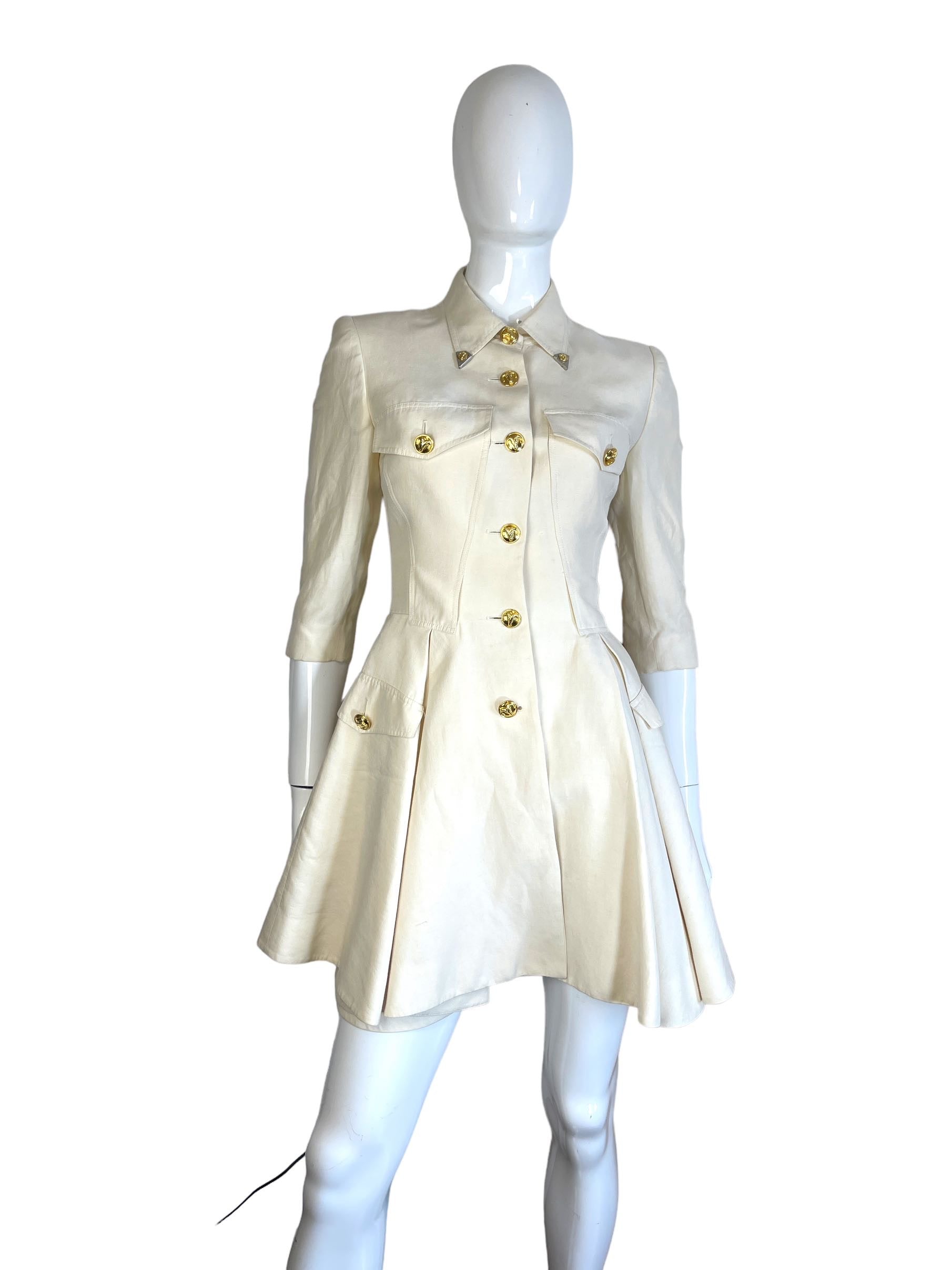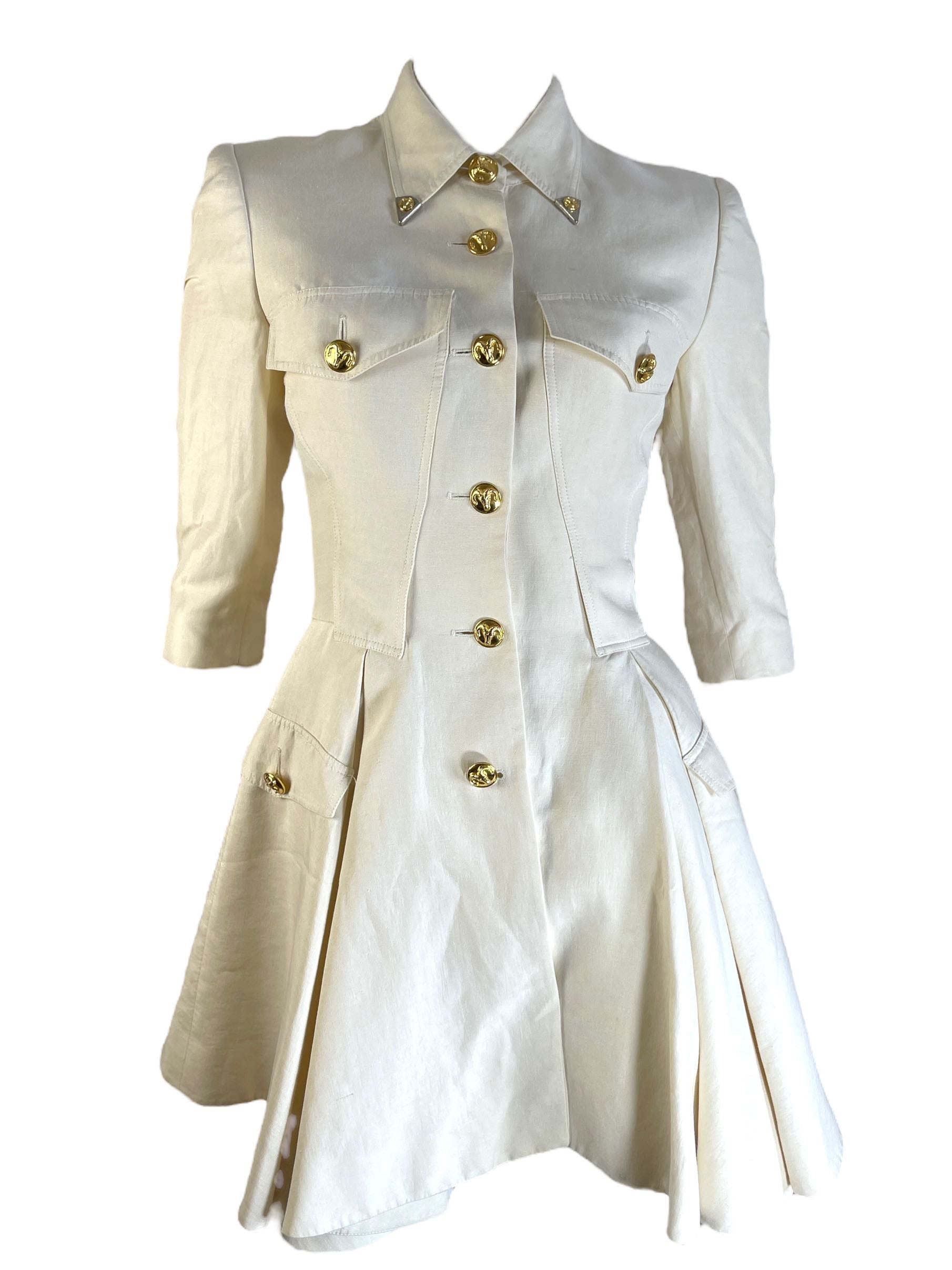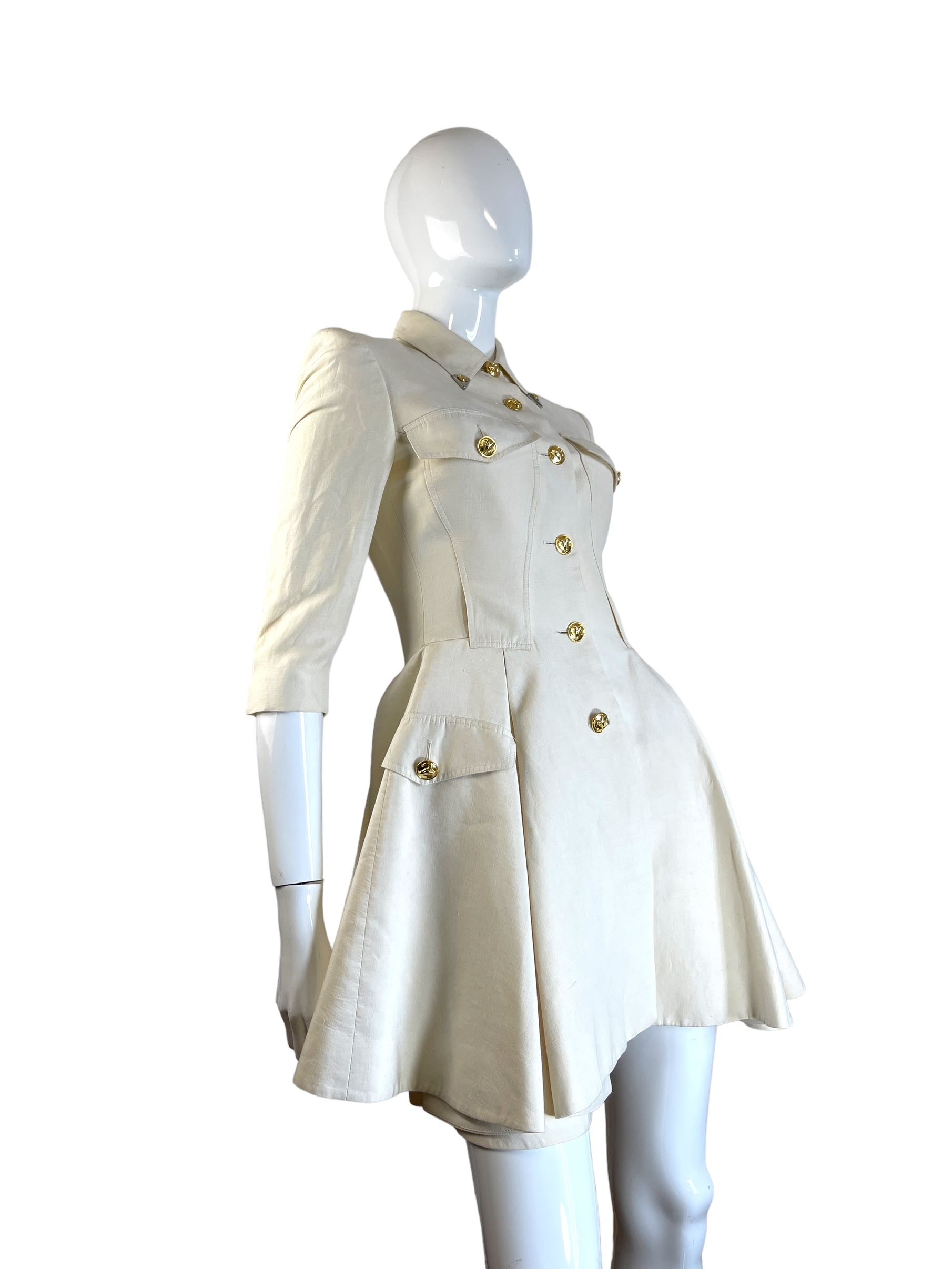 Gianni Versace linea ISTANTE, abito vintage con gonna a ruota, bottoni gioiello dorati.