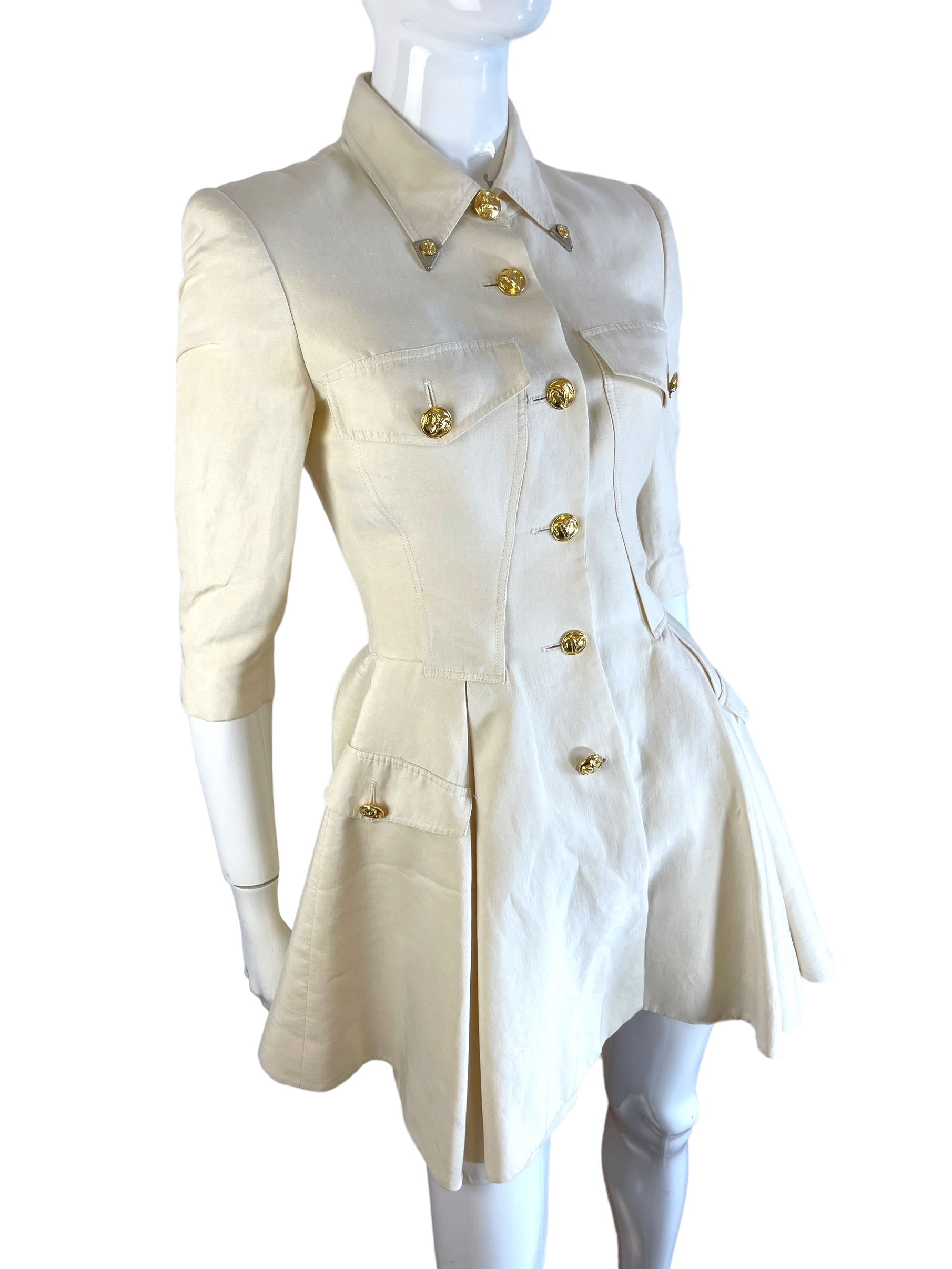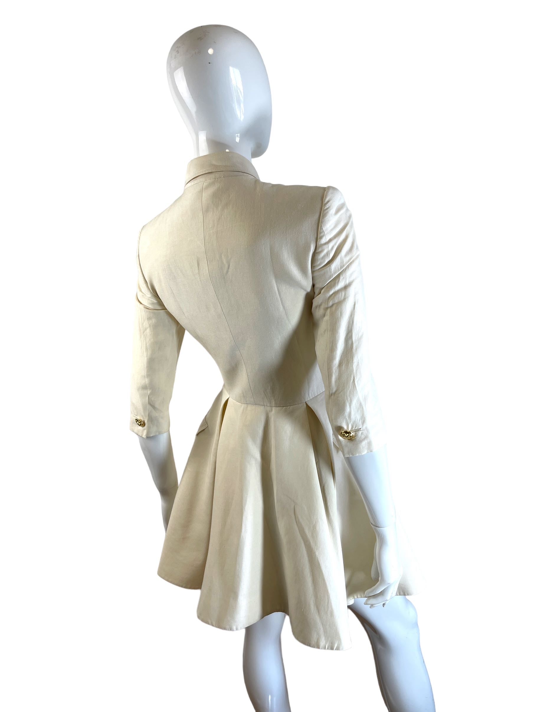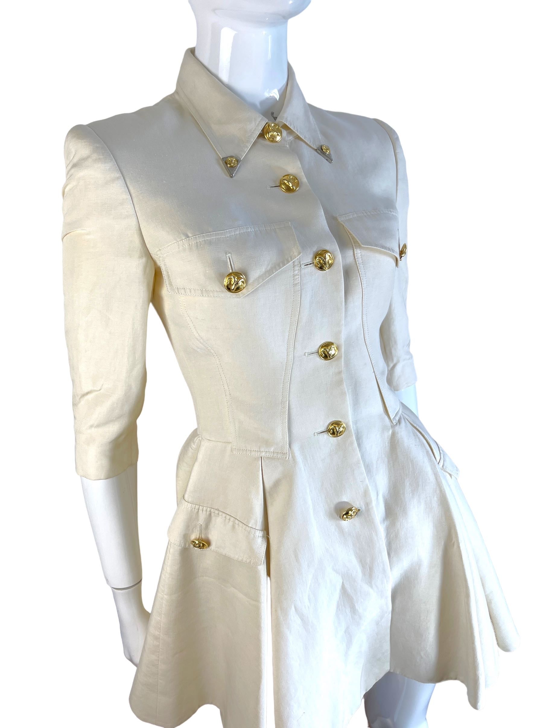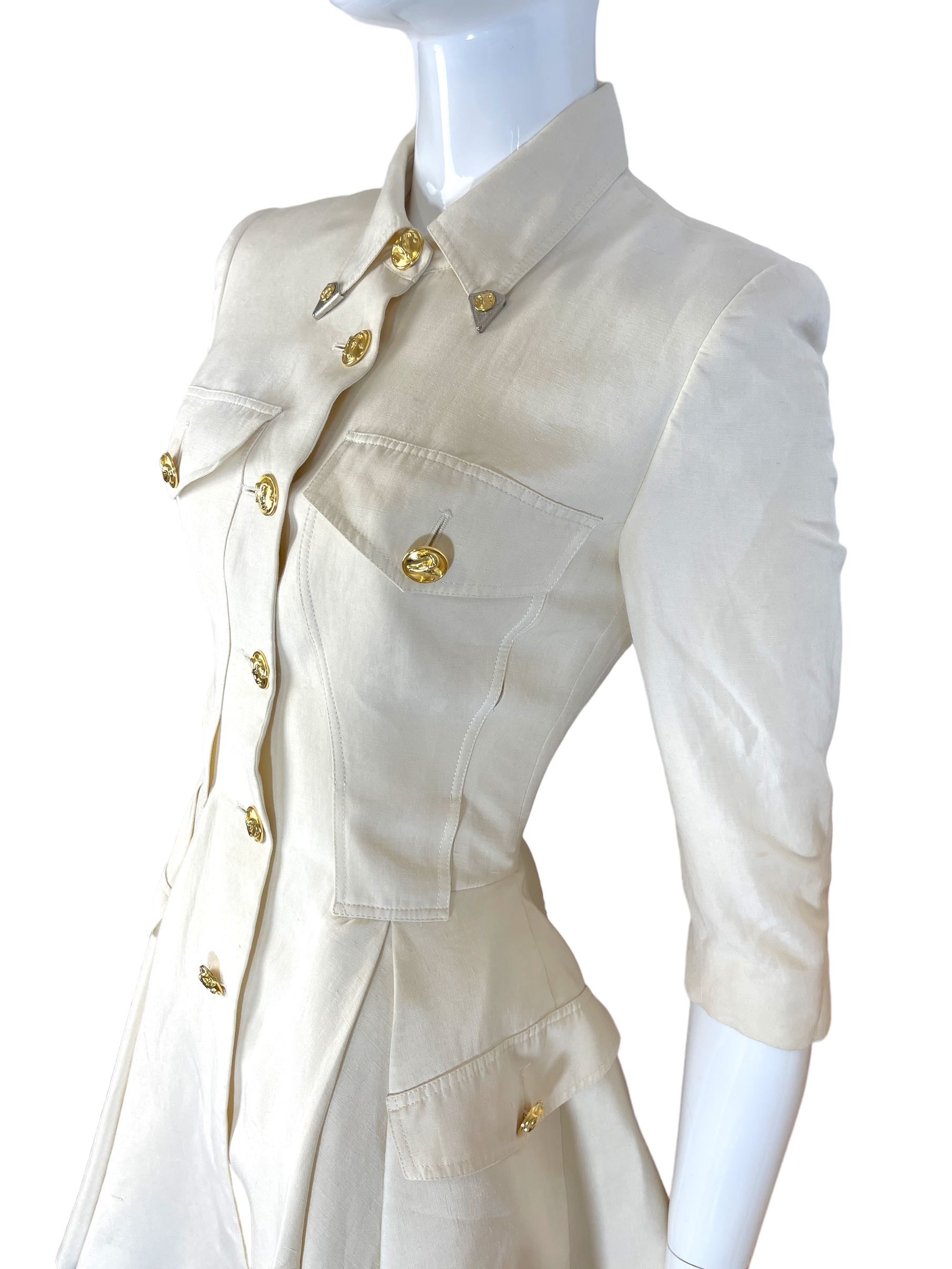 Gianni Versace linea ISTANTE, abito vintage con gonna a ruota, bottoni gioiello dorati.