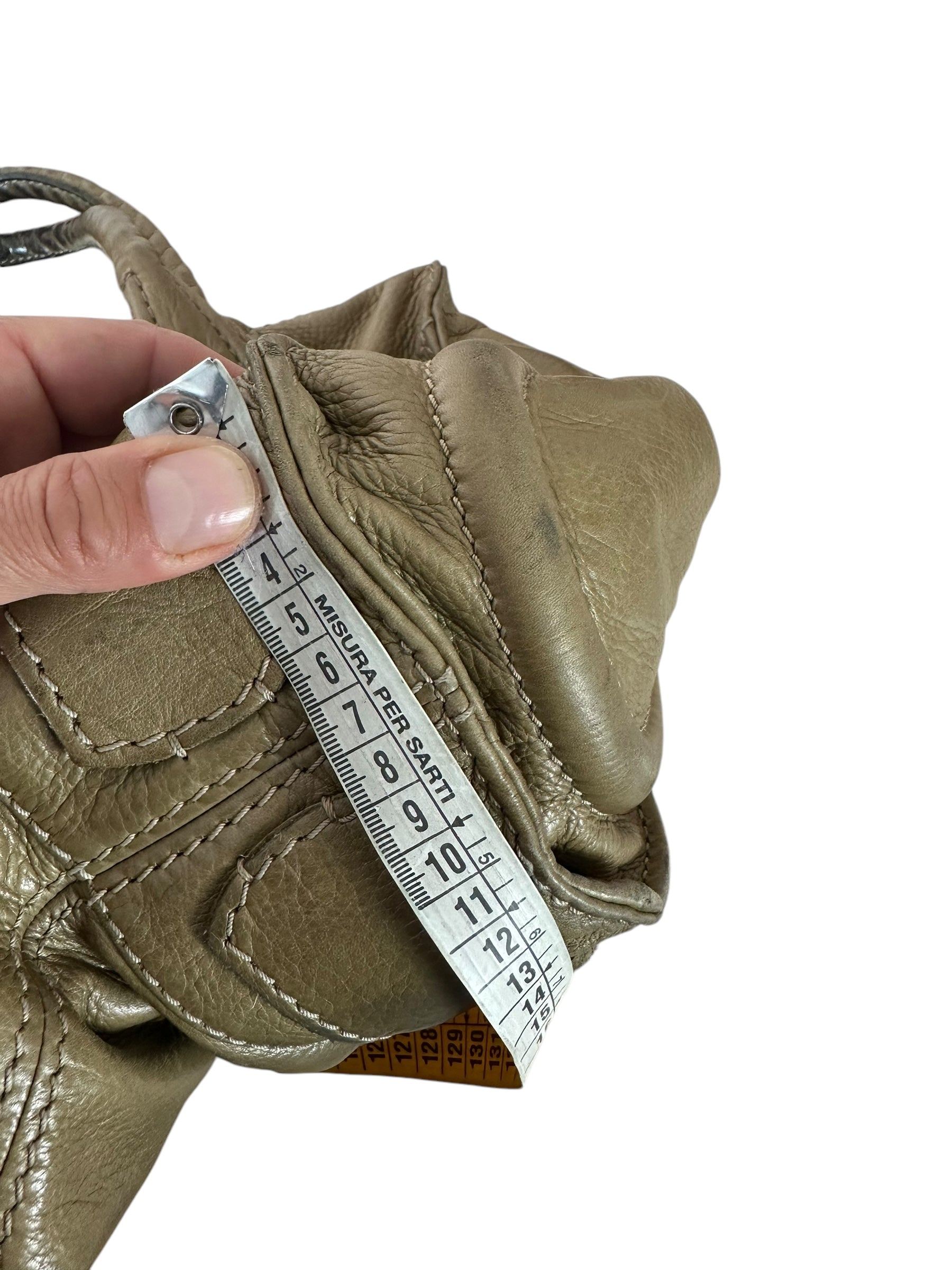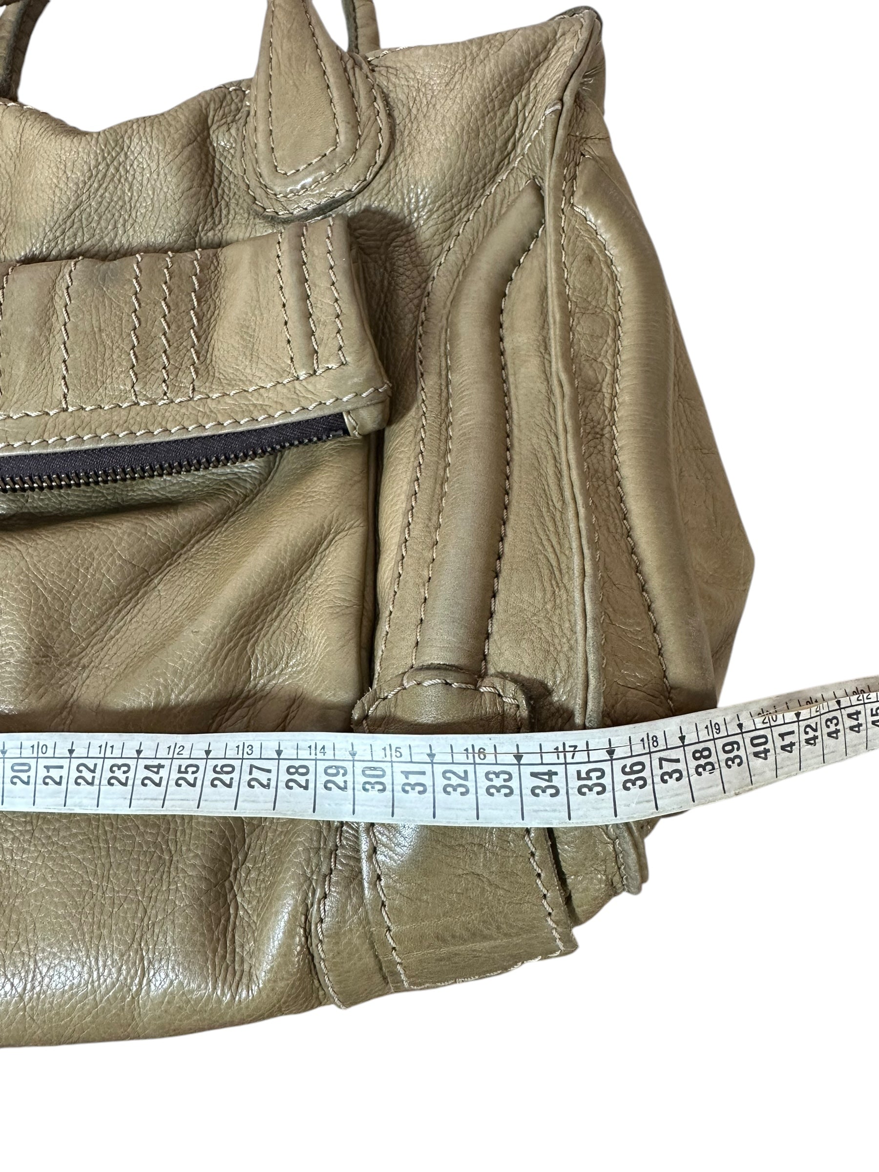 La borsa si presenta in buone condizioni generali. Sono visibili lievissimi graffi superficiali in alcuni punti, come mostrato nelle foto, e lievi segni di usura sugli angoli. Tuttavia, questi difetti sono poco evidenti e non compromettono la funzionalità o l’estetica complessiva. Rimane una borsa perfettamente indossabile, dallo stile artigianale e sobrio, ideale per l’uso quotidiano o professionale.