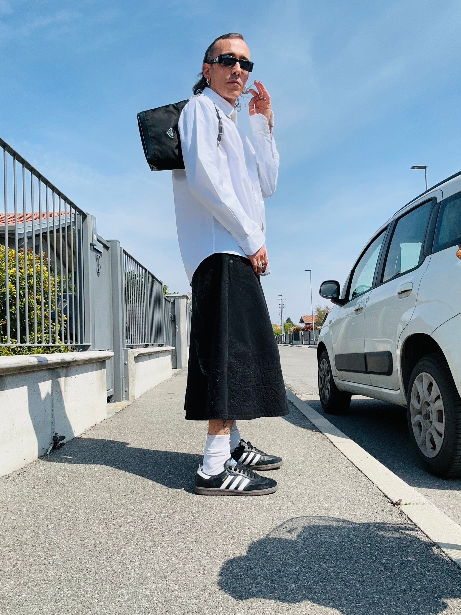 Jean Paul Gaultier gonna pantalone con ricamo. (L)