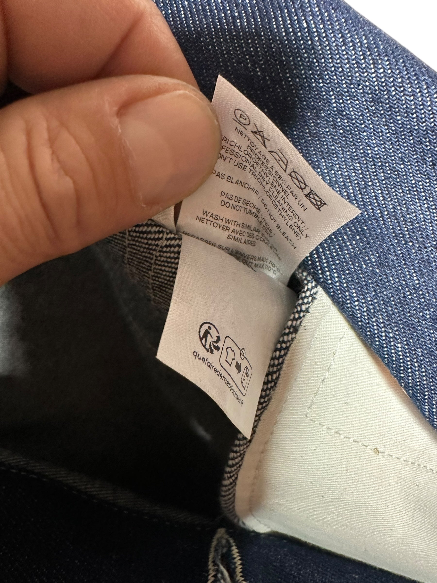 Realizzata in 100% cotone con struttura sartoriale, presenta cuciture a contrasto, bottoni logati color rame e le iconiche coppe sagomate sul petto con cucitura circolare. La chiusura frontale a tutta lunghezza permette di indossarla sia come giacca lunga sia come abito chemisier. Sul retro, è presente la patch originale “Haute Jeanerie – Tailored in Blue”.