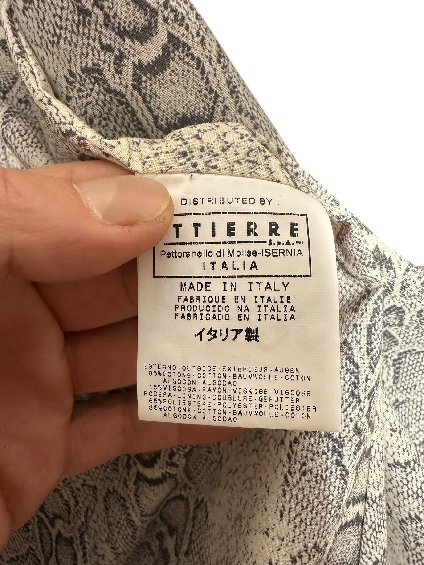 L’interno è rifinito con fodera a motivo animalier, dettaglio iconico della maison, che conferisce personalità e riconoscibilità al blazer. Capo ben costruito, con ottima vestibilità e finiture curate.