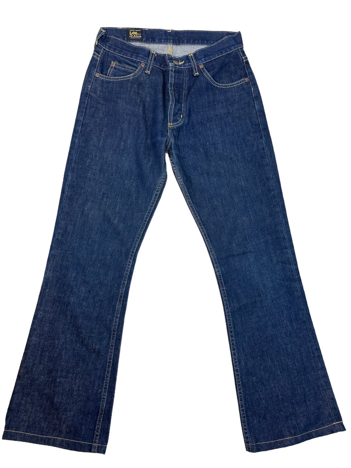 Lee jenas vintage maschile a vita bassa in denim blu scuro con tasche laterali. Vestibilità a zampa. Tg. 42