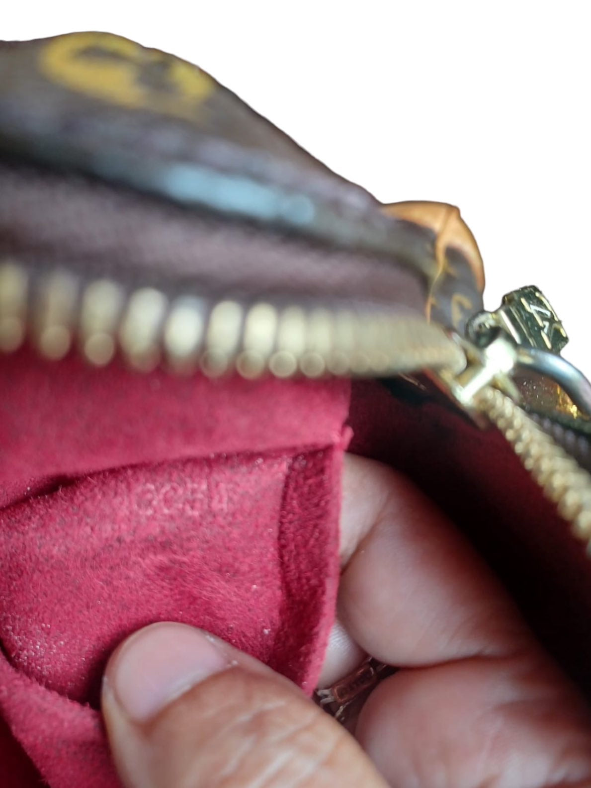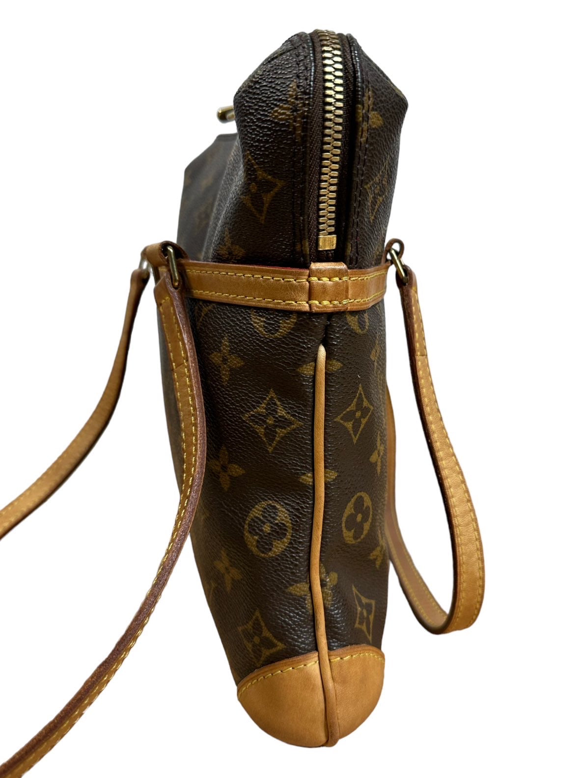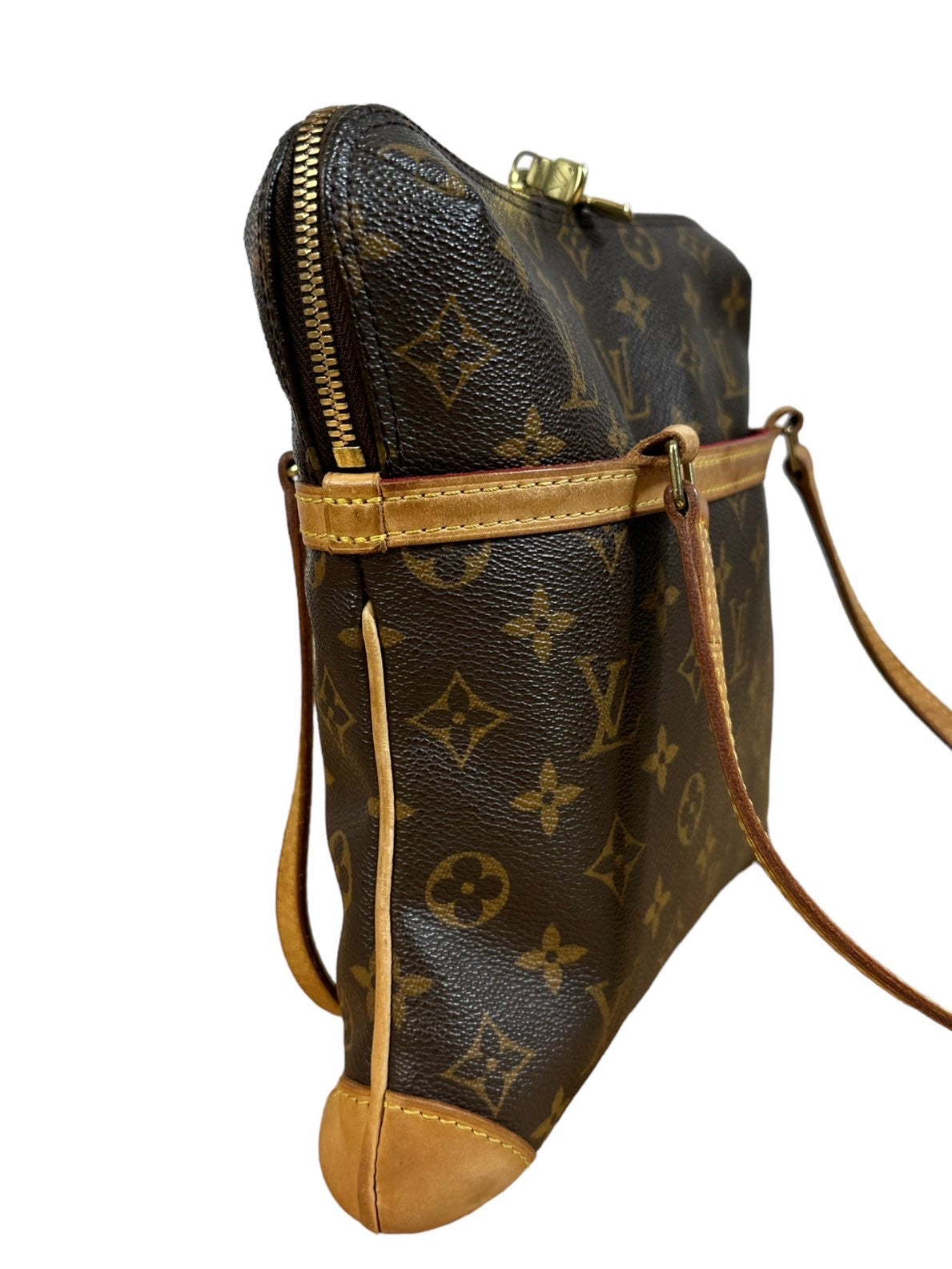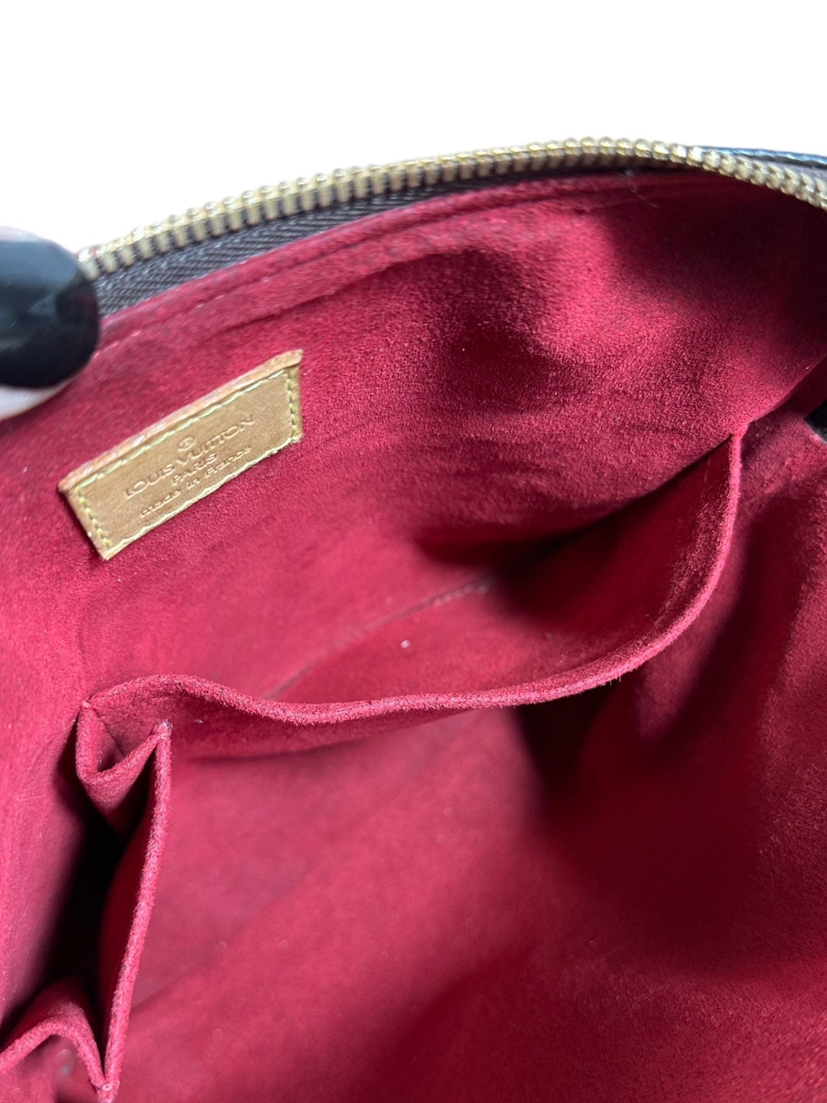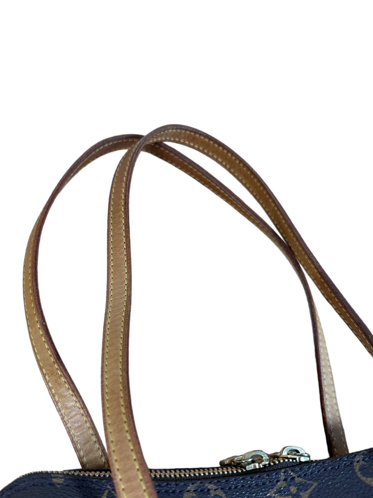 Louis Vuitton borsa Coussin vintage in tela monogram con manici e profili in vacchetta. Dispone di una tasca sul davanti e un ampio spazio interno con due taschini. Lievissimi segni di usata sulla vacchetta nella parte frontale all’altezza del taschino e sugli angoli (poco visibili). Codice seriale marchiato ma visibile con luce naturale.