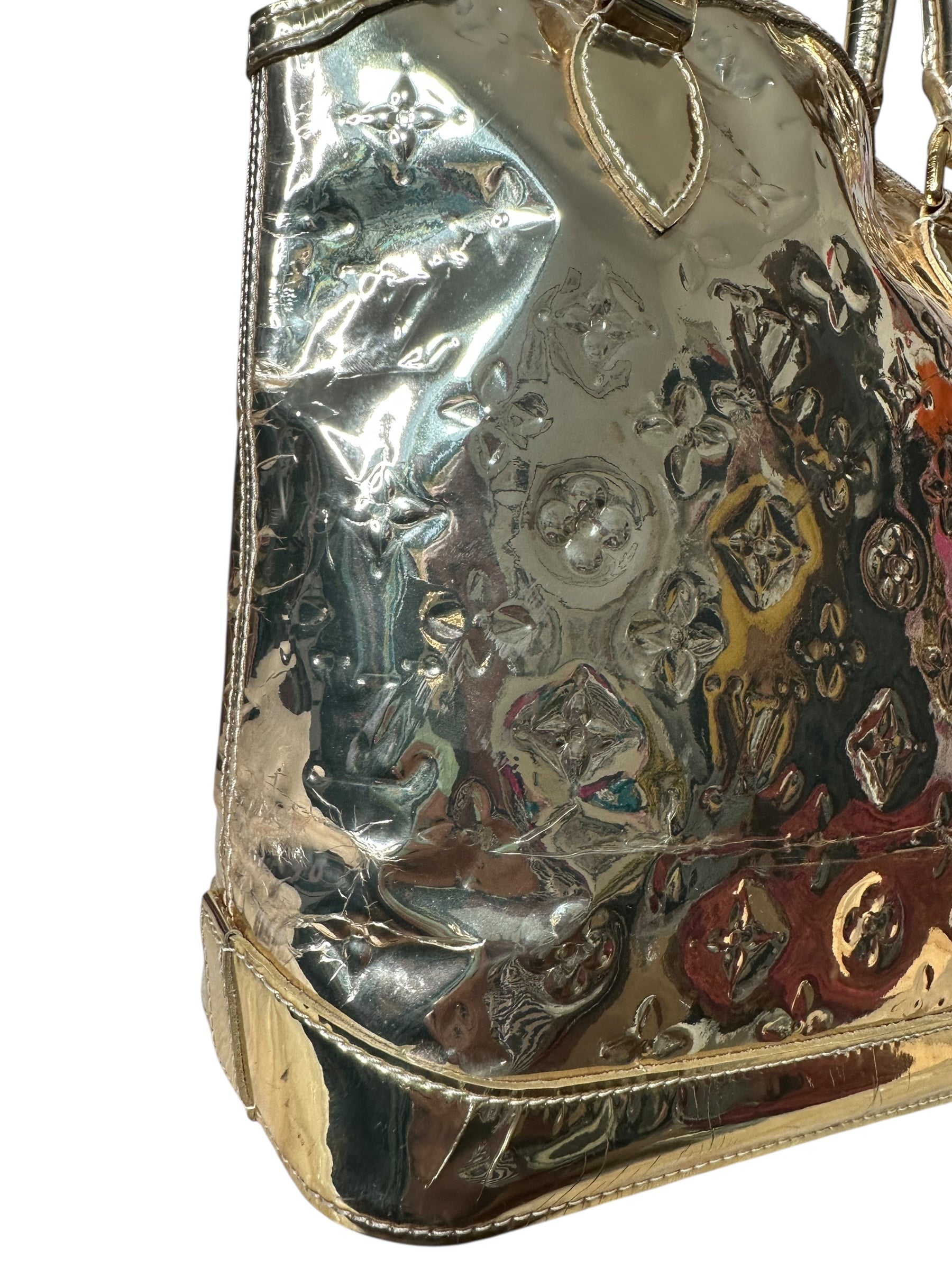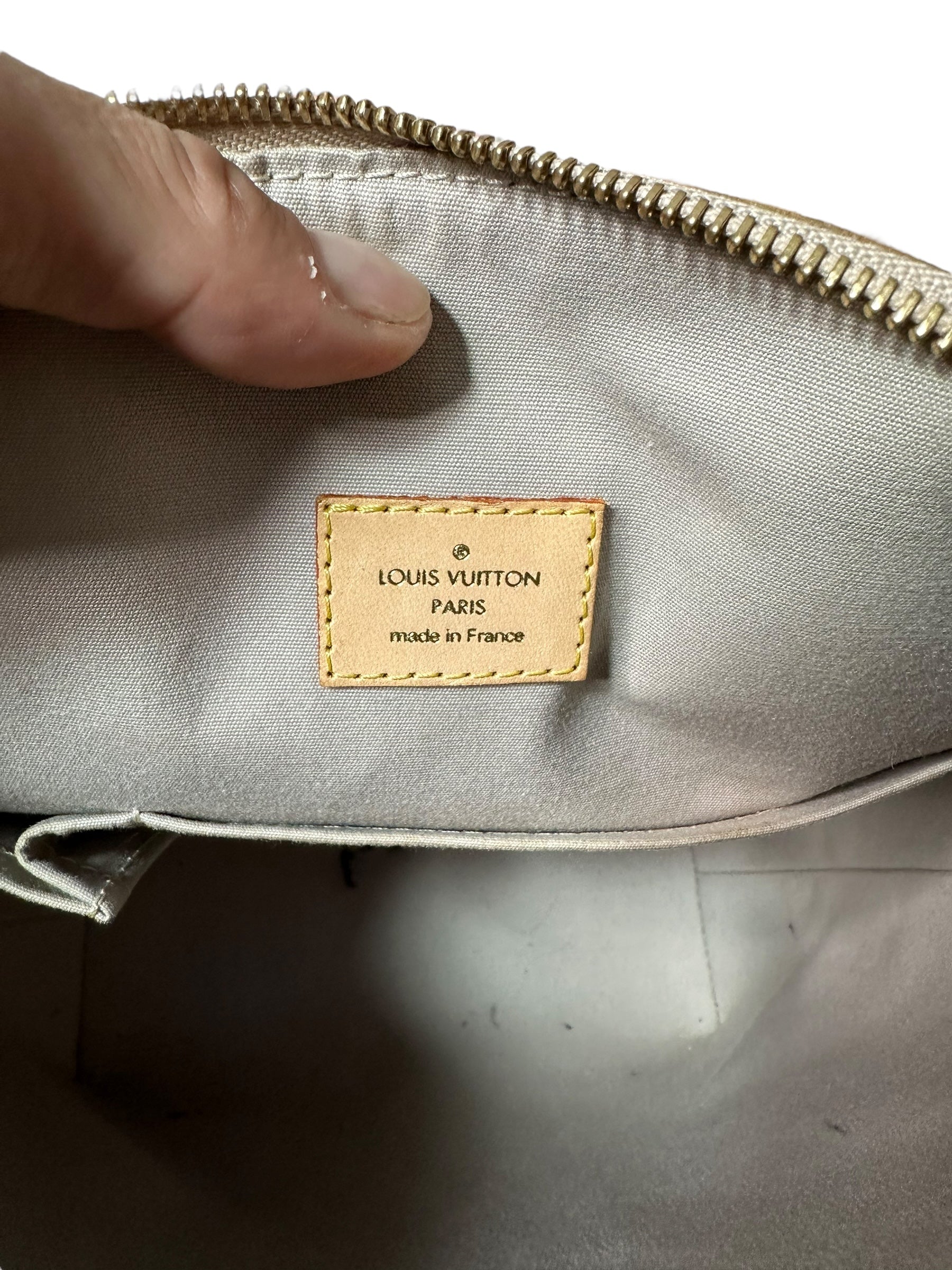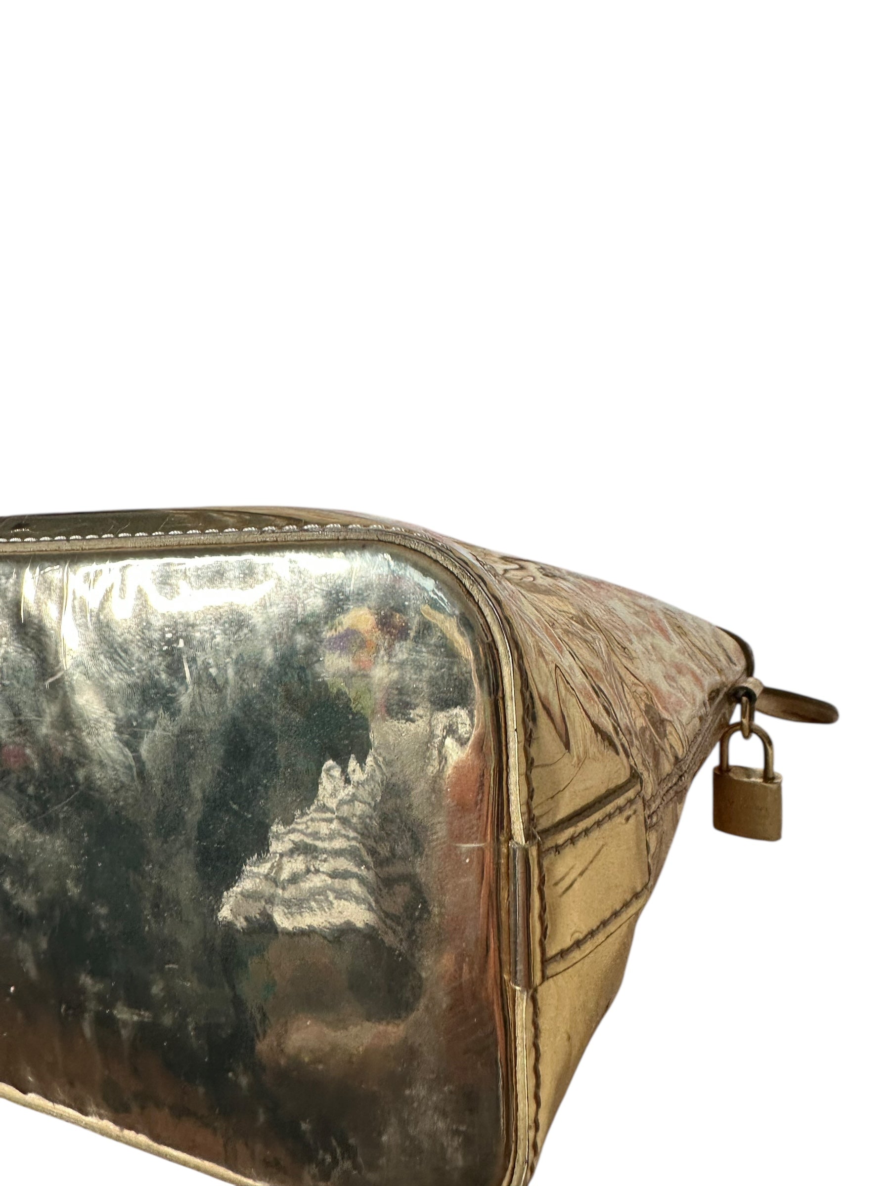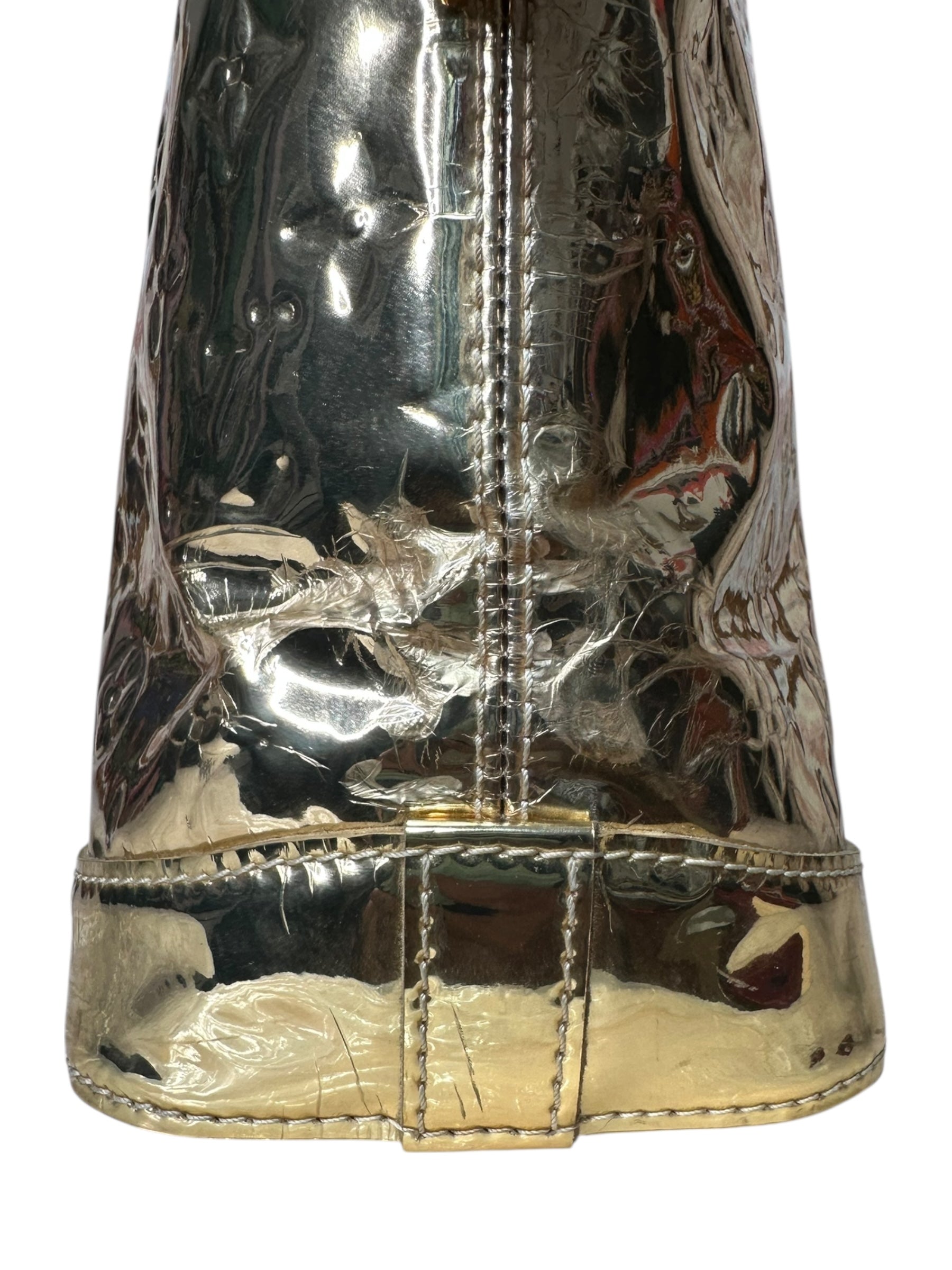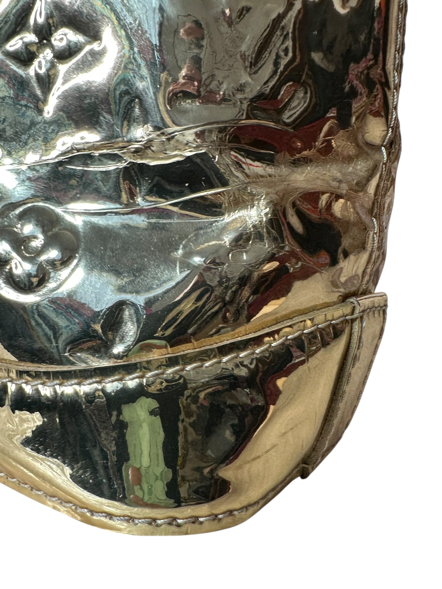 Materiale: Monogram verniciato lucido color oro, con dettagli in metallo dorato (lucchetto, anelli e zip)