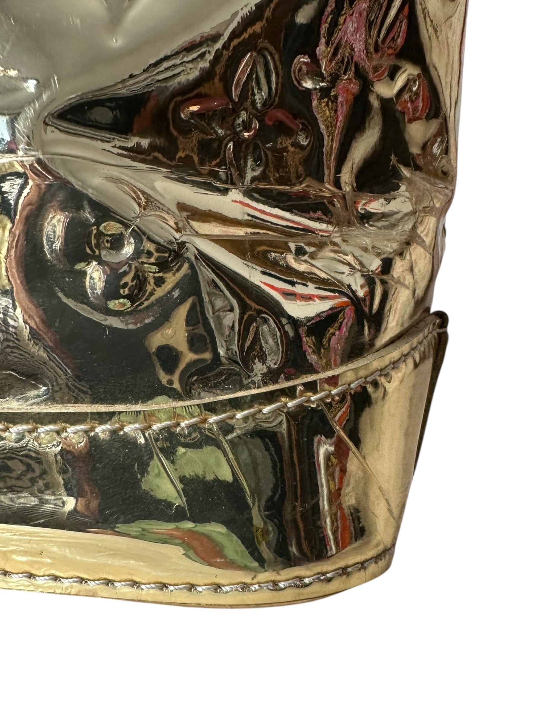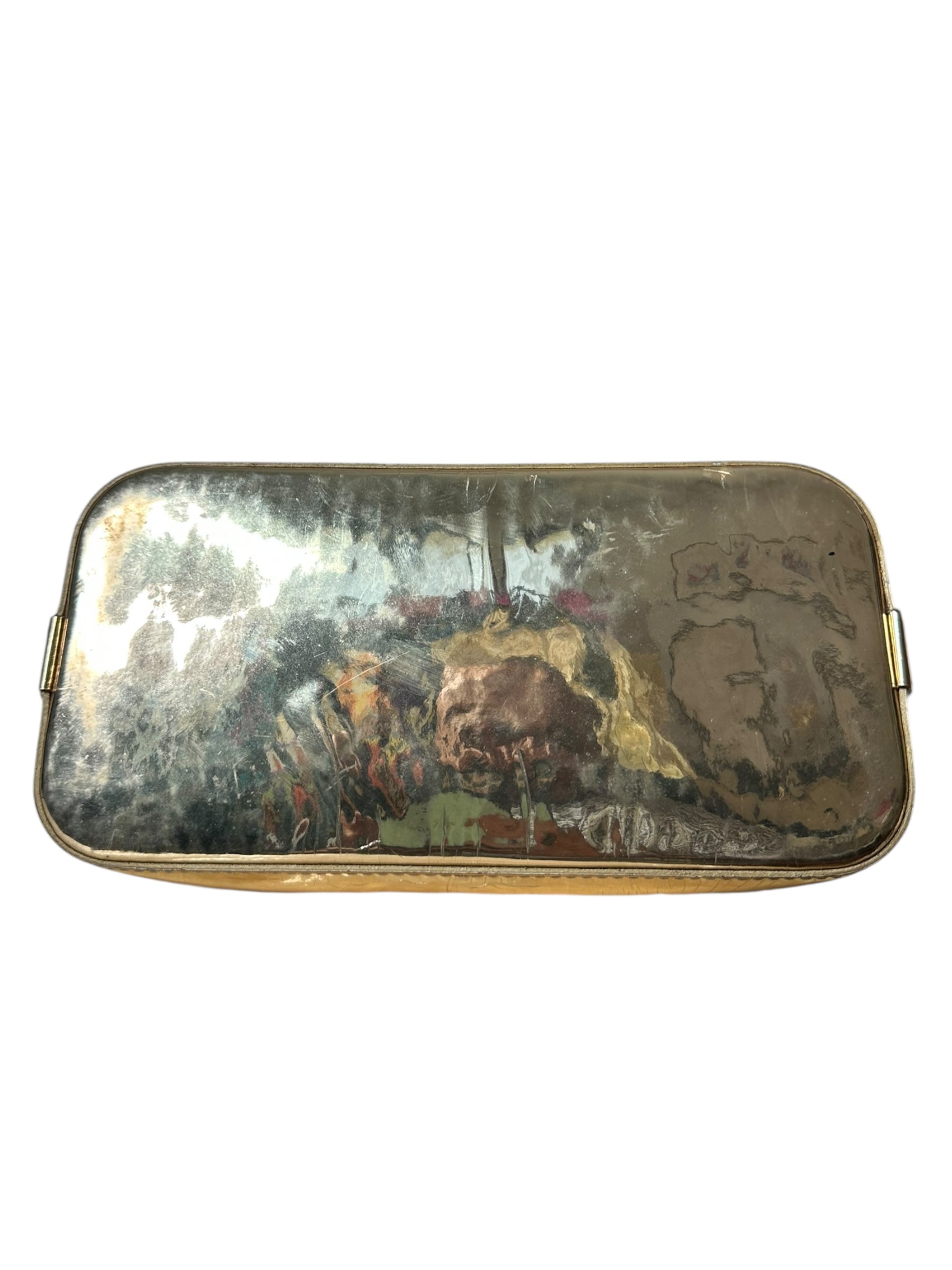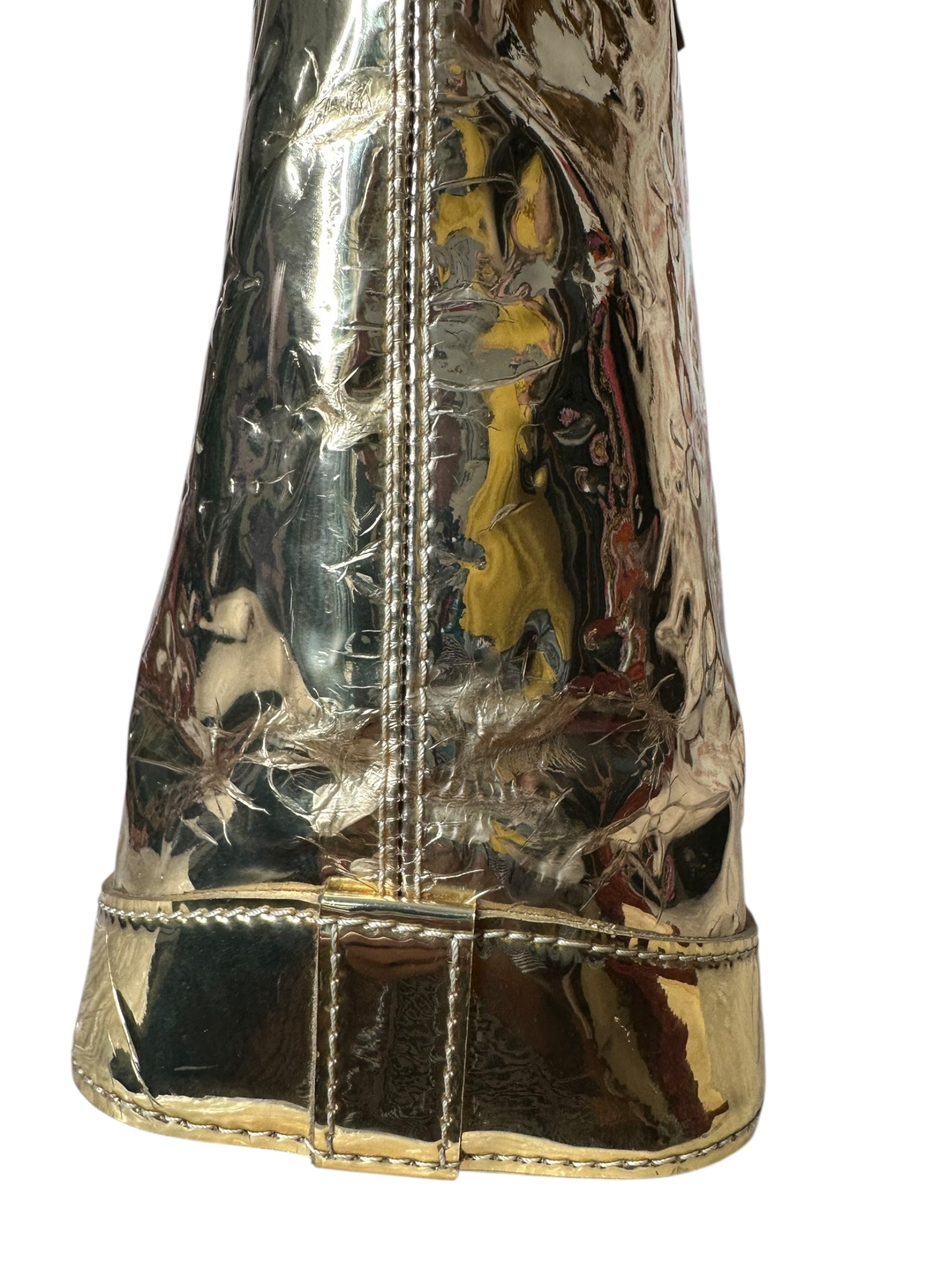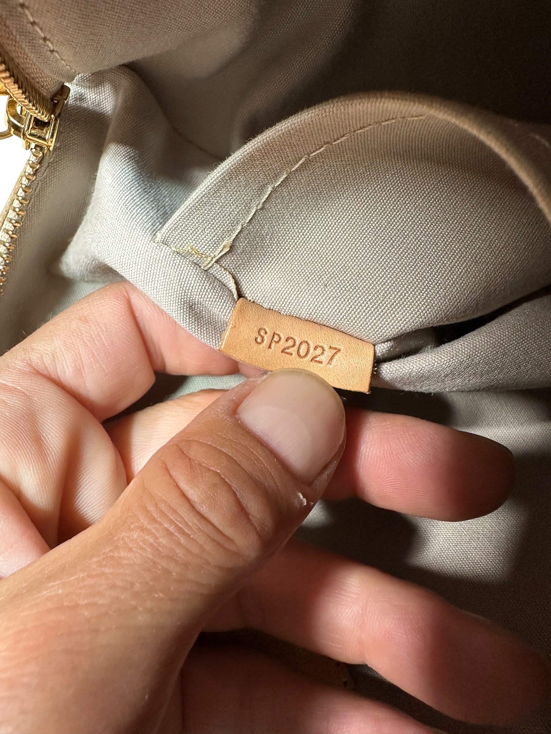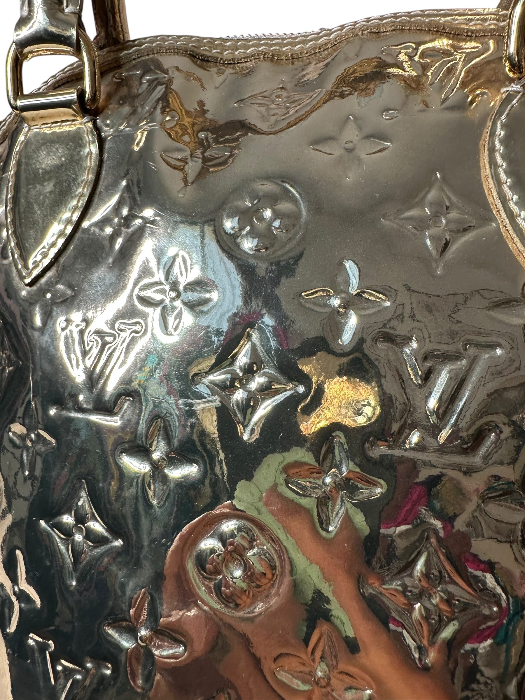 Materiale: Monogram verniciato lucido color oro, con dettagli in metallo dorato (lucchetto, anelli e zip)