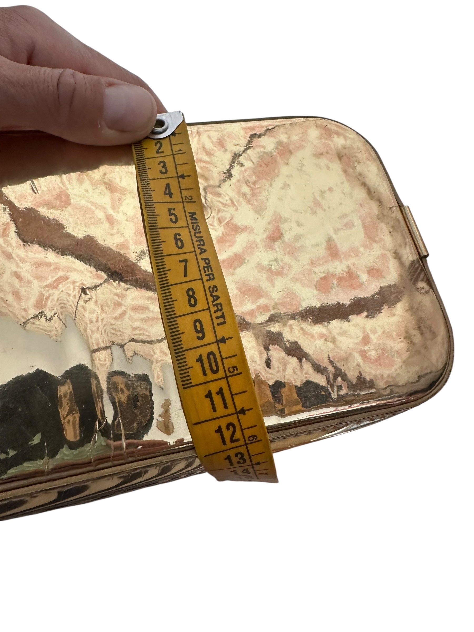 • Esterno: presenta segni visibili su tutta la superficie del tessuto verniciato, in particolare piccole crepature e lievi abrasioni, soprattutto lungo il fondo, sui lati e sugli angoli. Questi difetti sono chiaramente evidenti nelle foto allegate, ma non compromettono la funzionalità della borsa che resta utilizzabile e portabile ☆