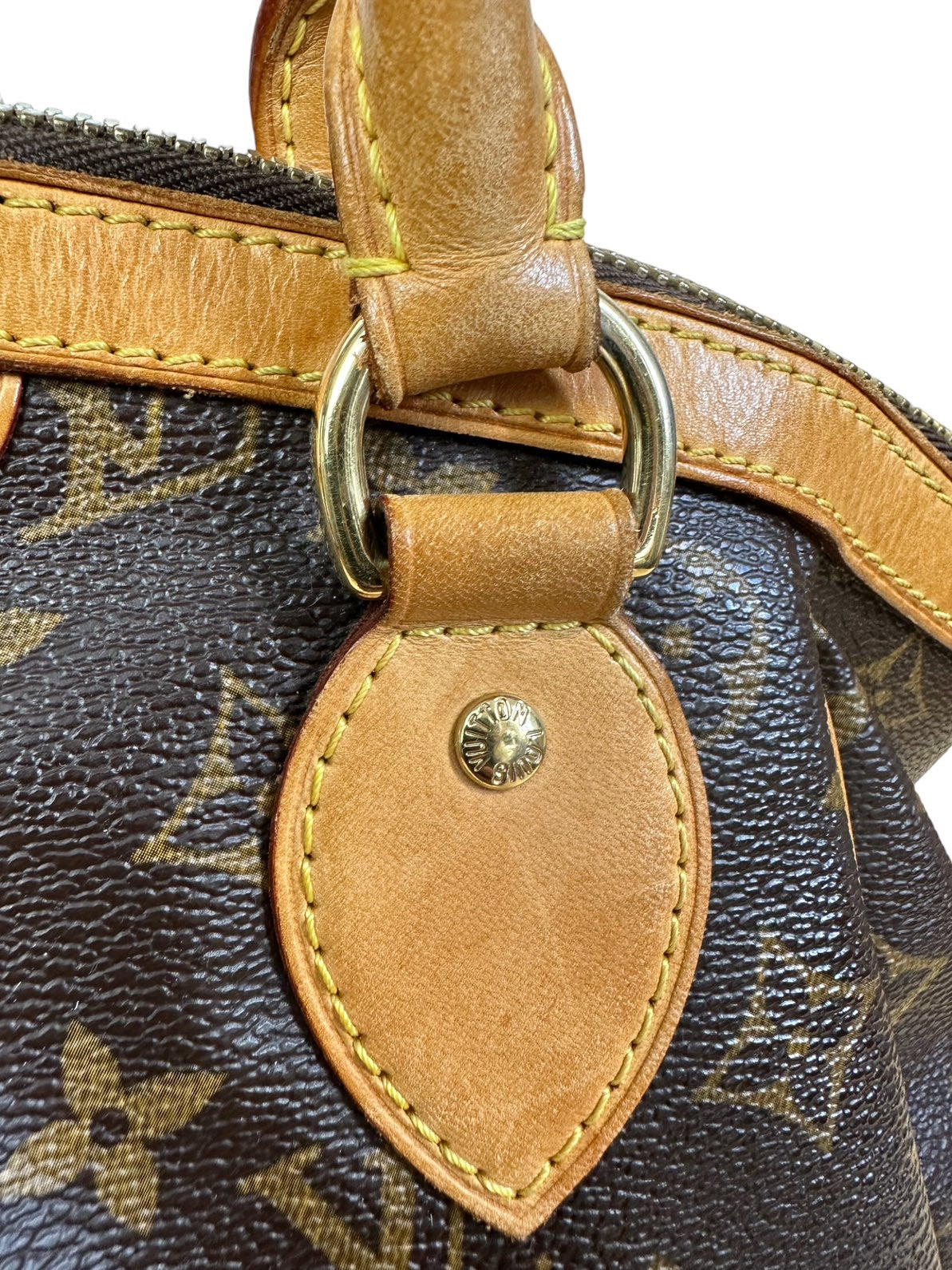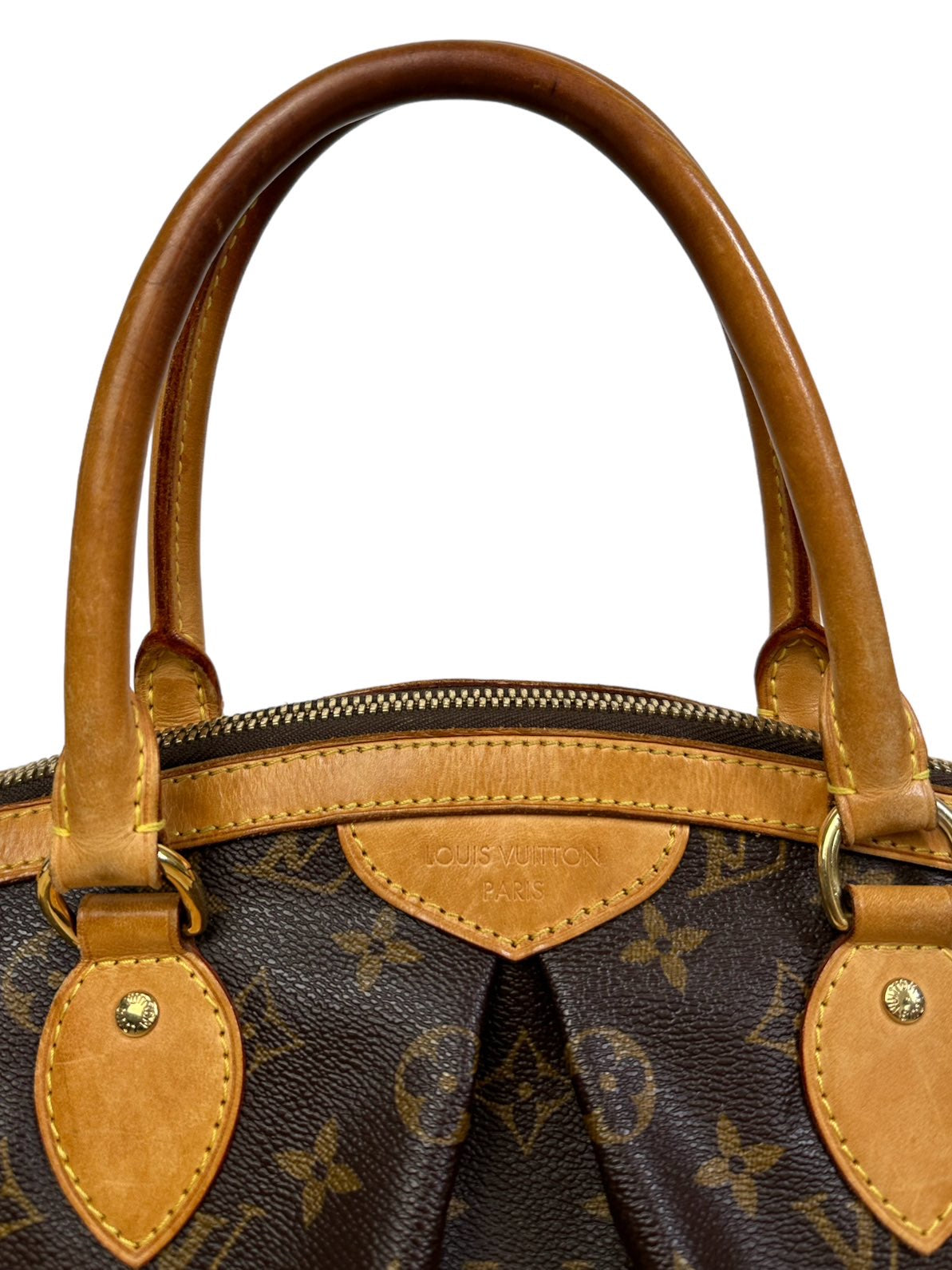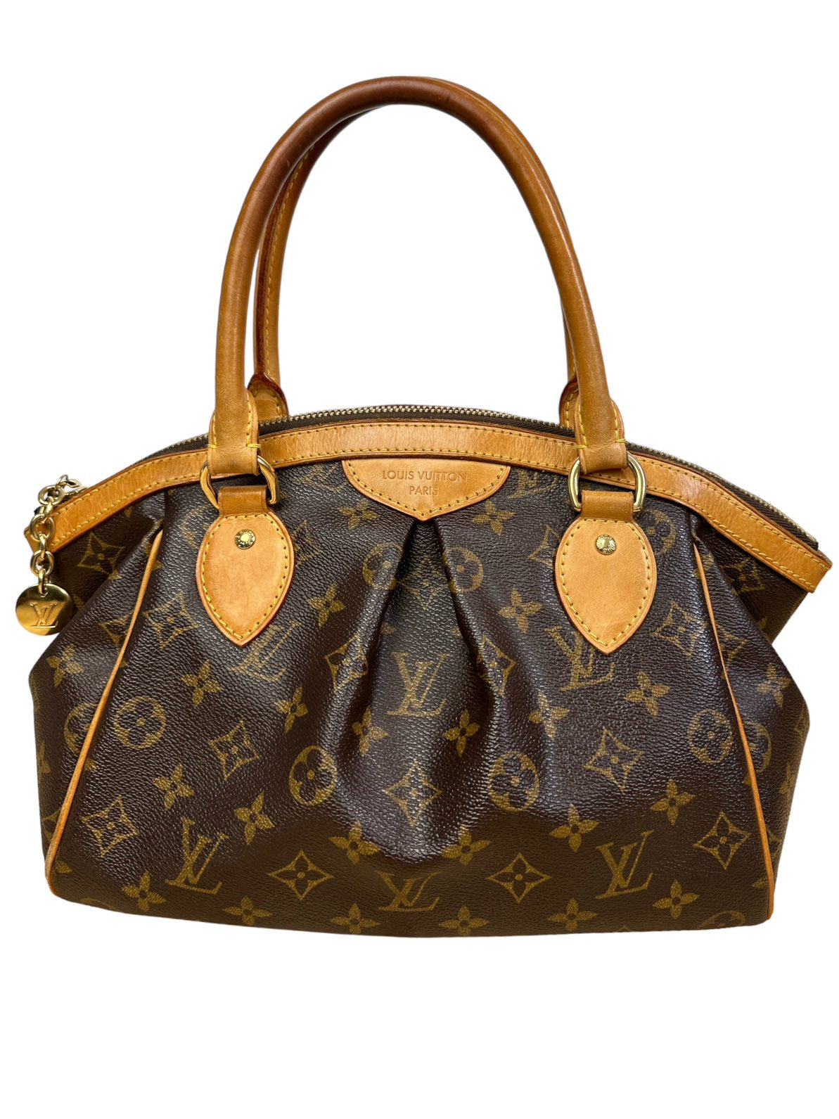 Louis Vuitton borsa vintage Tivoli in tela monogram con profili e manico in vacchetta con chiusura a zip e tirante con pendente a logo. Presenta lievi segni di usura sugli angoli e sulla parte dell’impugnatura del manico rimovibile da un laboratorio specializzato. Misura piccola.