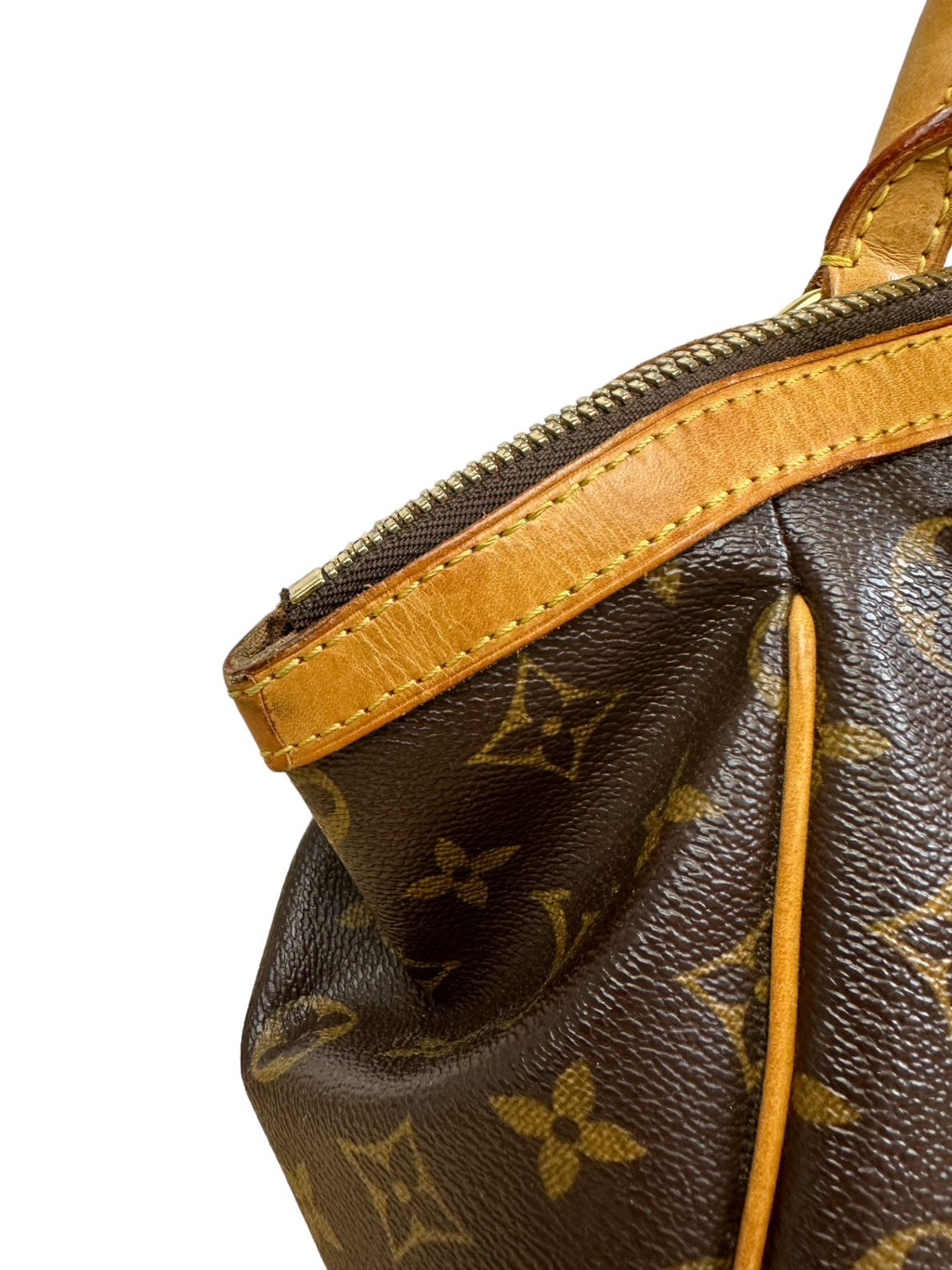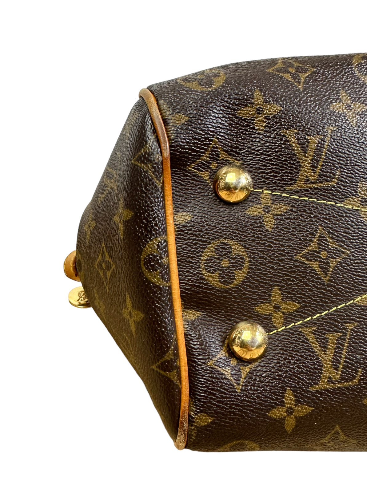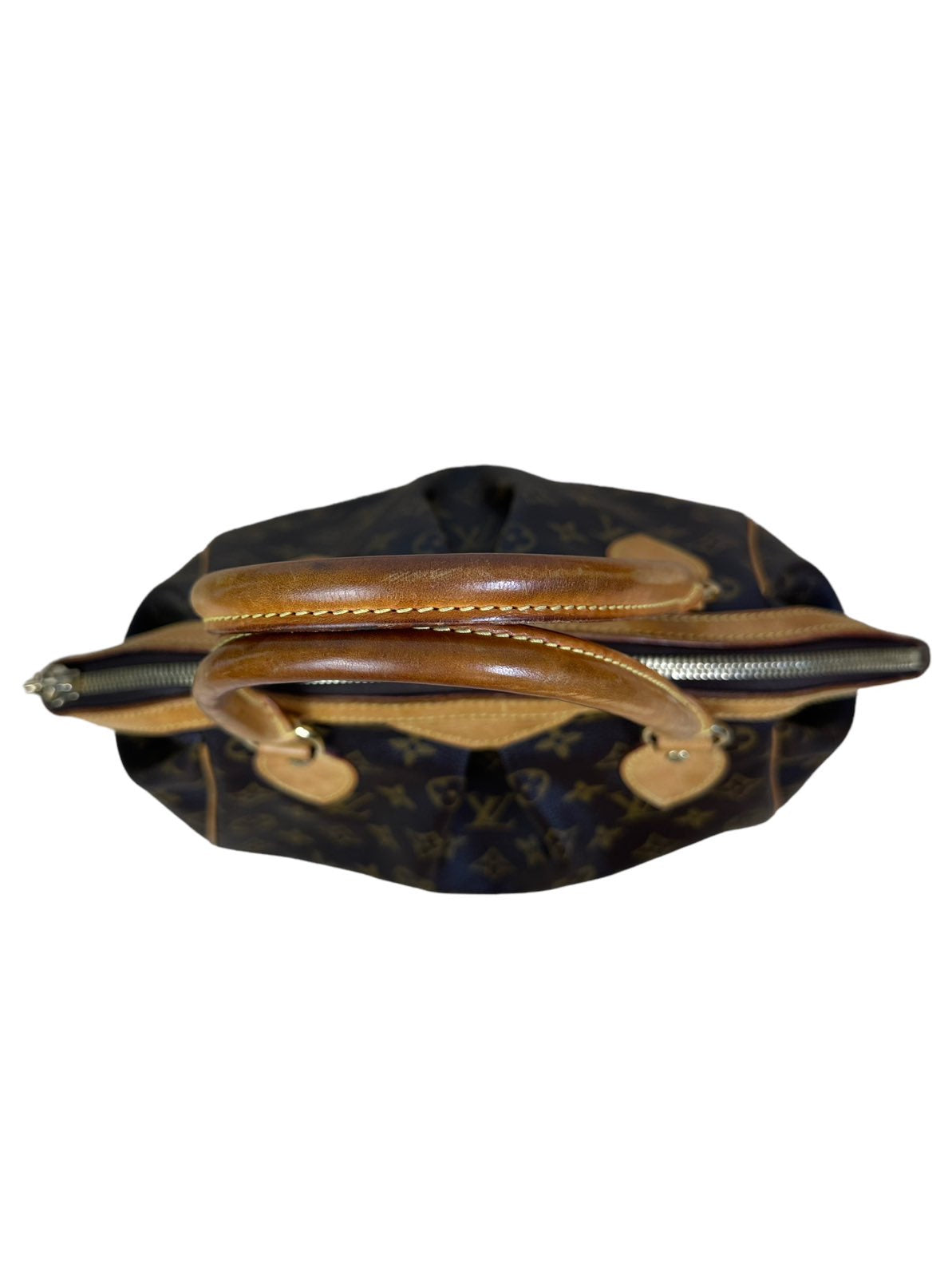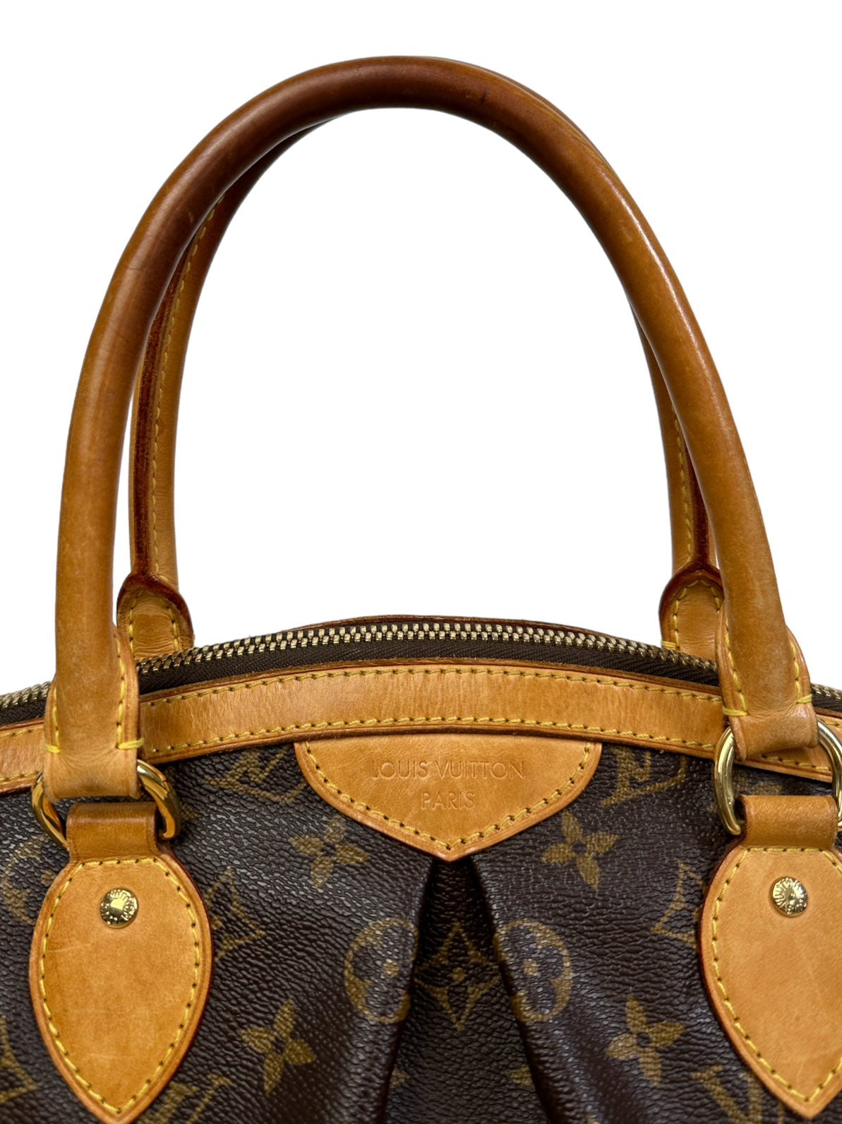 Louis Vuitton borsa vintage Tivoli in tela monogram con profili e manico in vacchetta con chiusura a zip e tirante con pendente a logo. Presenta lievi segni di usura sugli angoli e sulla parte dell’impugnatura del manico rimovibile da un laboratorio specializzato. Misura piccola.