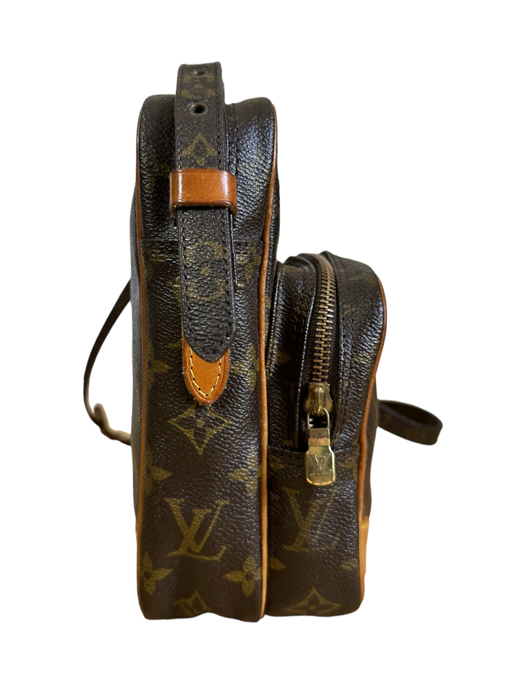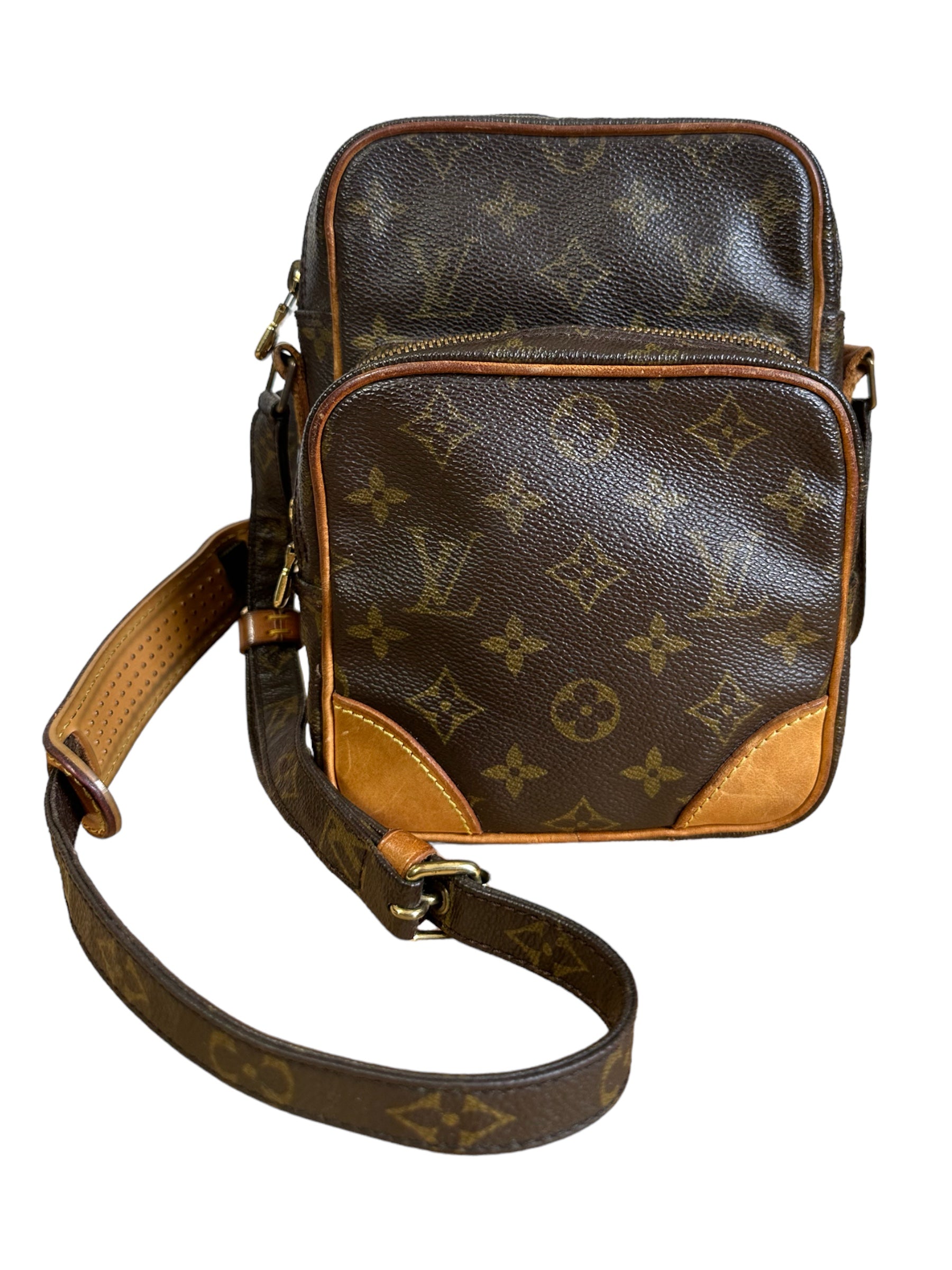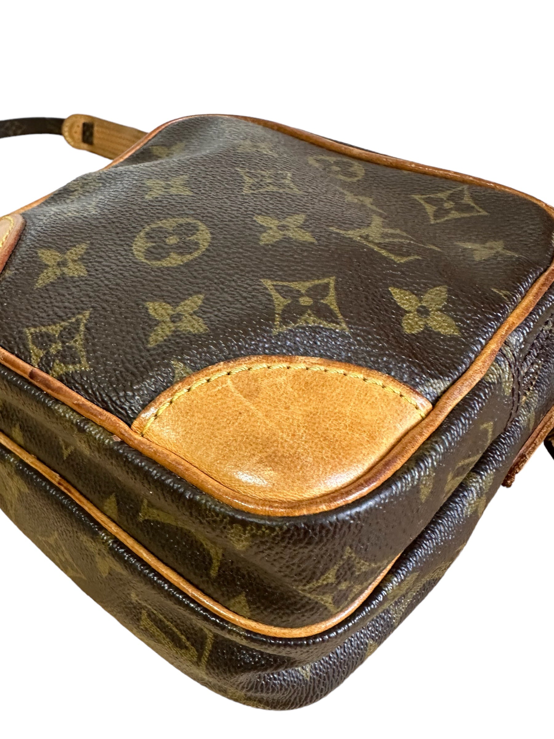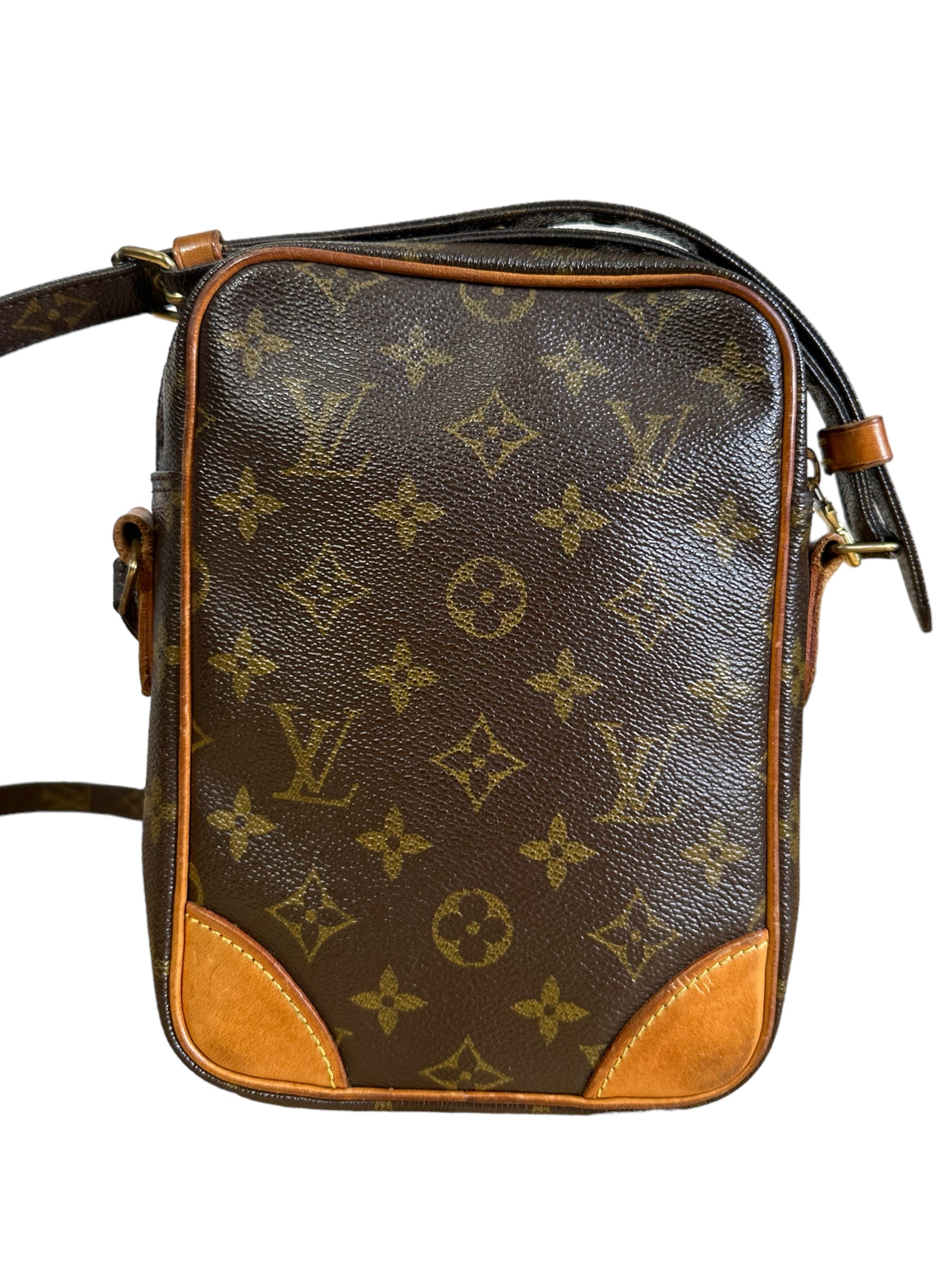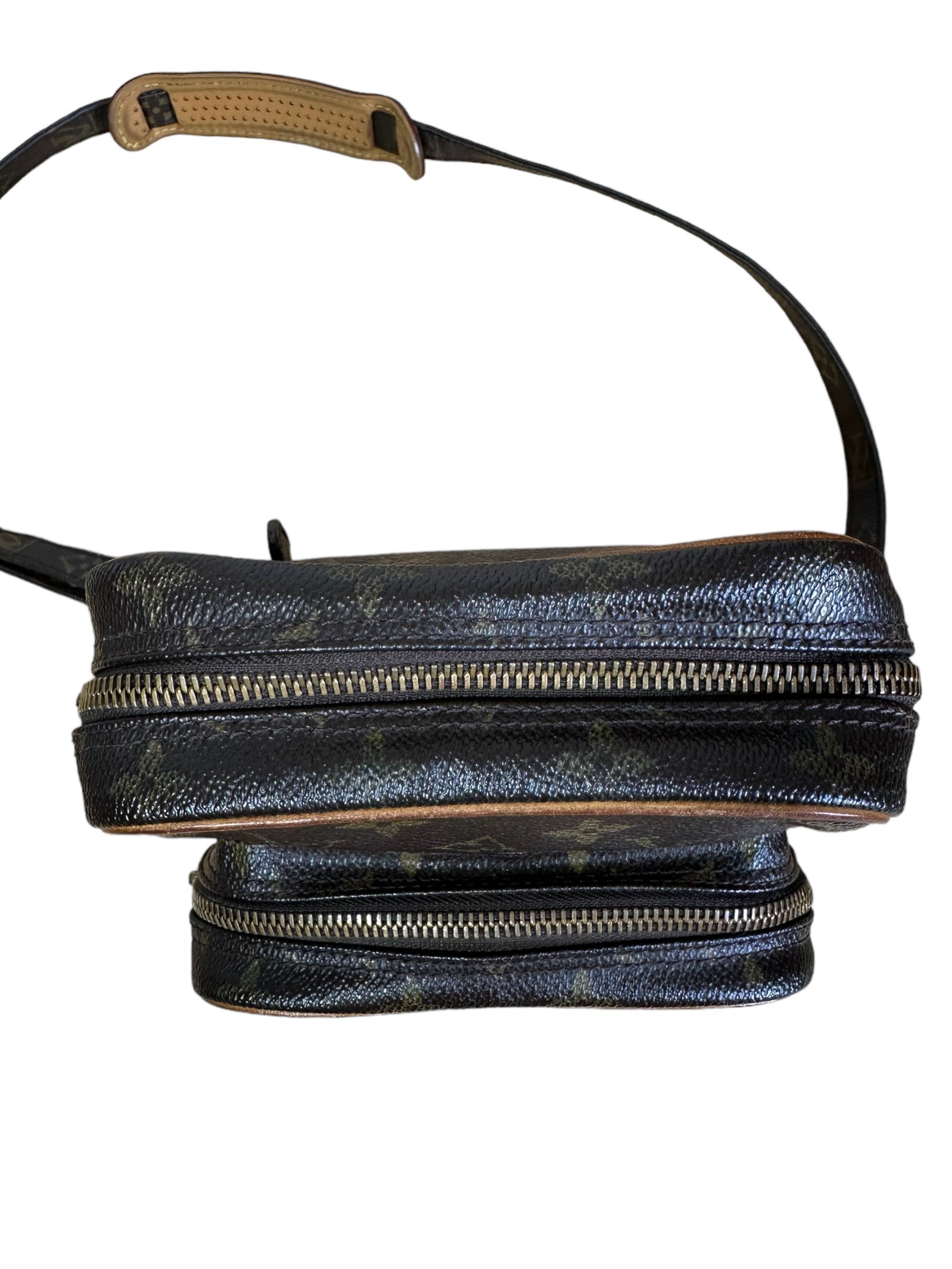 Louis Vuitton borsa vintage in tela monogram con tracolla regolabile e profili in vacchetta, dispone di due scomparti uno più ampio che può contenere un cellulare e una tasca applicata frontale. Lievi segni di usura sulla vacchetta e taschino interno vulcanizzato (vedi foto. Non viene spedito con dust bag.