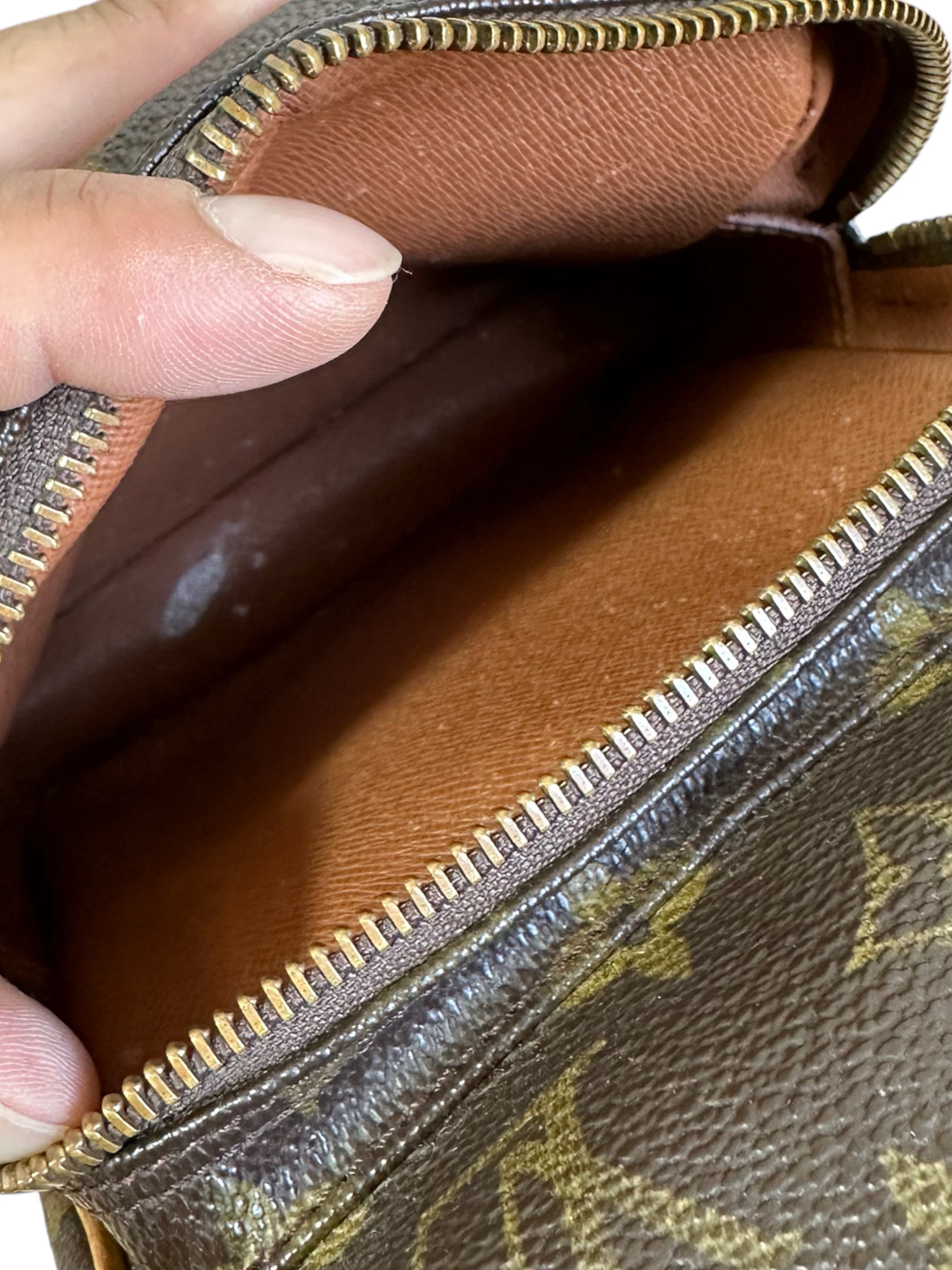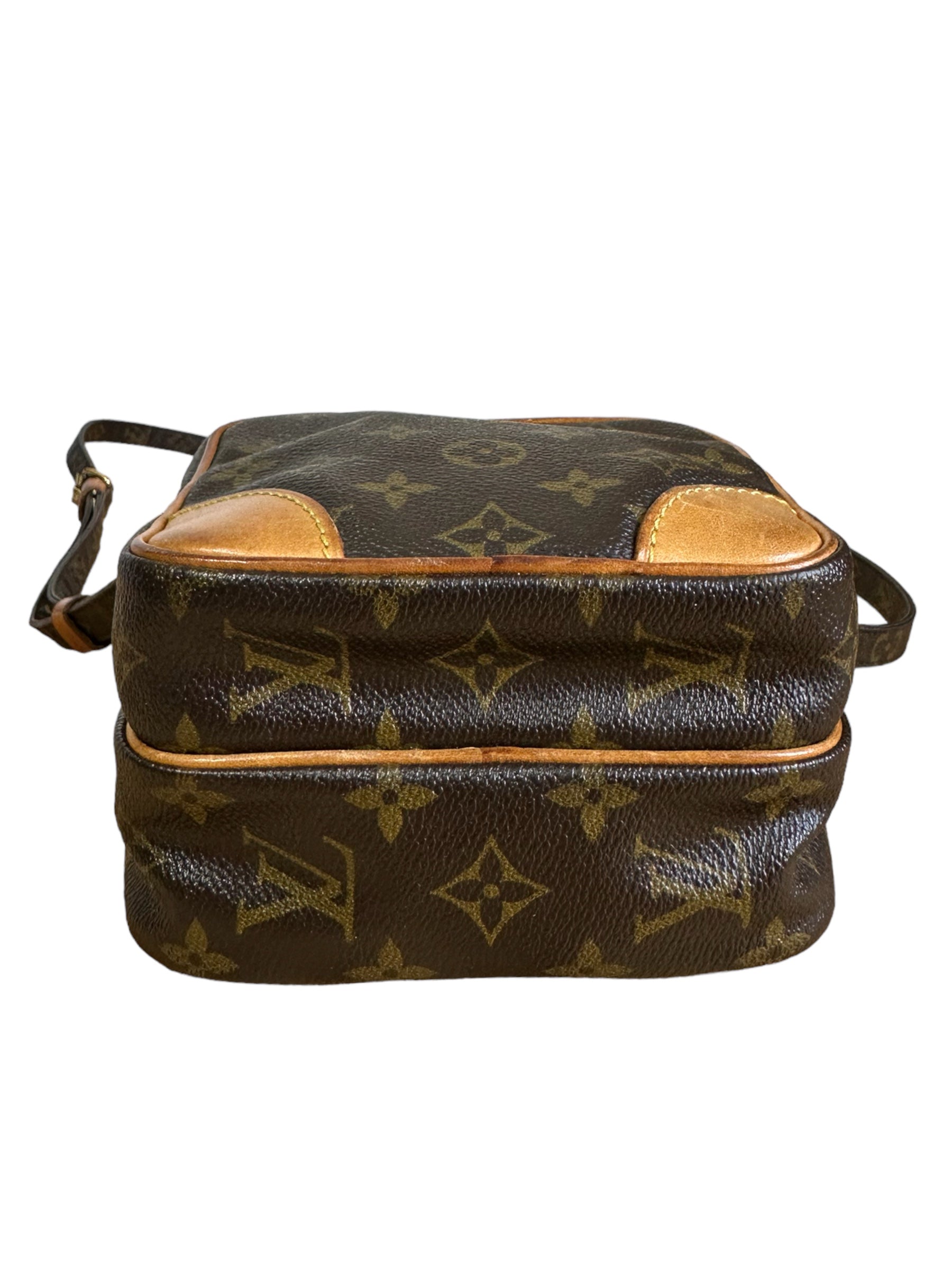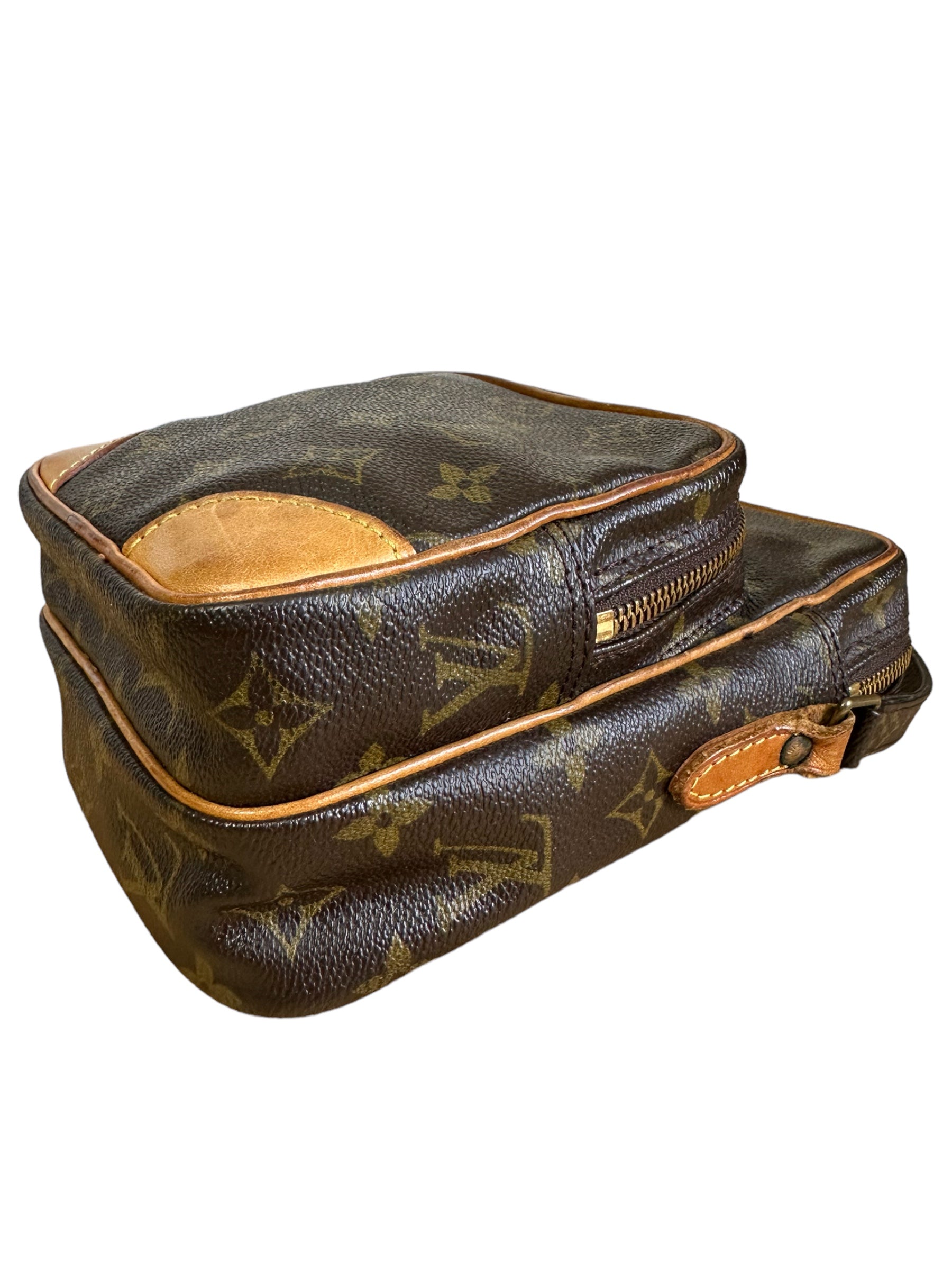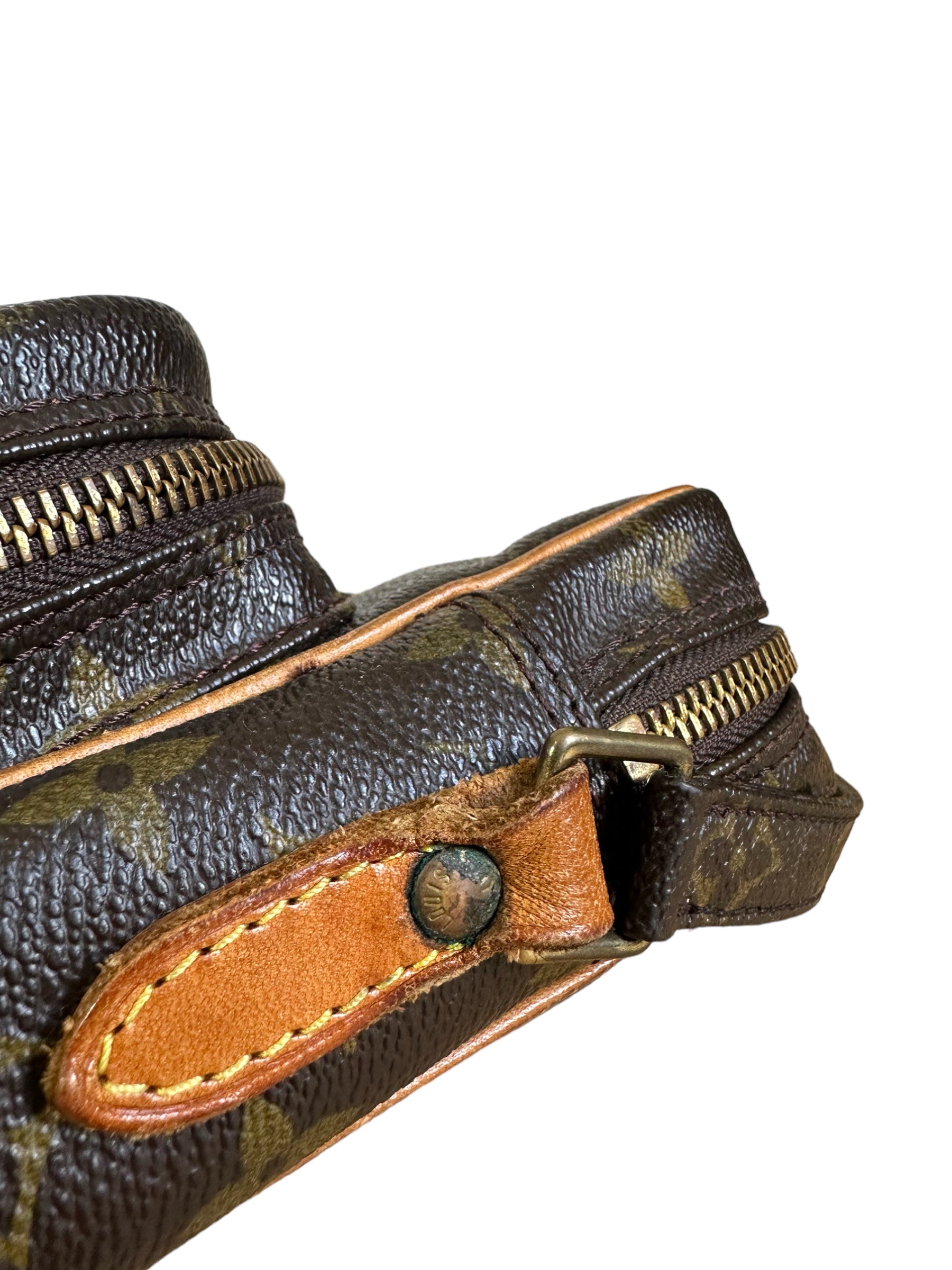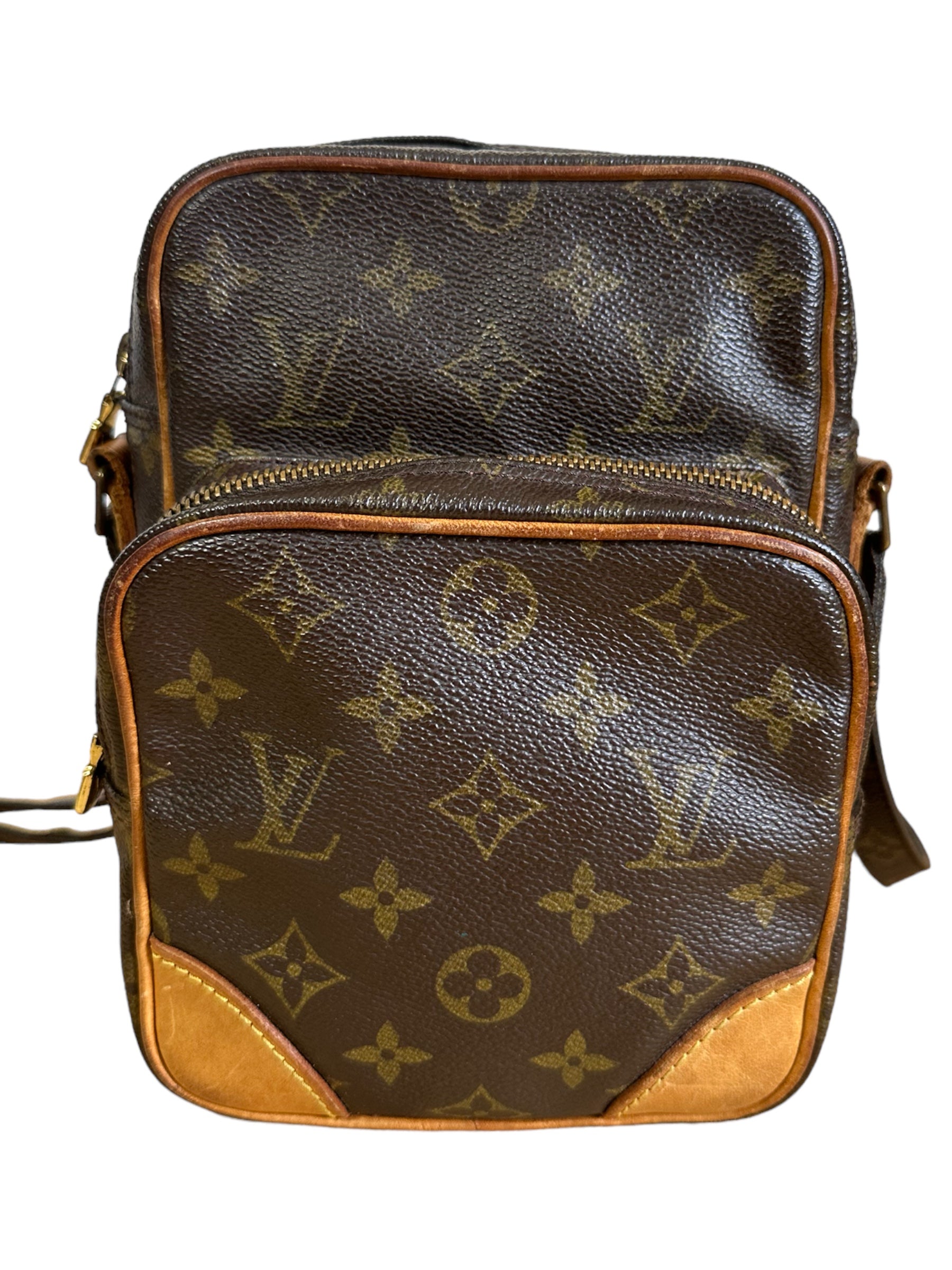 Louis Vuitton borsa vintage in tela monogram con tracolla regolabile e profili in vacchetta, dispone di due scomparti uno più ampio che può contenere un cellulare e una tasca applicata frontale. Lievi segni di usura sulla vacchetta e taschino interno vulcanizzato (vedi foto. Non viene spedito con dust bag.