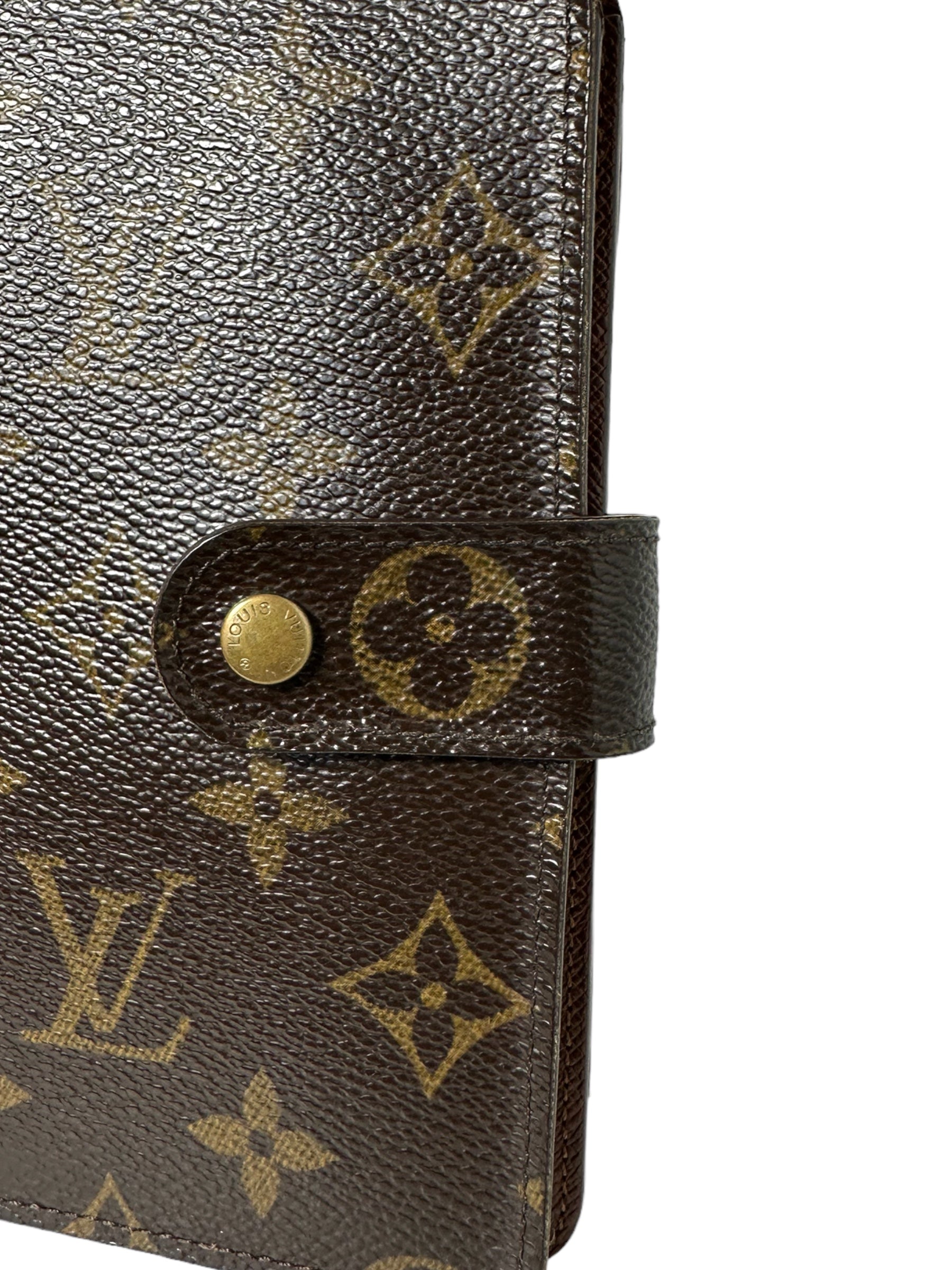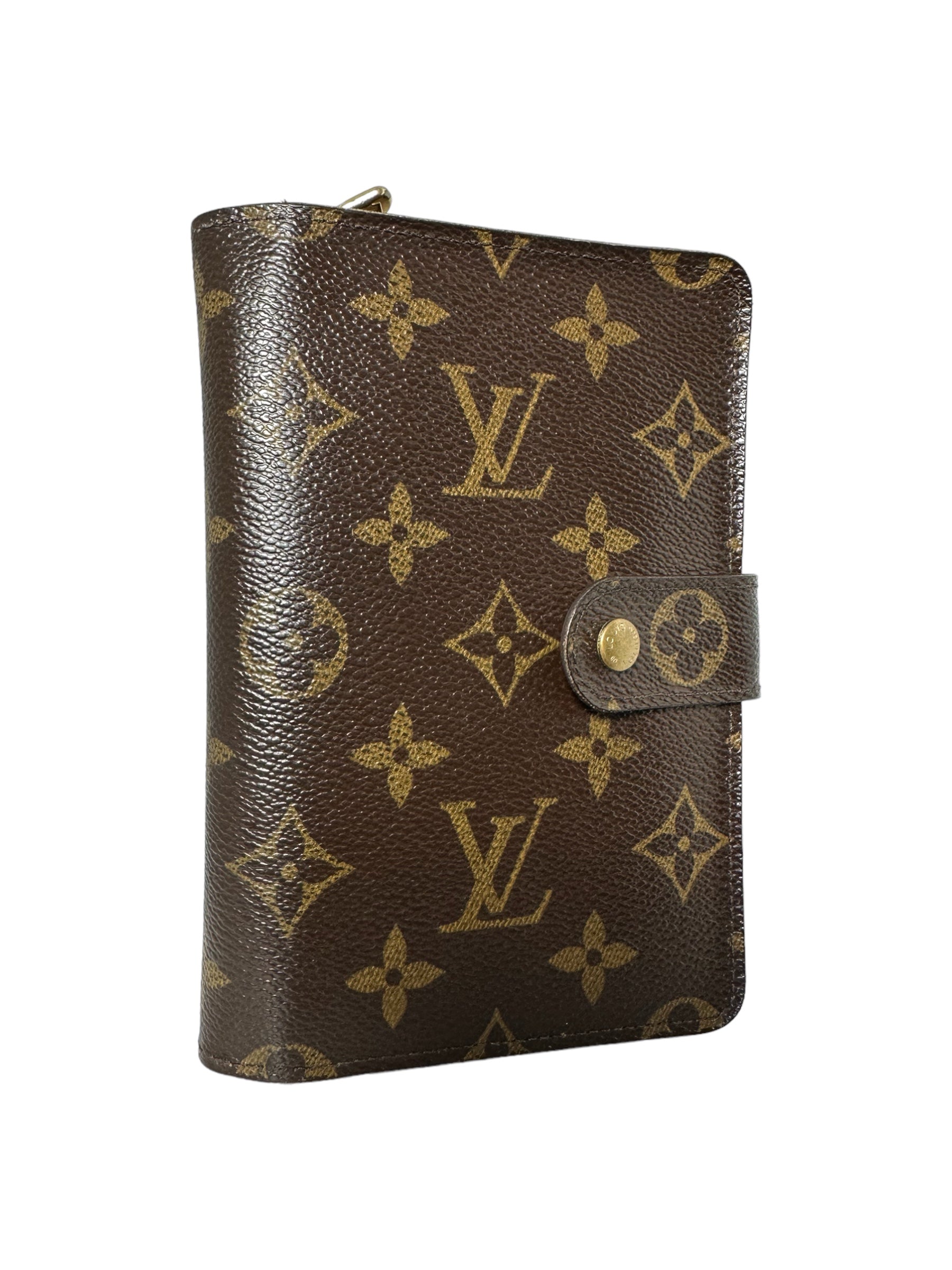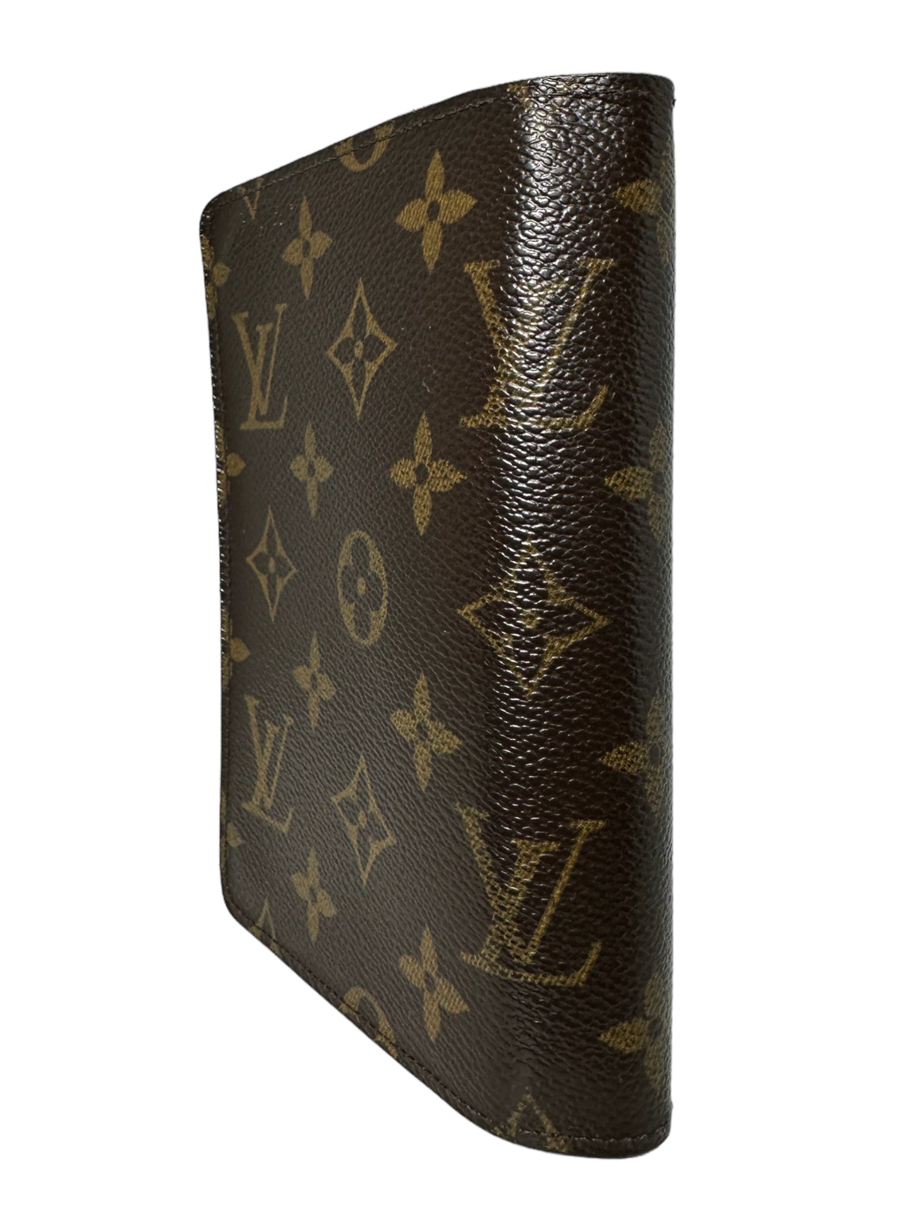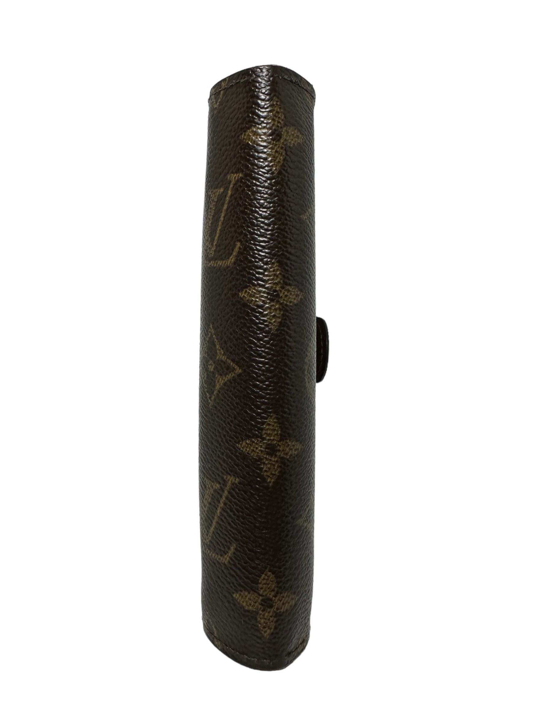 Louis Vuitton portafoglio vintage unisex in tela monogram a due scompartimenti che comprendono un portamonete con chiusura a zip in ottone (lievissimi segni di usura sul tirante), porta banconote e porta carte chiusi con bottoni a pressione. Non viene spedito con scatola originale e dust bag.