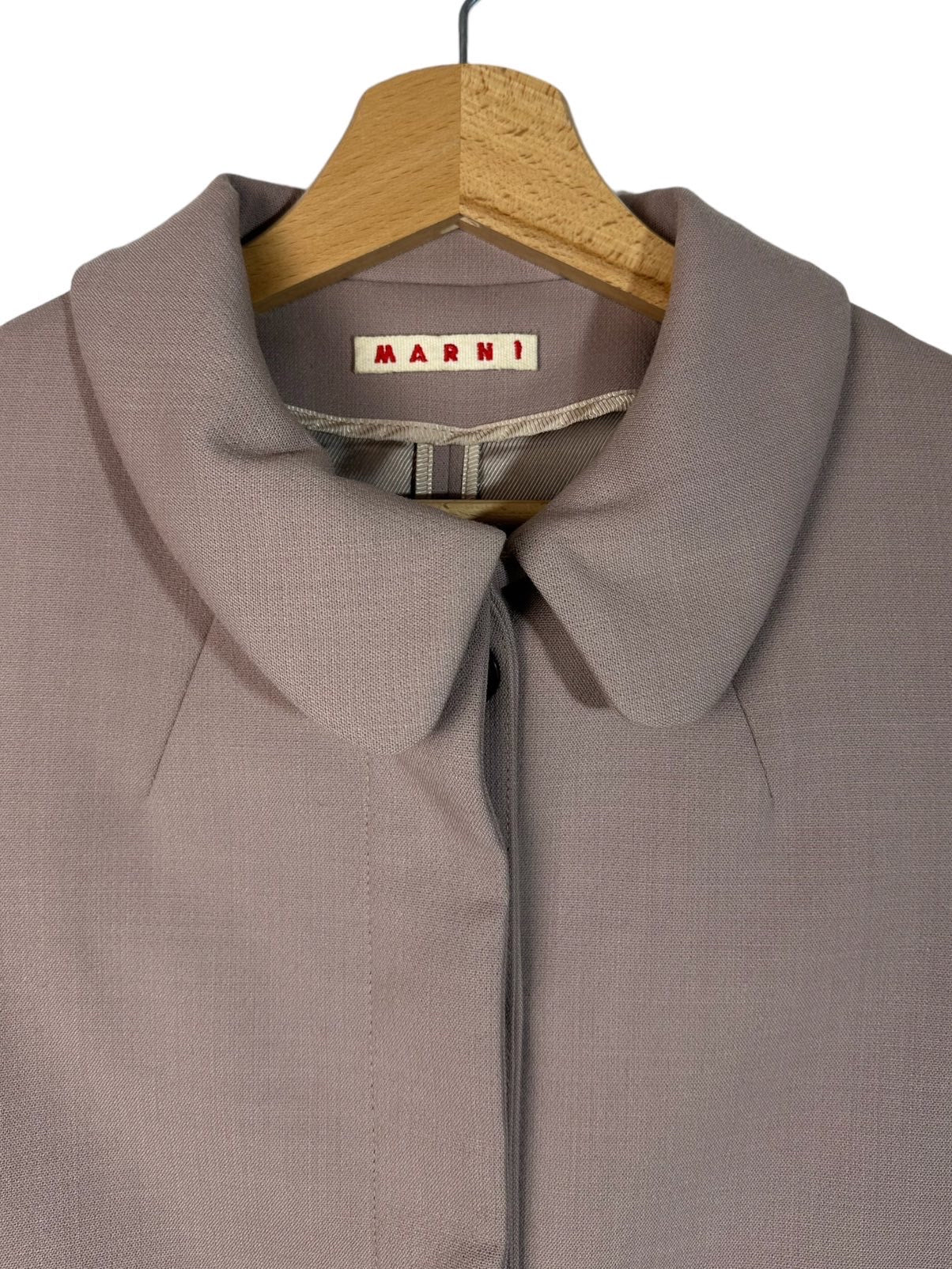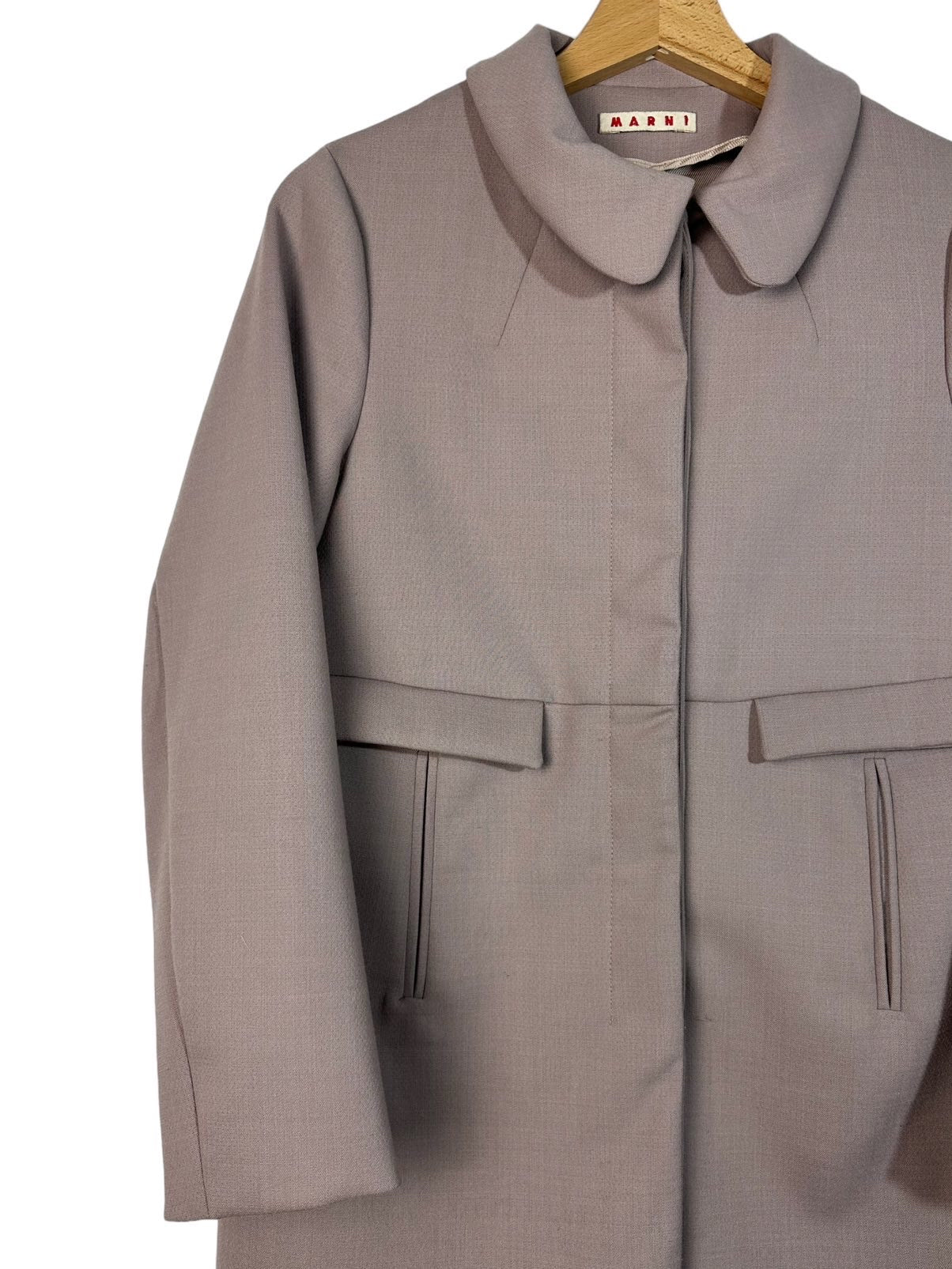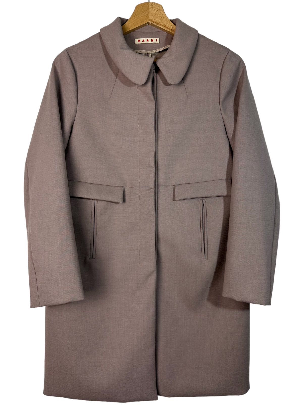 Marni cappottino vintage in poliestere, lana e elastano color tortora con tasche frontali e bottoni a scomparsa, colletto tondo. Tg. 12 XS