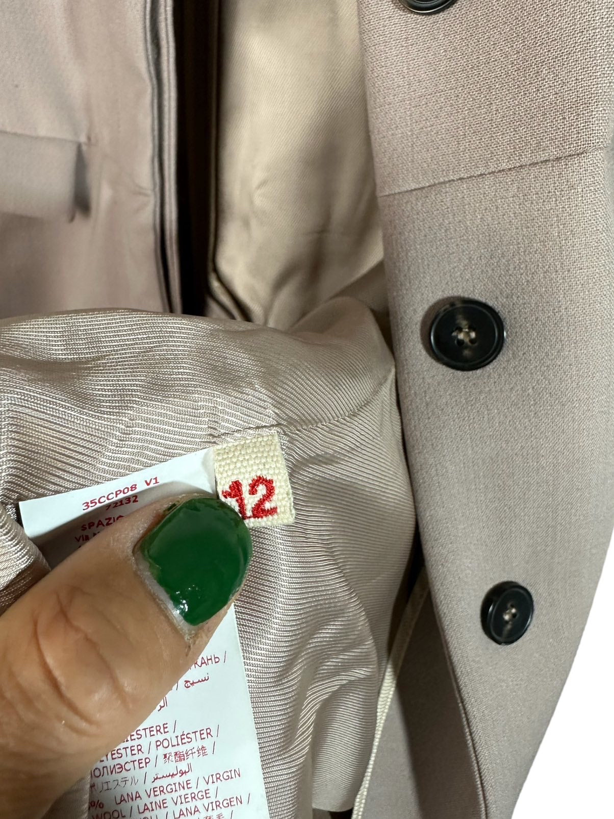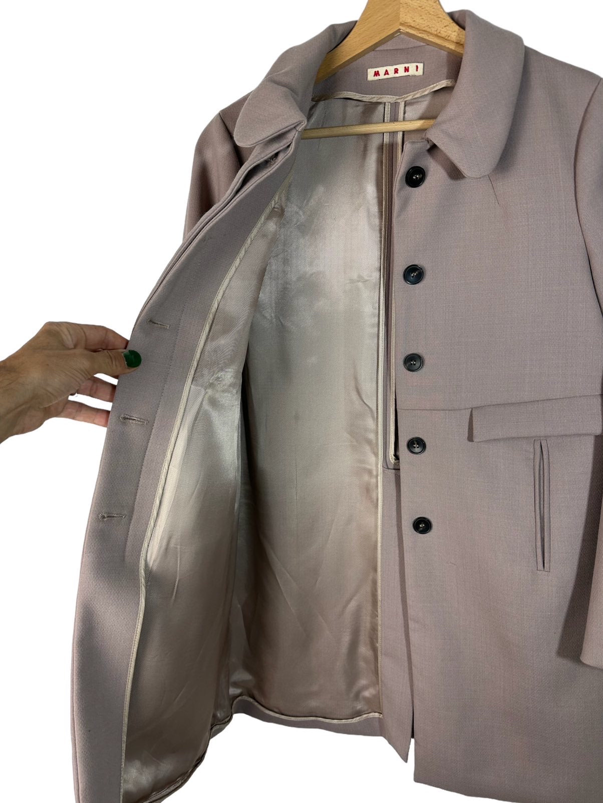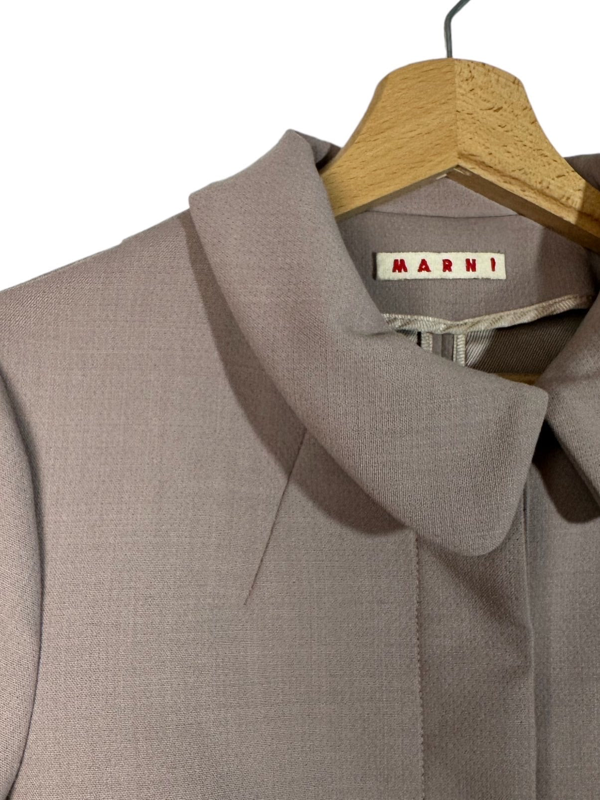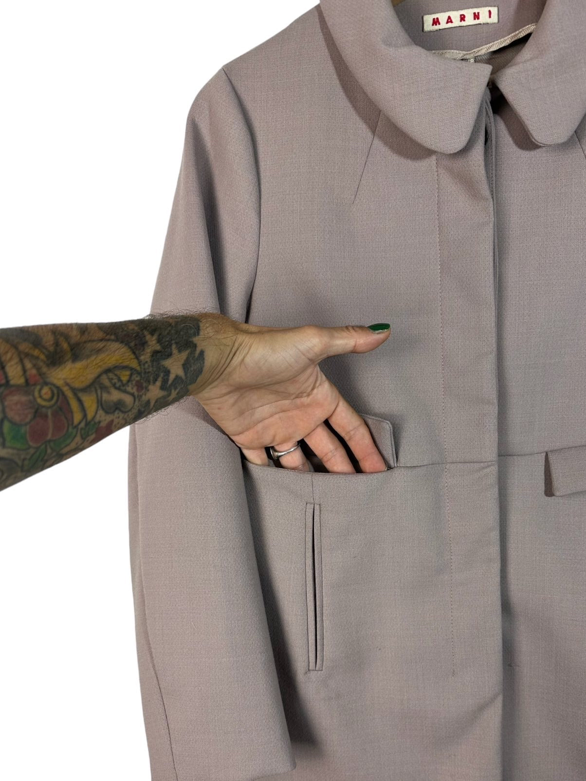 Marni cappottino vintage in poliestere, lana e elastano color tortora con tasche frontali e bottoni a scomparsa, colletto tondo. Tg. 12 XS