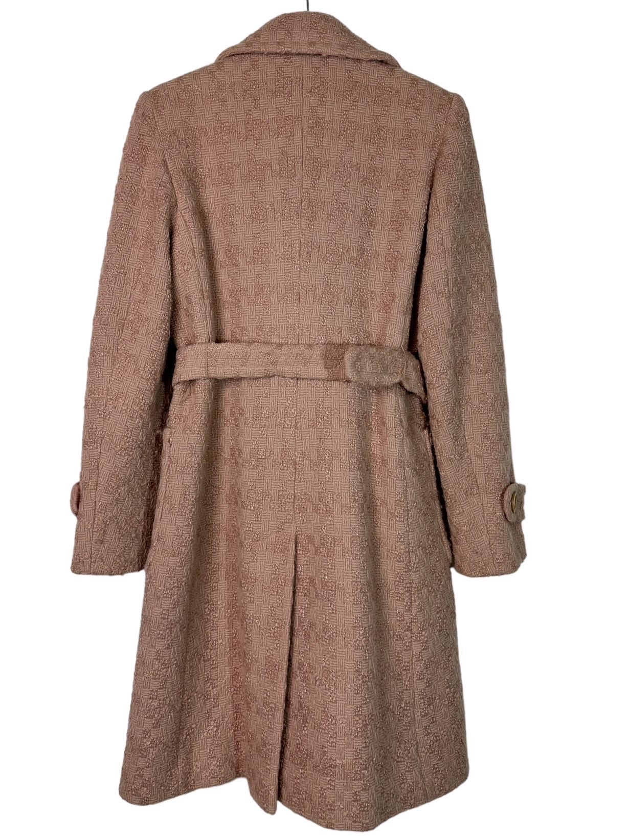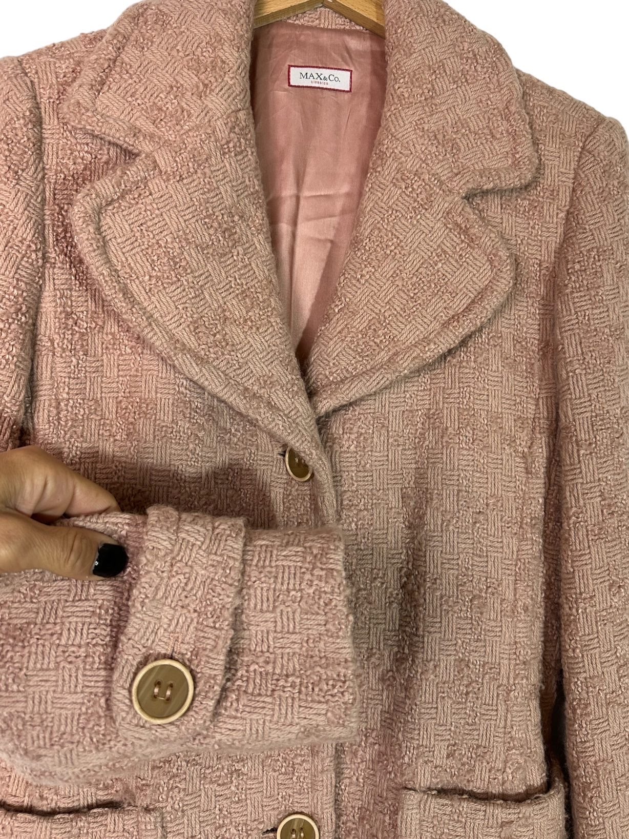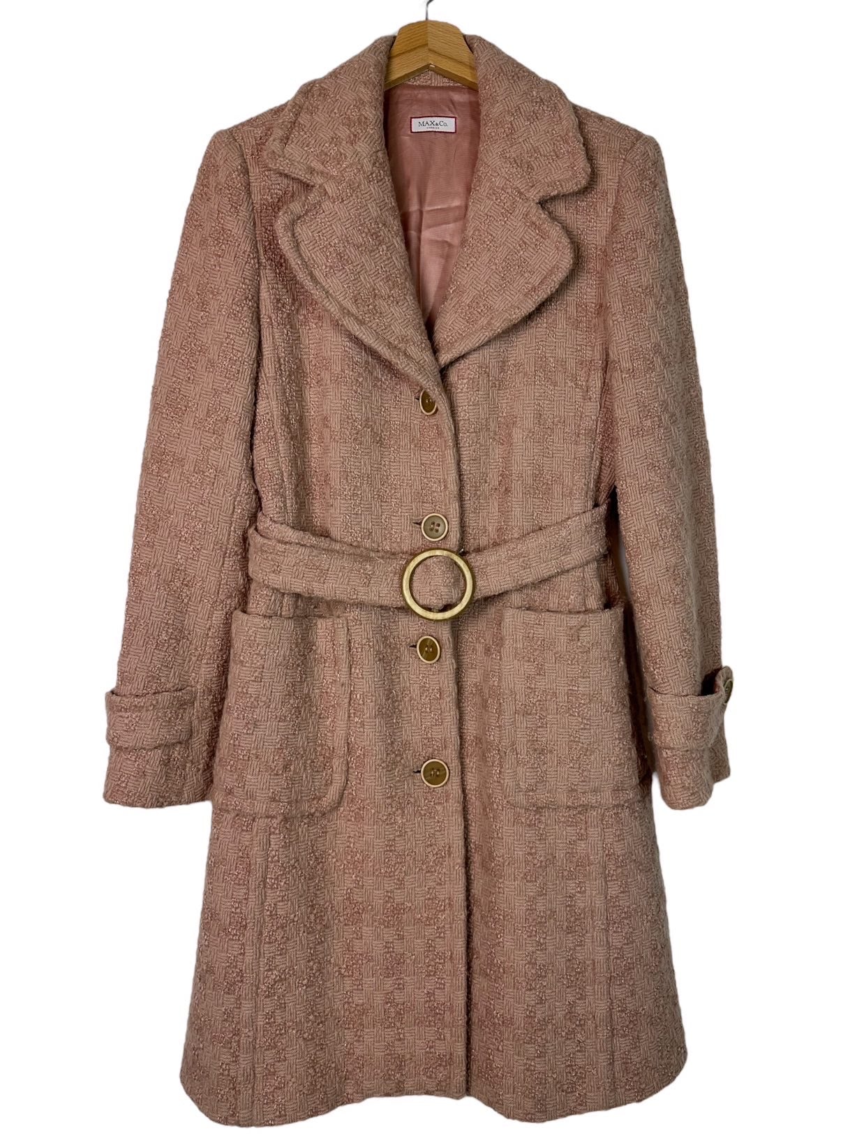 Max&Co cappotto vintage in lana lavorata color cipria a maniche lunghe e tasche laterali con chiusura a bottoni e cintura in vita, tasche laterali applicate. Tg. S